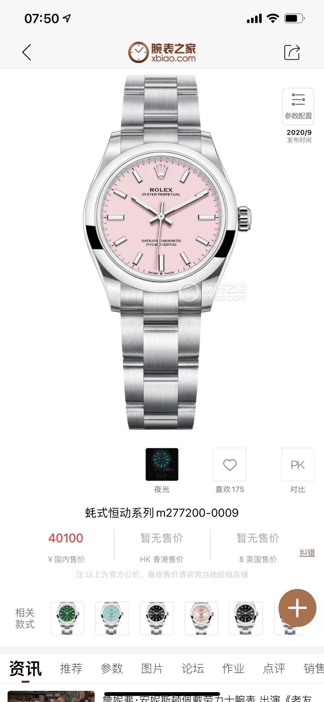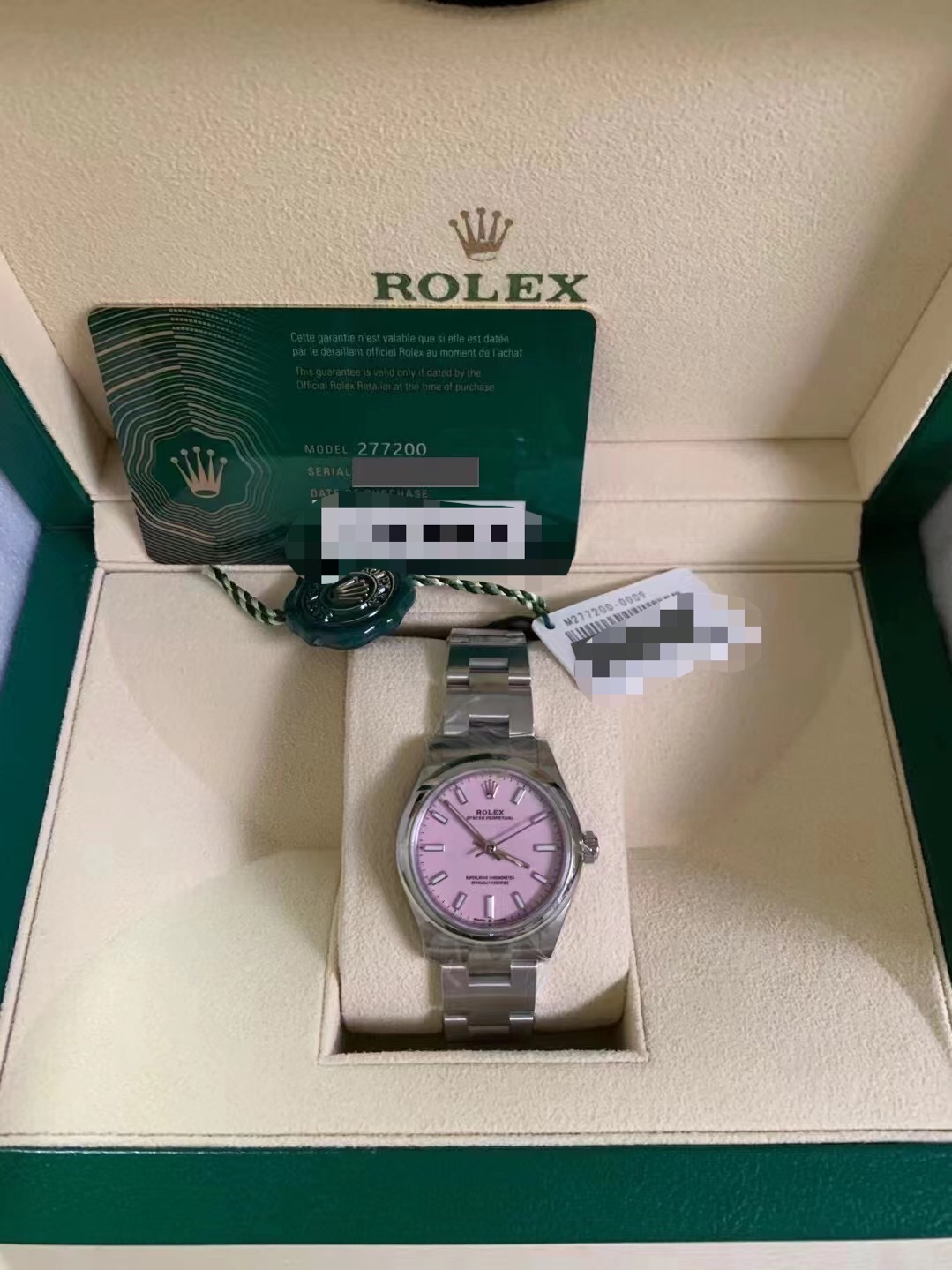 劳力士 蚝式恒动277200-0009,31粉色,表径31毫米,糖果粉红色表盘,劳力士专柜售价40100元,超公价款,全球联保五年。