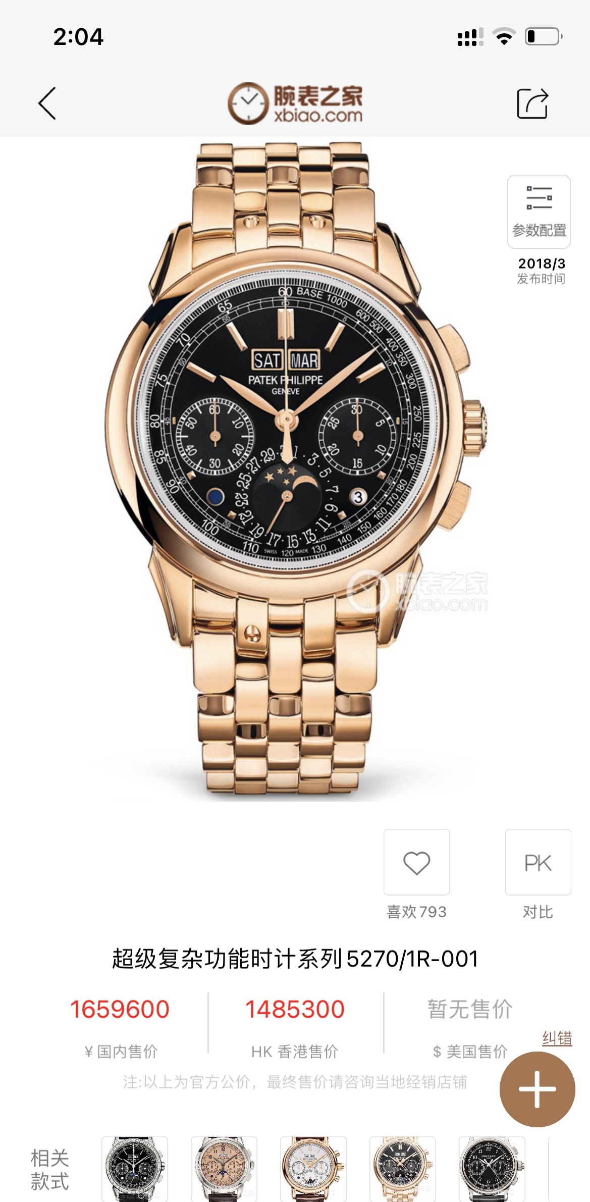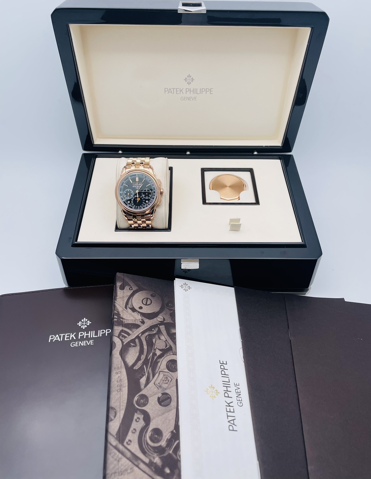 特价百达翡丽5270/1R超级复杂功能时计系列腕表,19年全套,表径41mm手动机械 18K玫瑰金 万年历、月相、计时功能 动力储存65h,回归经典保守之作!专柜定价1659600!