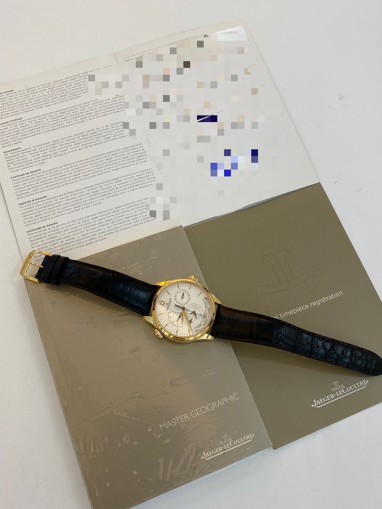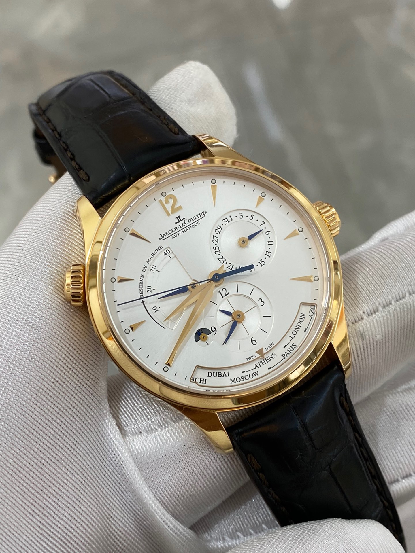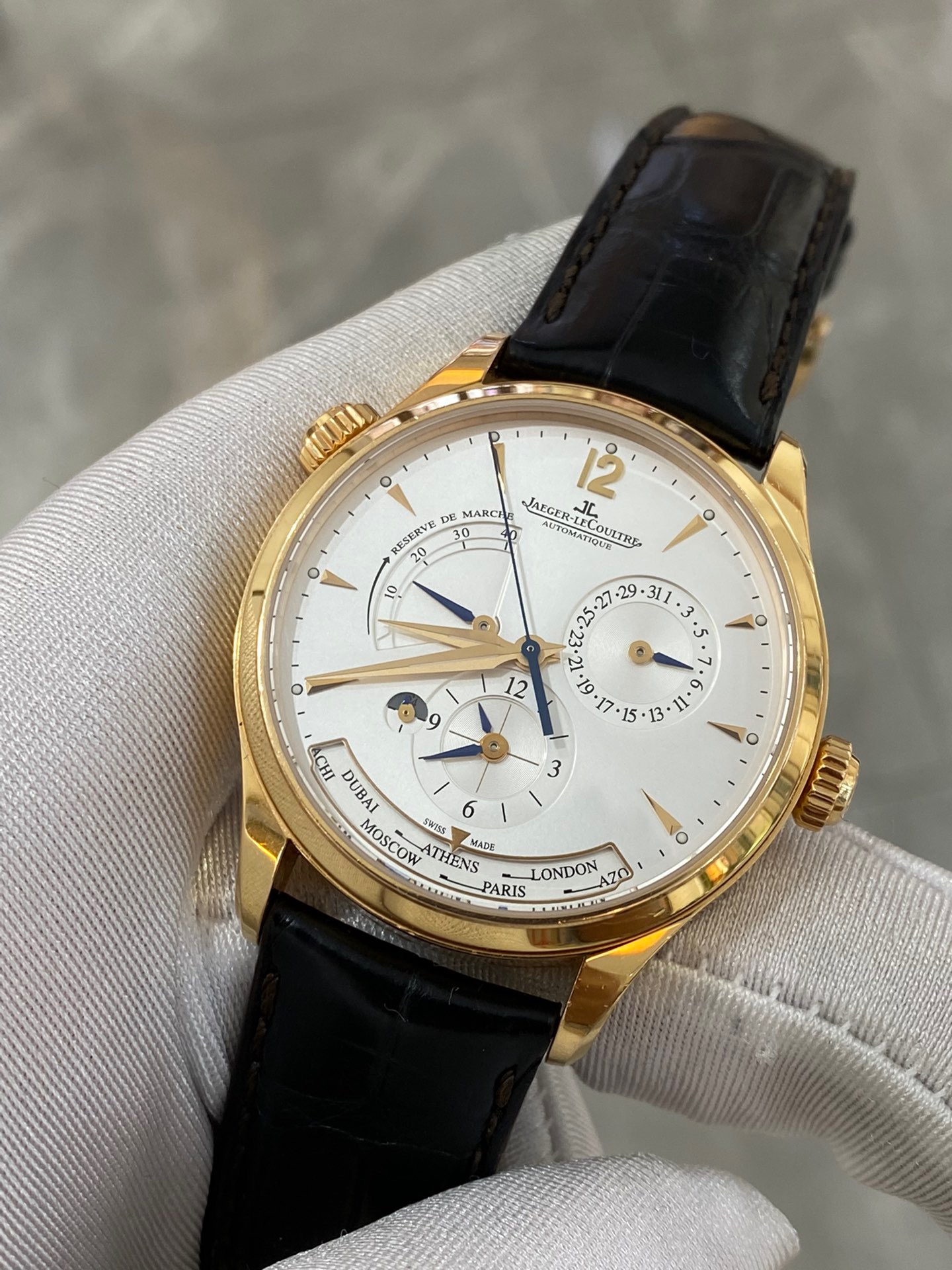 积家大师系列 型号:Q1422521,39表径带有世界时功能的复杂机芯,同时带有动力储备和两地时还有昼夜显示功能,附件:极品全套 公价181000