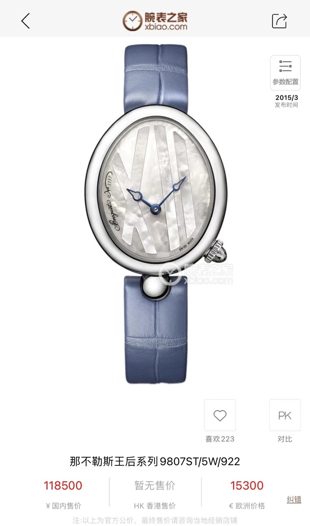宝玑Reine de Naples那不勒斯王后9807ST/5W/922机械女性