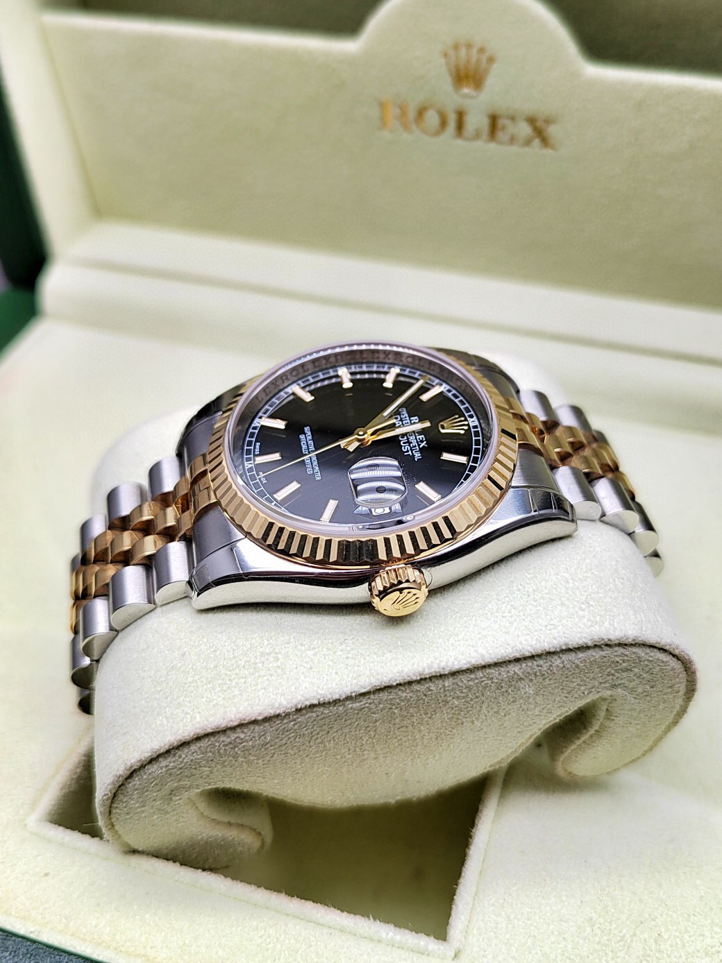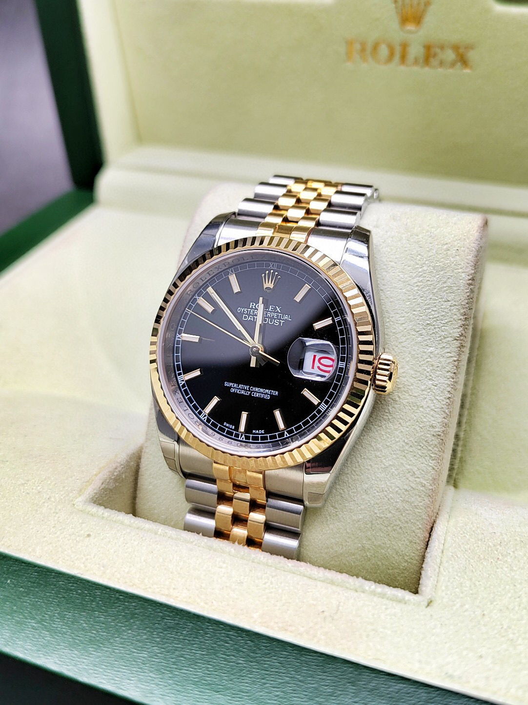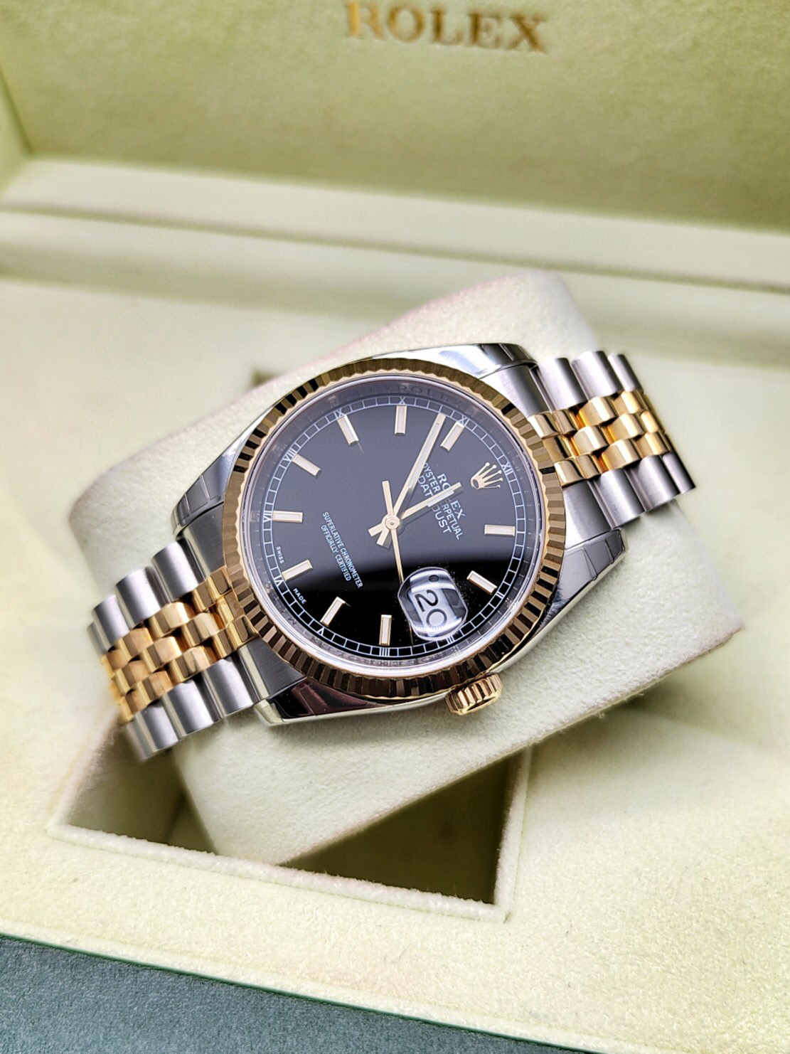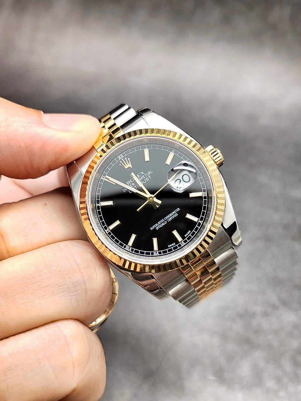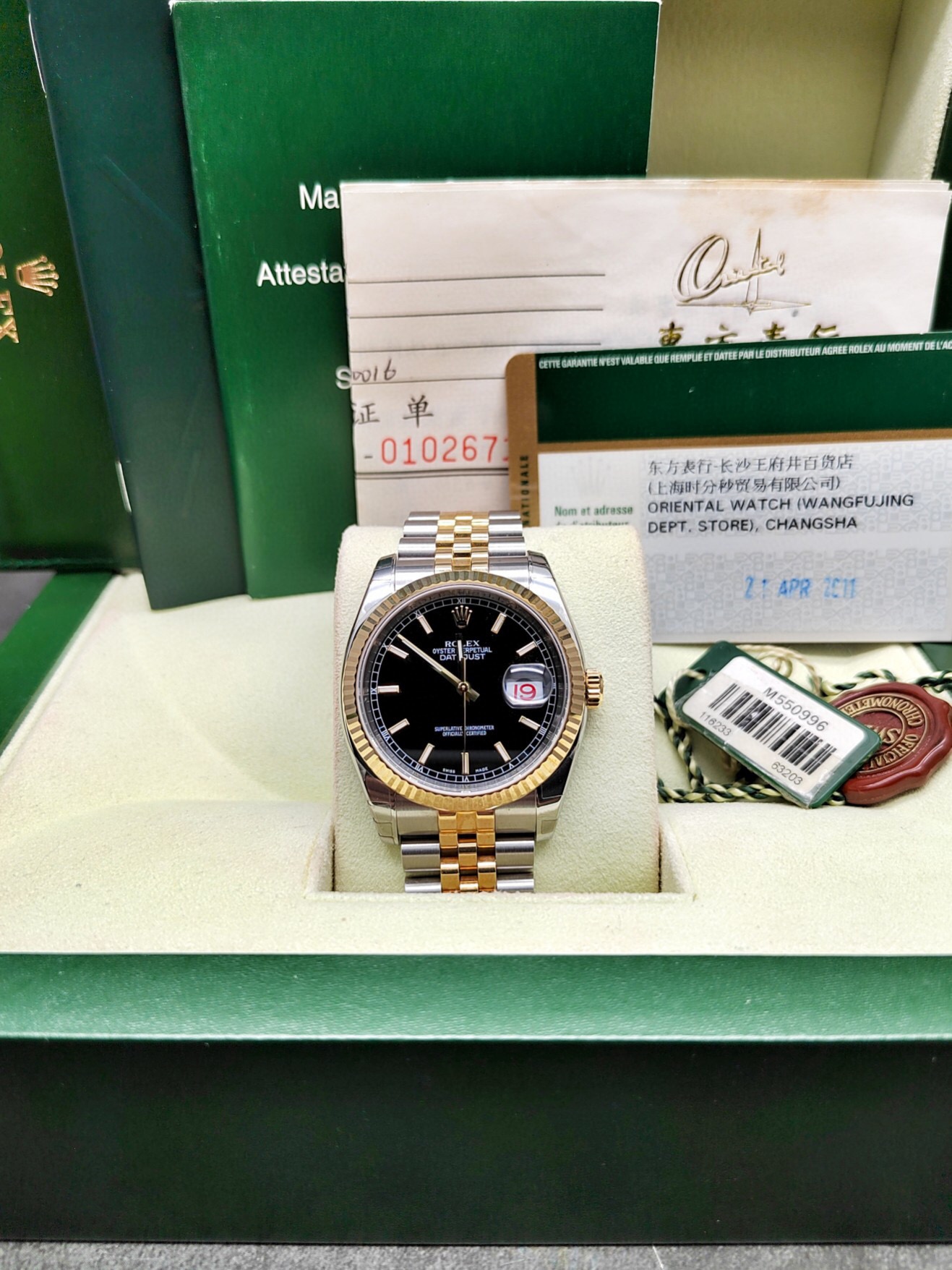 【11年全膜间金日志】劳力士116233日志型,间金黑盘,条刻轨道面,绝版红黑日历,36mm表径,2011年大全套,全膜库存未使用,现货好价。