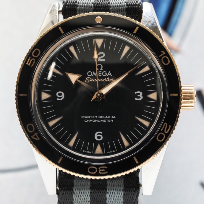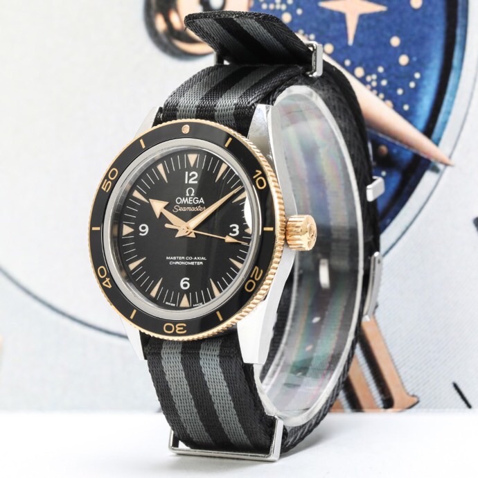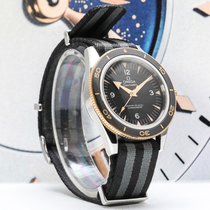 欧米茄海马系列男表233.22.41.21.01.001、表径41mm、18K黄金&精钢材质、自动机械、专柜价:67000。16年全套附件