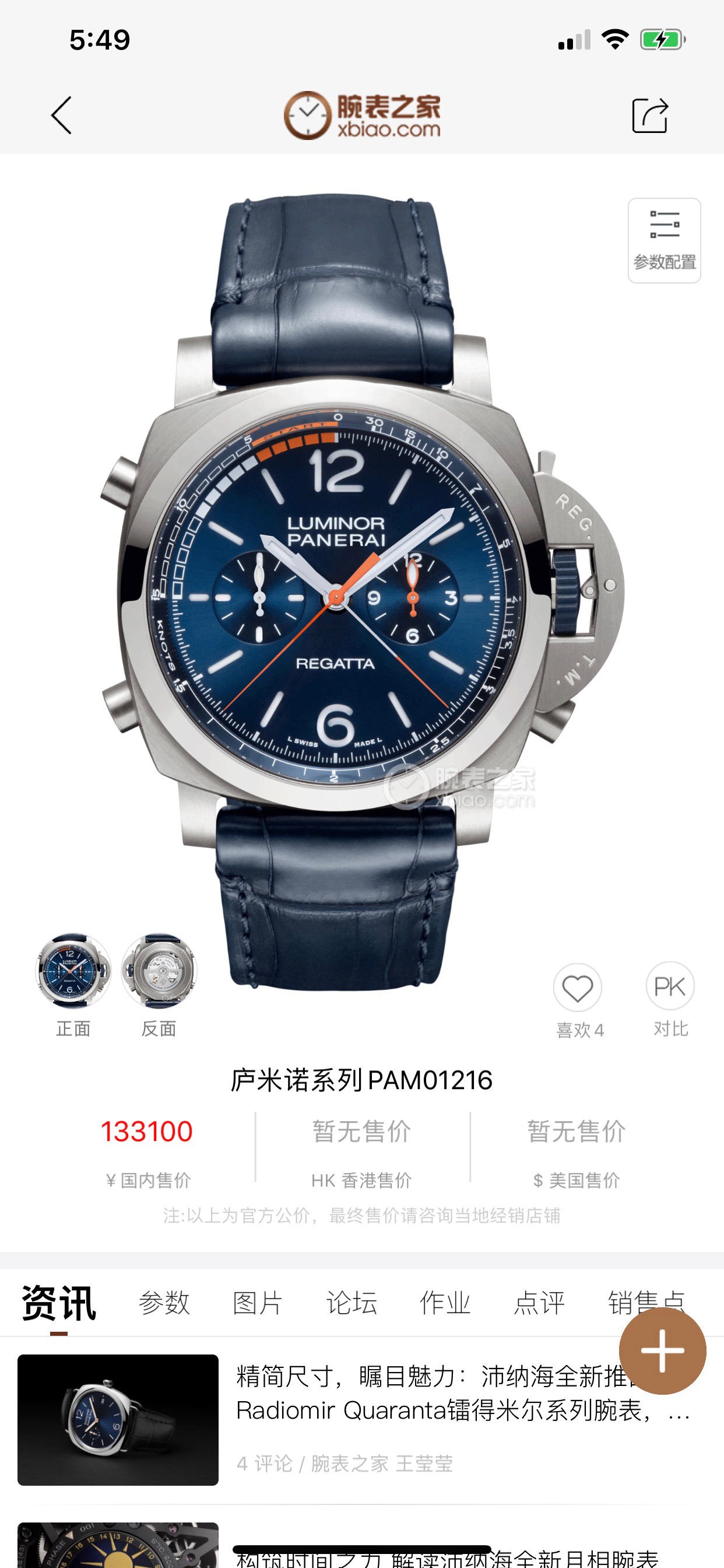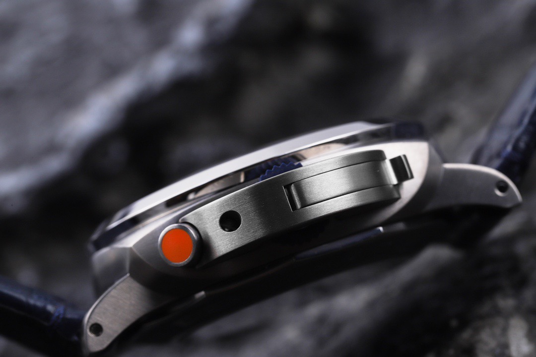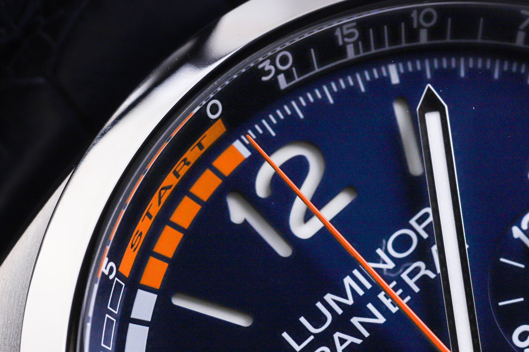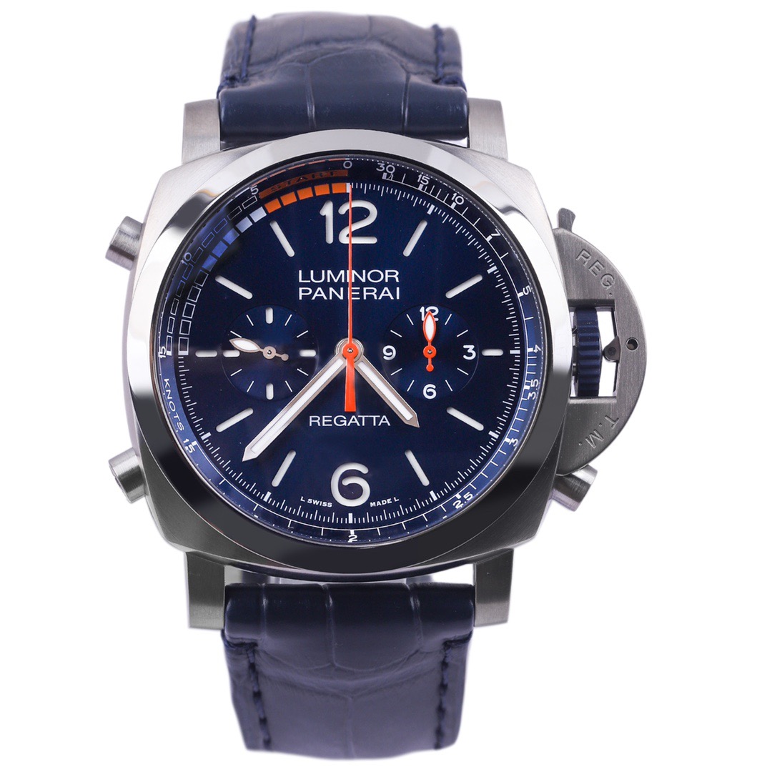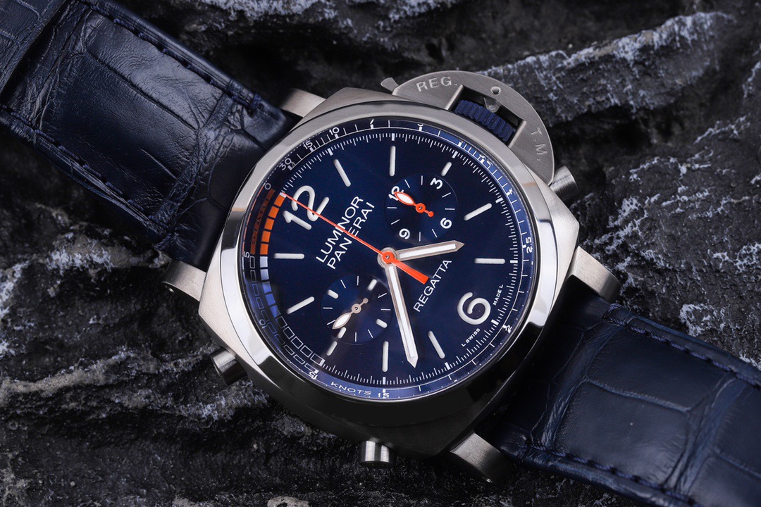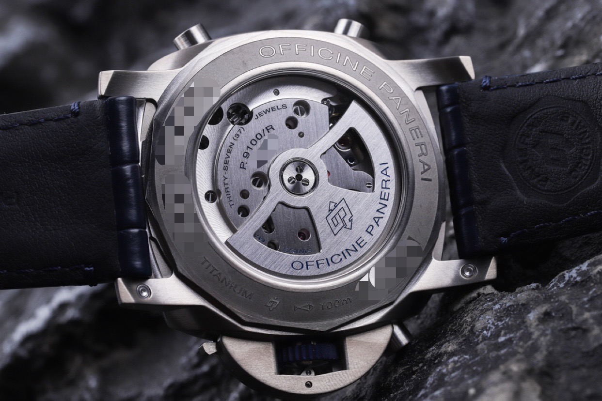 未使用全套 两副表带 交替使用 沛纳海庐米诺系列PAM01216自动机械男款 表盘47毫米 磨砂钛金属材质 蓝面计时款 背透 针扣款 参考专柜价格133100