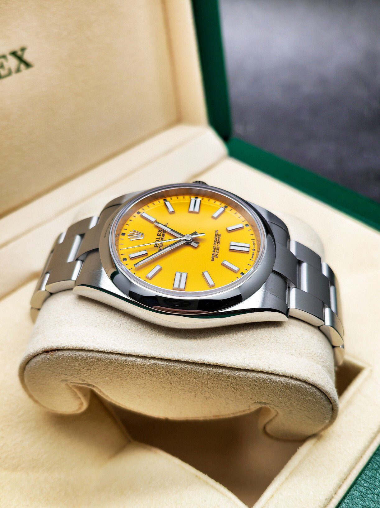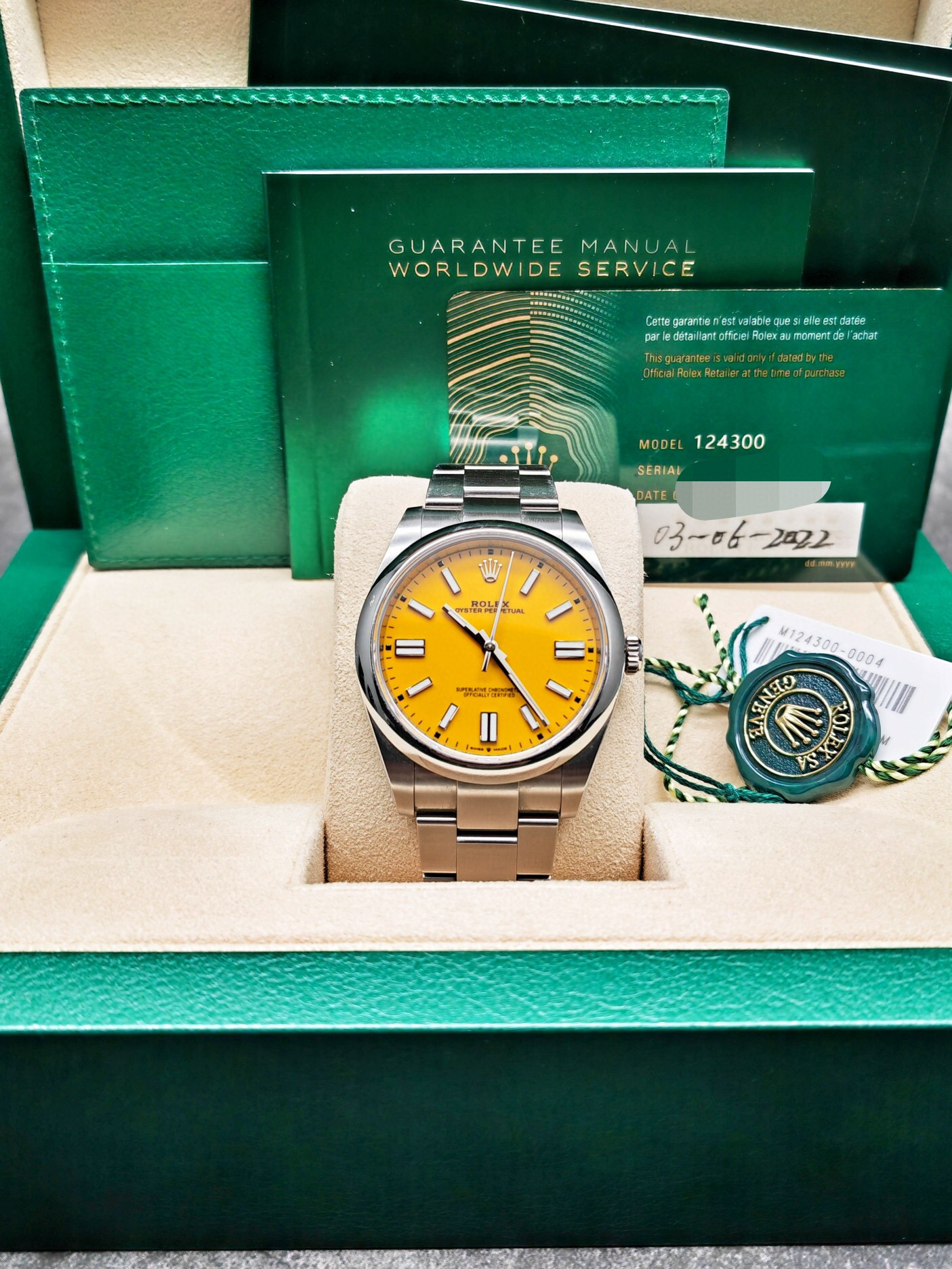 【22年41比卡丘】劳力士124300-0004新款蚝式恒动,黄盘,比卡丘,41mm表径,2022年6月国行大全套,新成色,比全新便宜很多,现货好价。