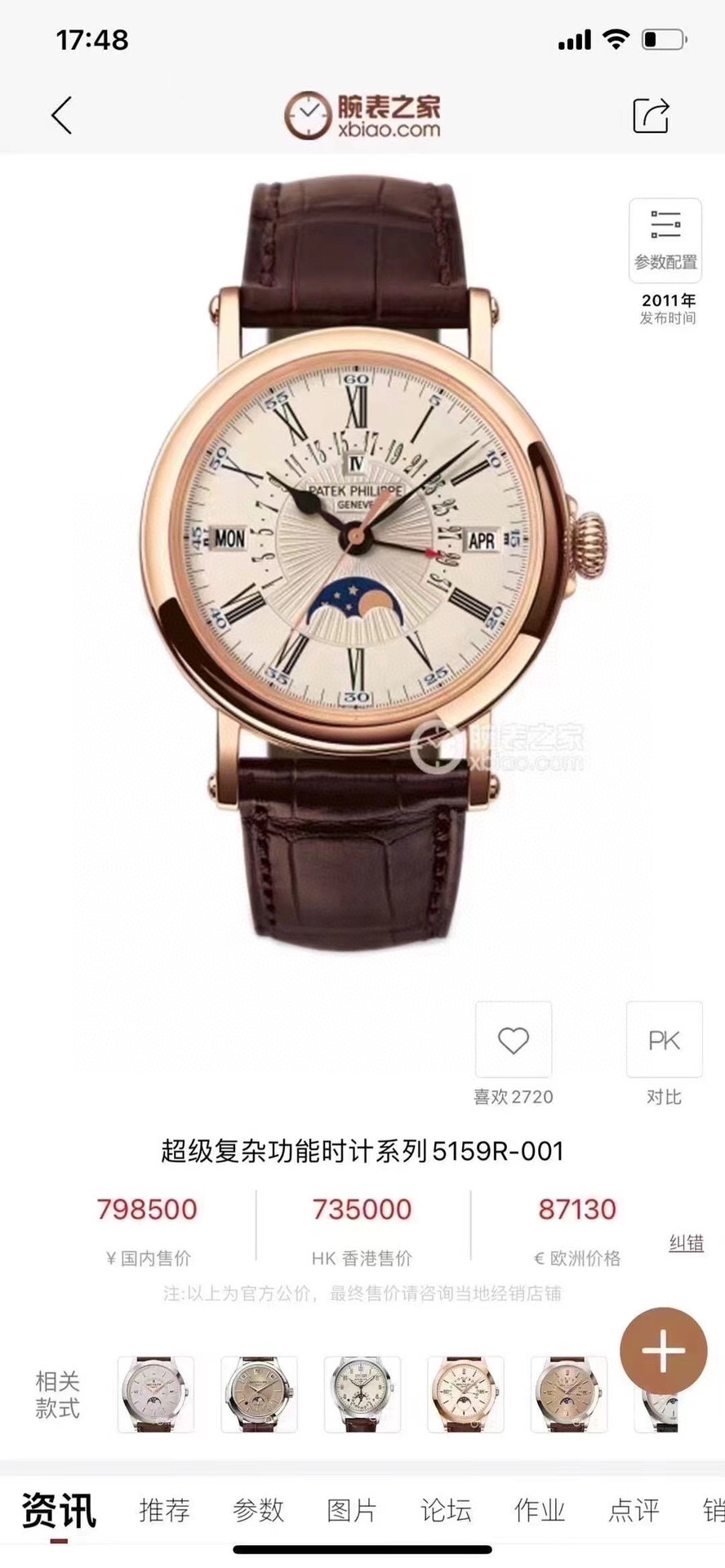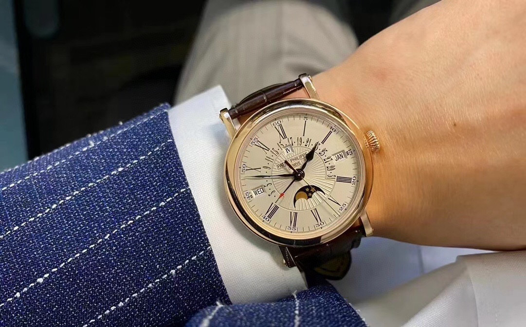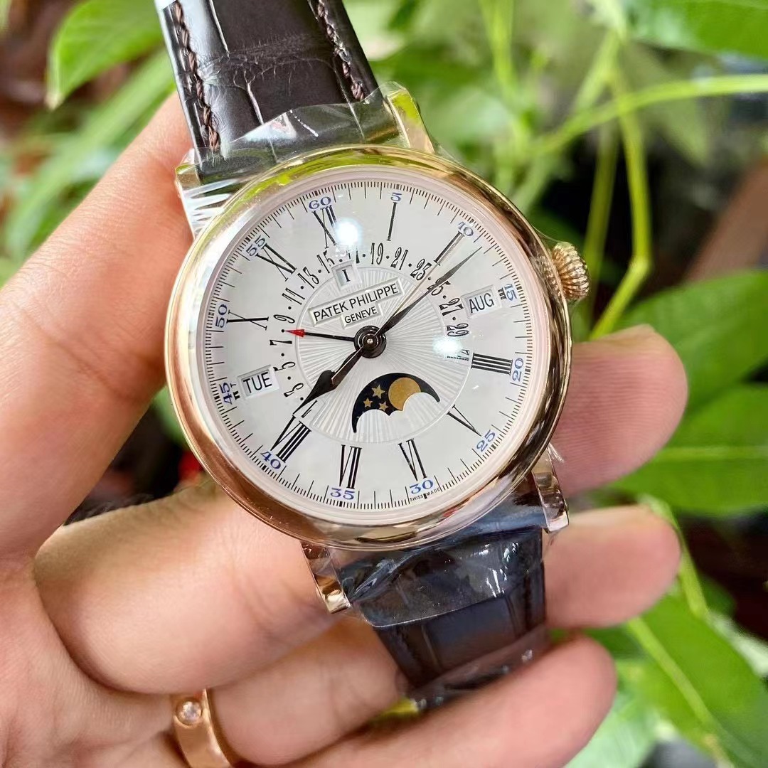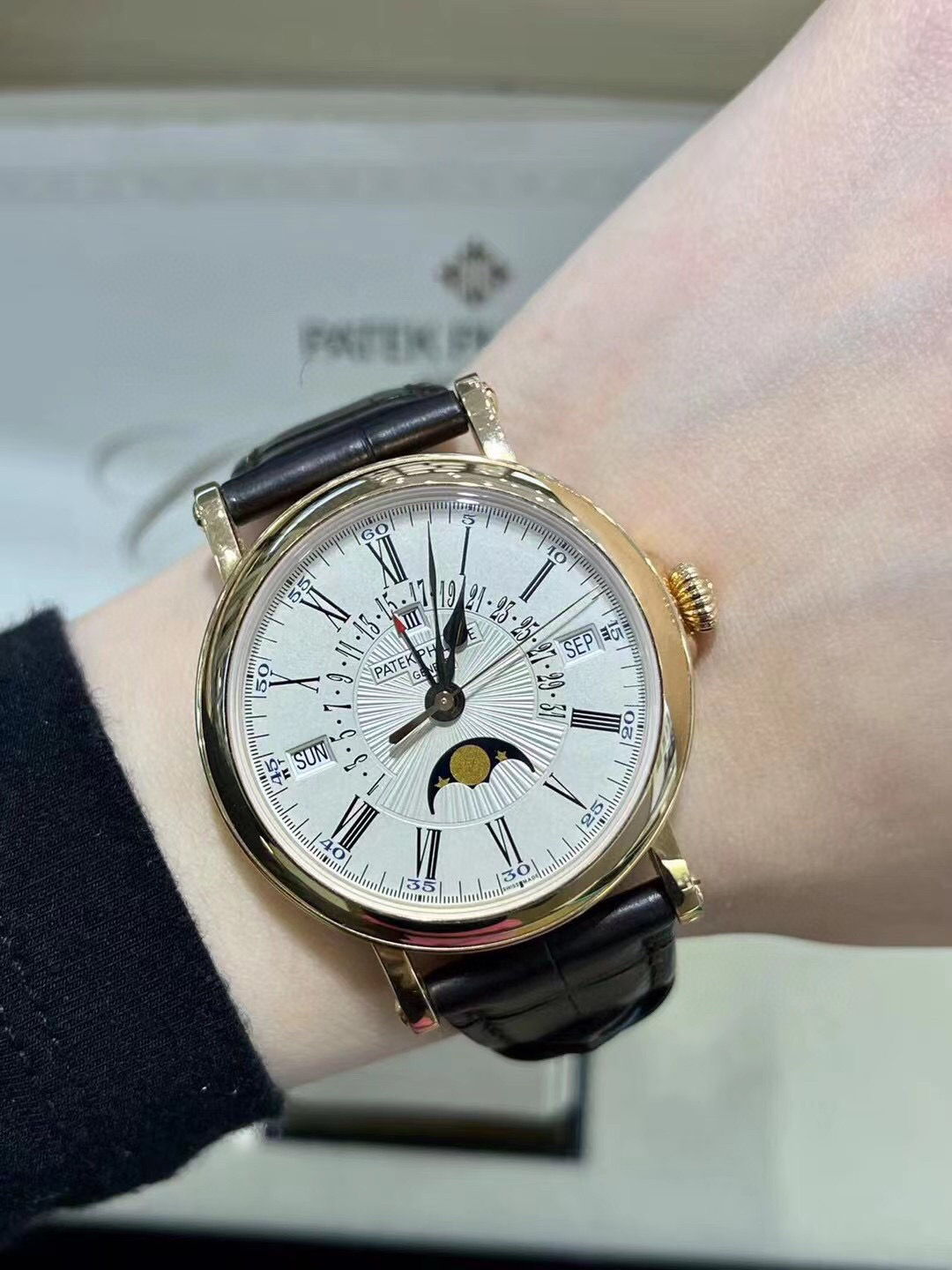 百达翡丽 PP5159R-001,超级复杂功能计时系列 ,自动机械,表径38mm,18k玫瑰金,日期.星期.月份.年历..月相.万年历功能,参考公价798500,现有19年全套完美好价