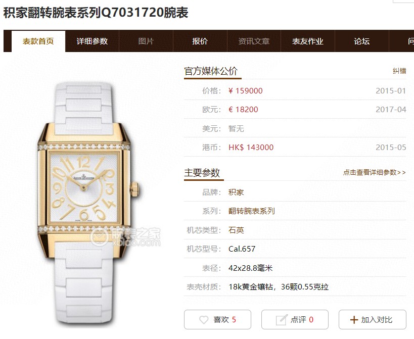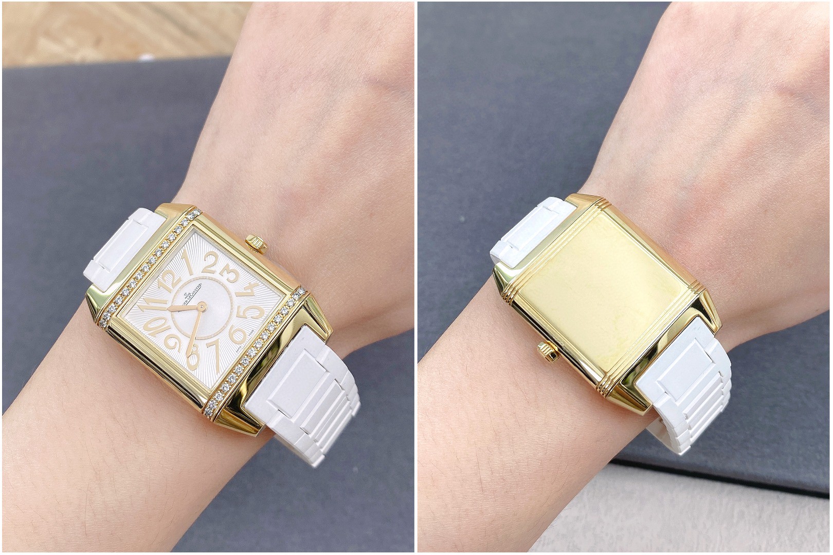 【二手 积家女装翻转腕表系列18K黄金原镶钻石英女表 腕周180mm】型号:Q7031720 表径:42x28.8mm 附件:无----专柜价:159000元