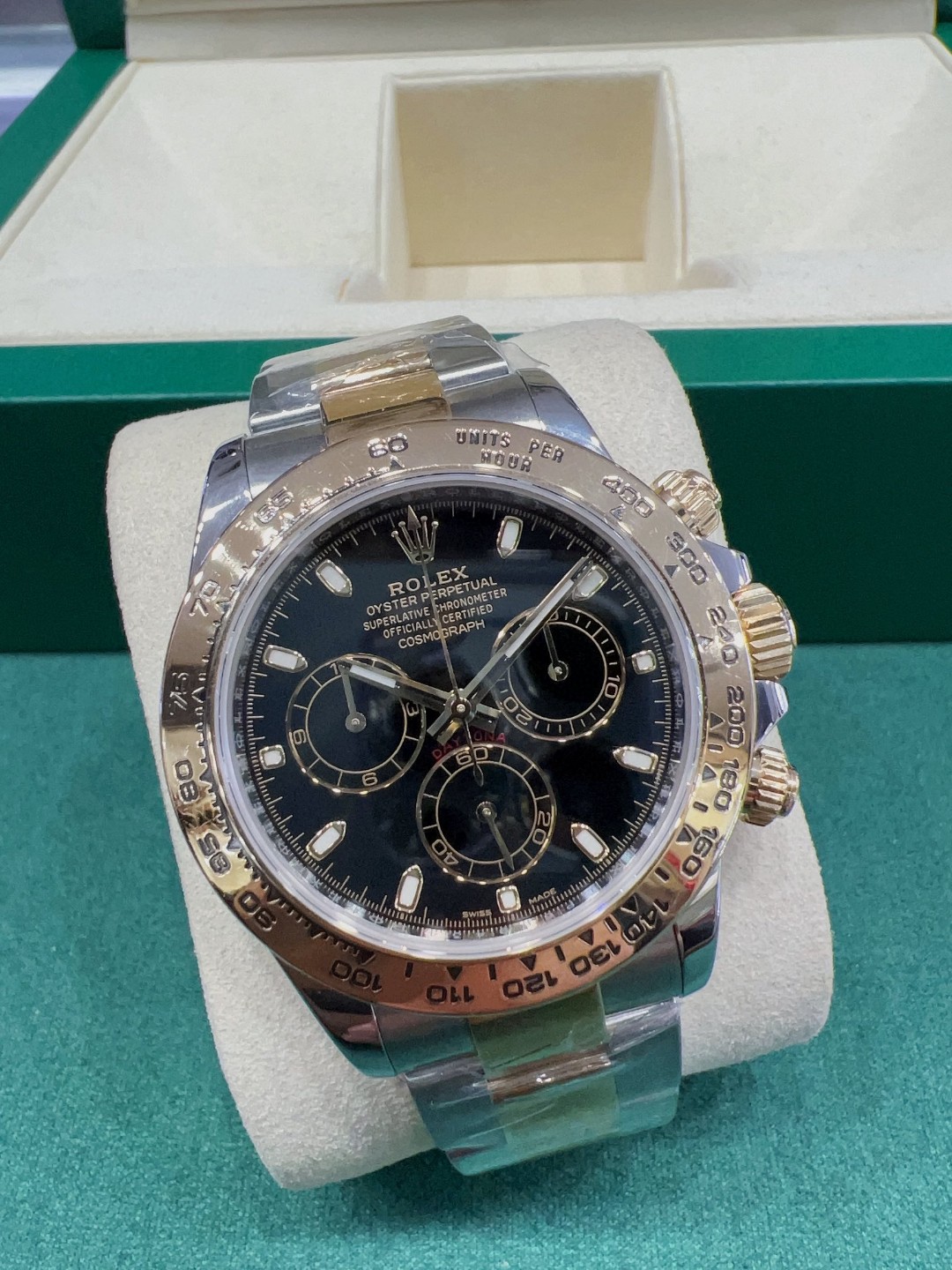 劳力士宇宙计型迪通拿116503-0004 2018年全套热门款黑盘间金迪,18K黄金与904L钢完美结合,旋入式三扣锁表冠三重防水系统,迪通拿最高性价比款。公价149100