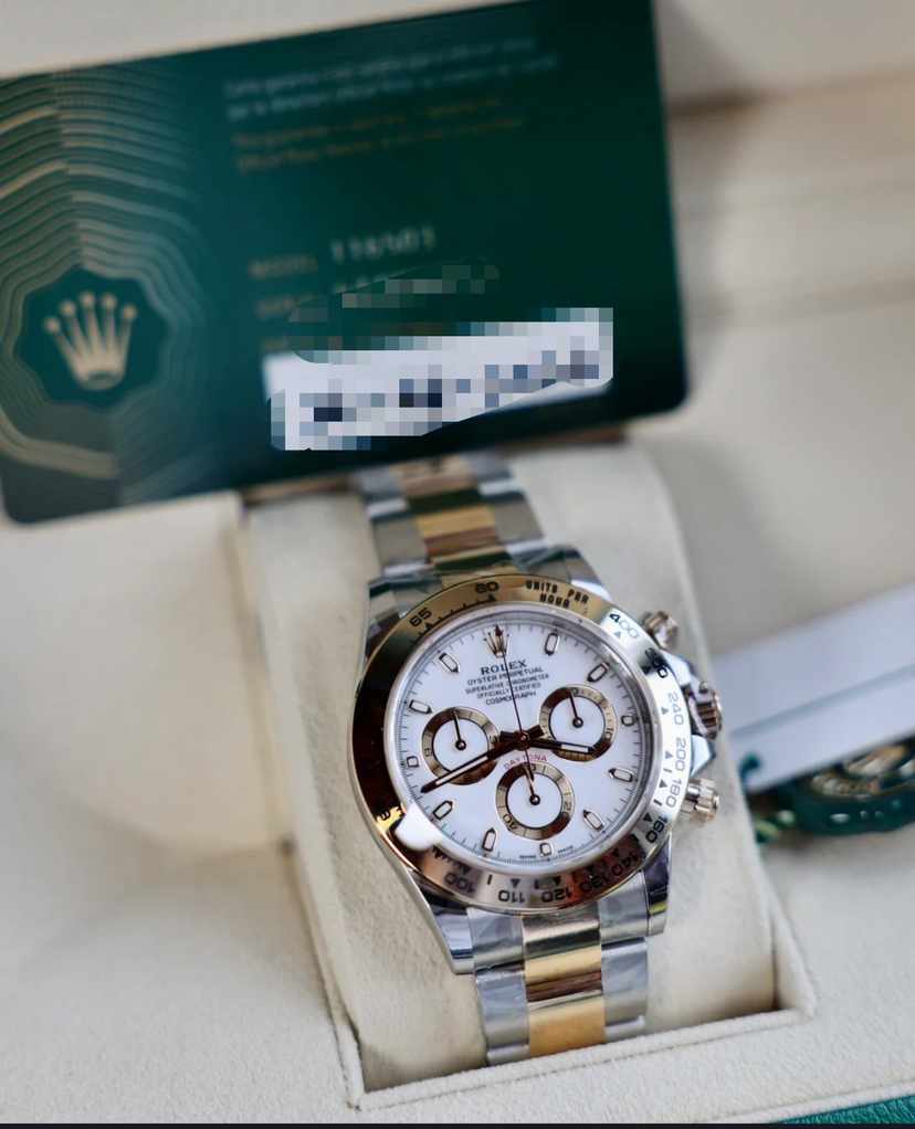 型号:116503-0001 白盘,40mm表径白色盘面18K黄金表圈间金蚝式表带,未使用大全套,