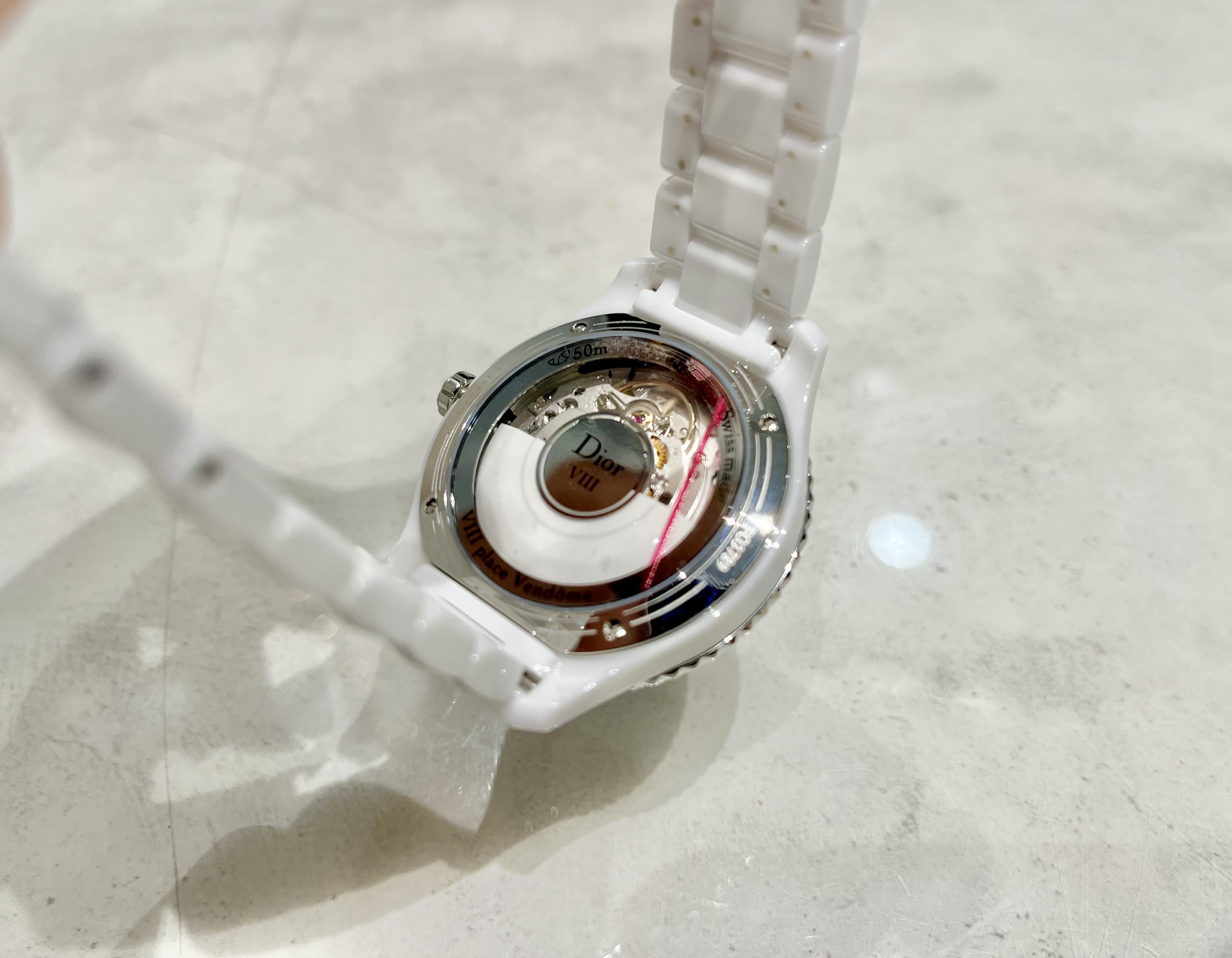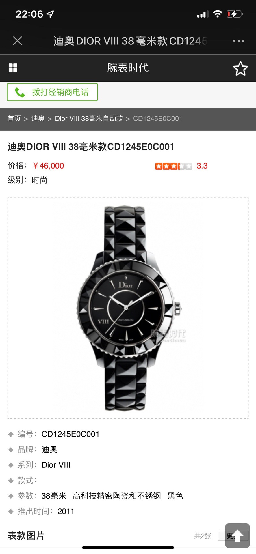 迪奥 DIOR VIII系列CD1245E3C001 表径38mm,白色陶瓷材质,乳光银色表盘,自动机械,通体陶瓷表带折叠扣。公价46000元,库存品无盒有卡13999元。