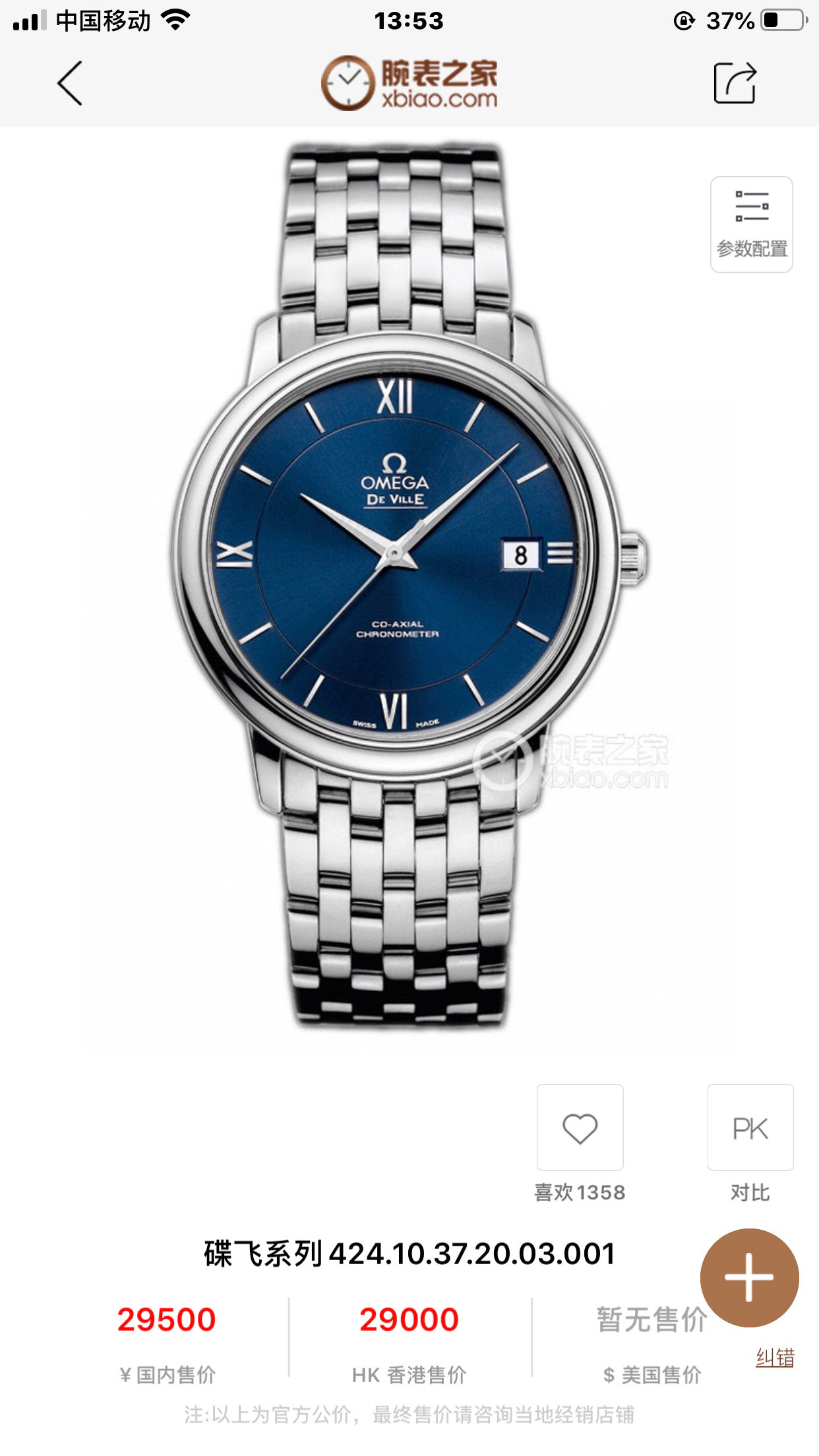 欧米茄碟飞424.10.37.20.03.001机械男性