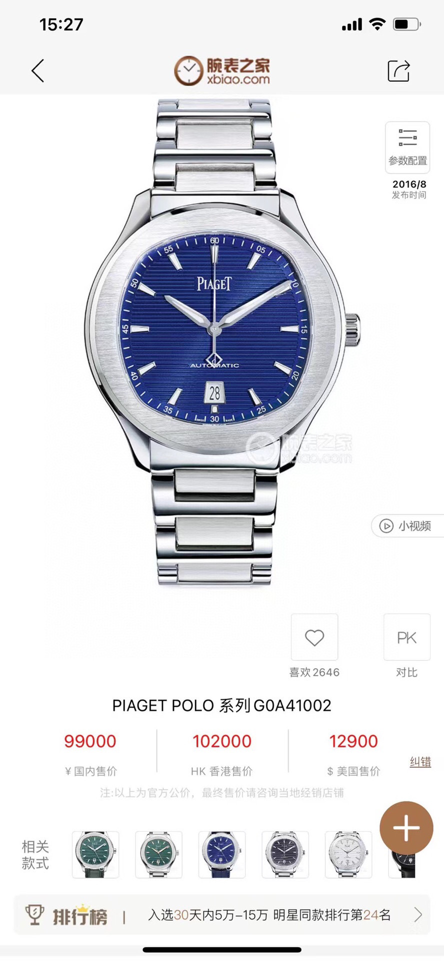 伯爵PIAGET POLO 系列G0A41002男士自动机械腕表,42毫米表径,精钢材质,21年10月保卡,无盒,已延保,公价99000,现好价
