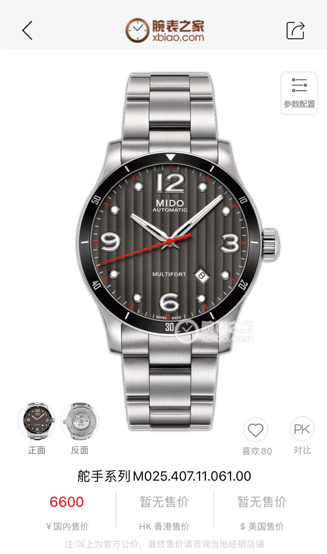 美度舵手 MULTIFORTM025.407.11.061.00机械男性