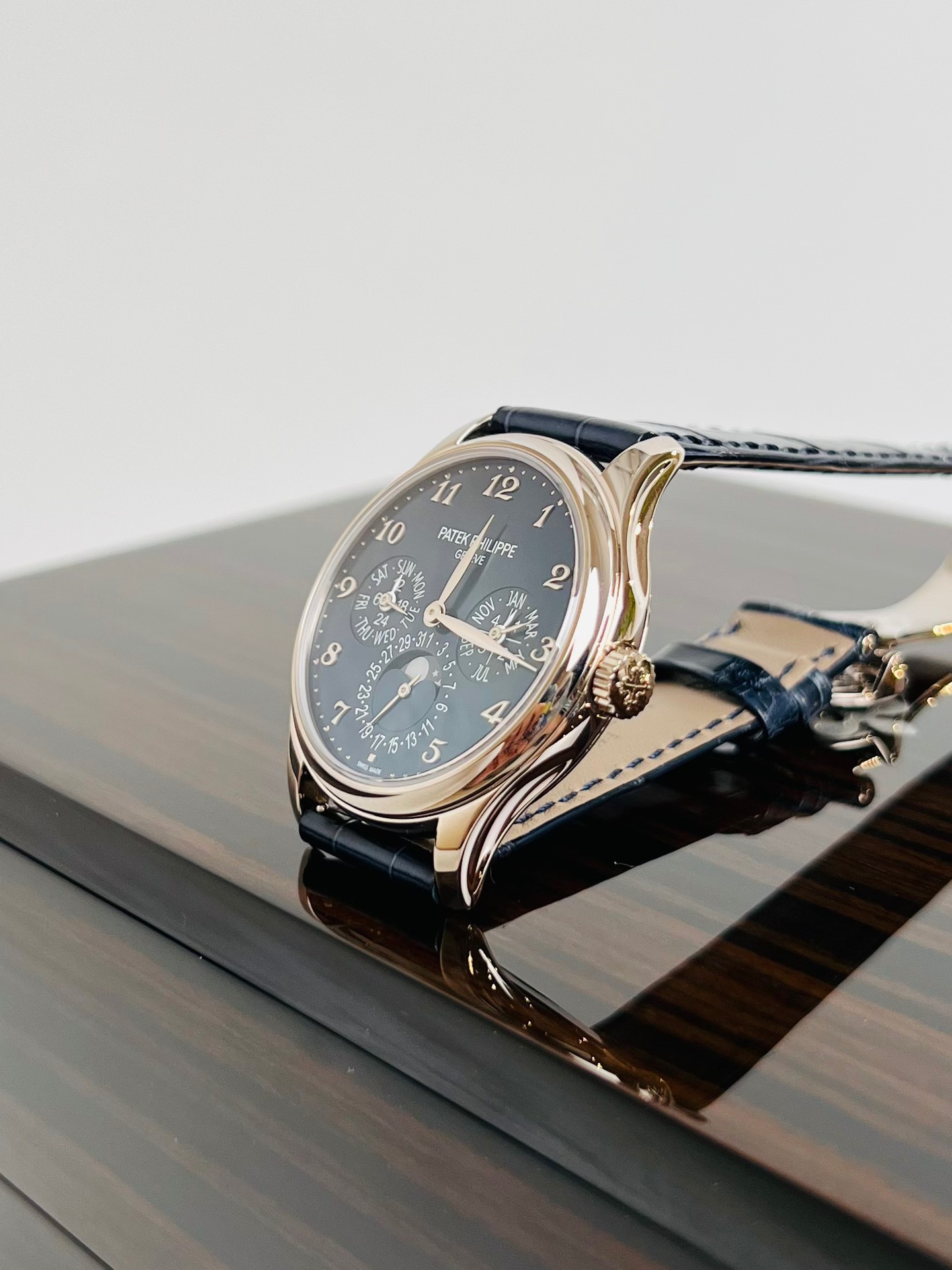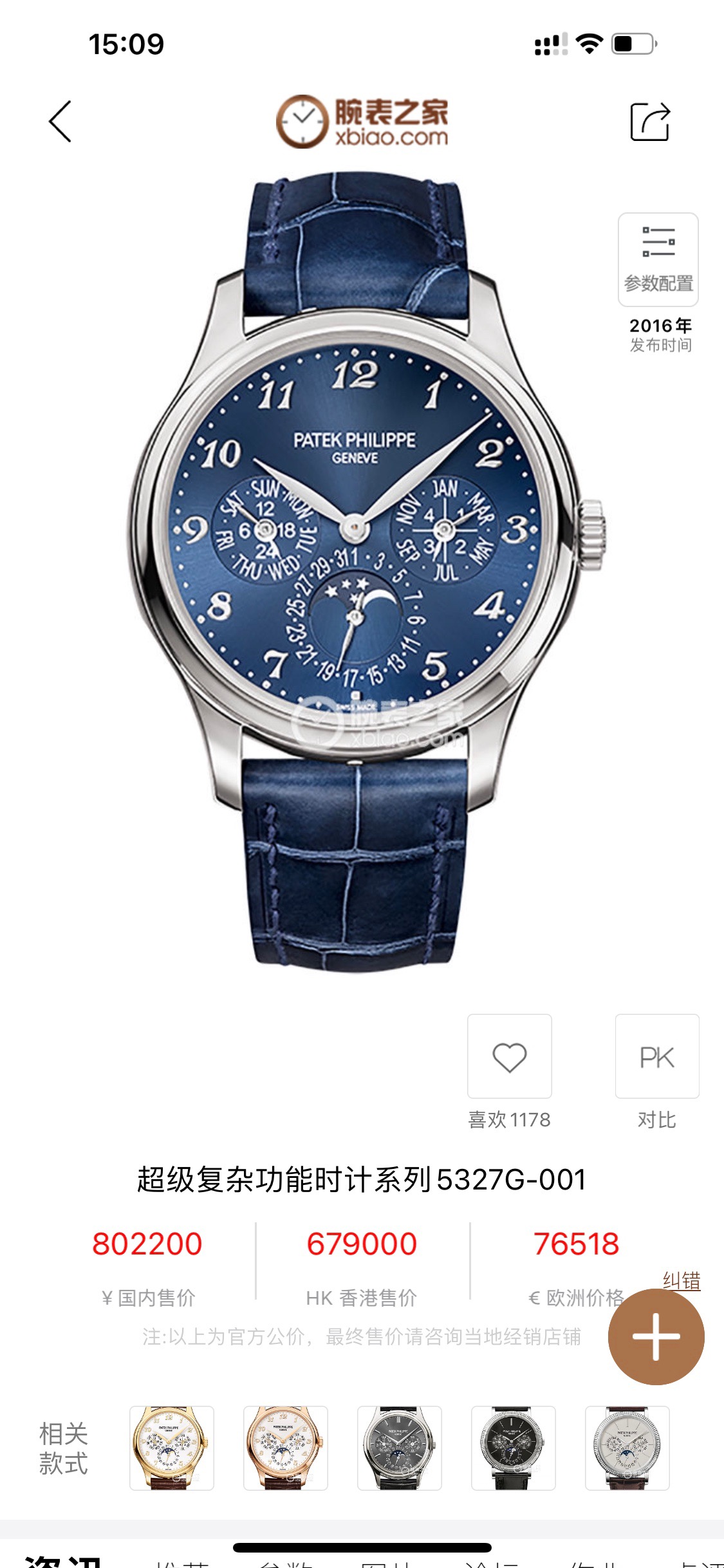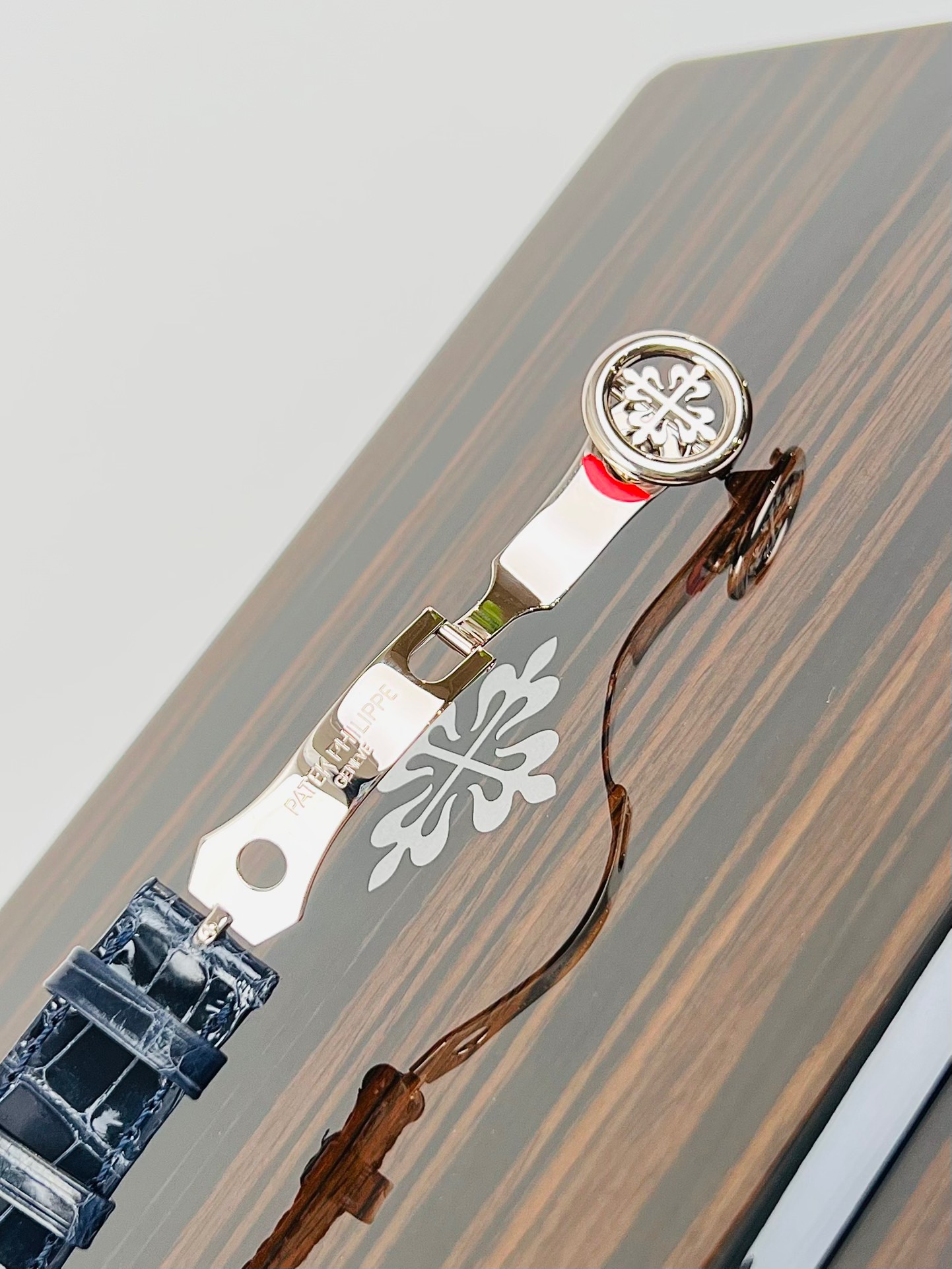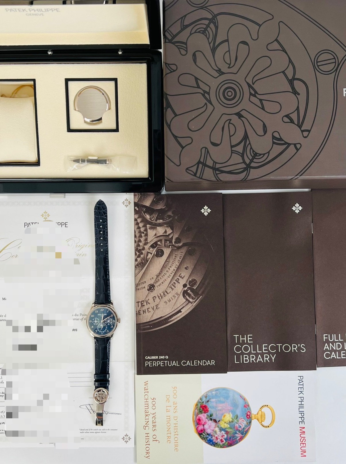 型号:5327G-001自动机械腕表39mm表径 18k白金材质 指针式星期、日期、月份、闰年以及 24 小时显示 附件:极品全套 专柜价80万