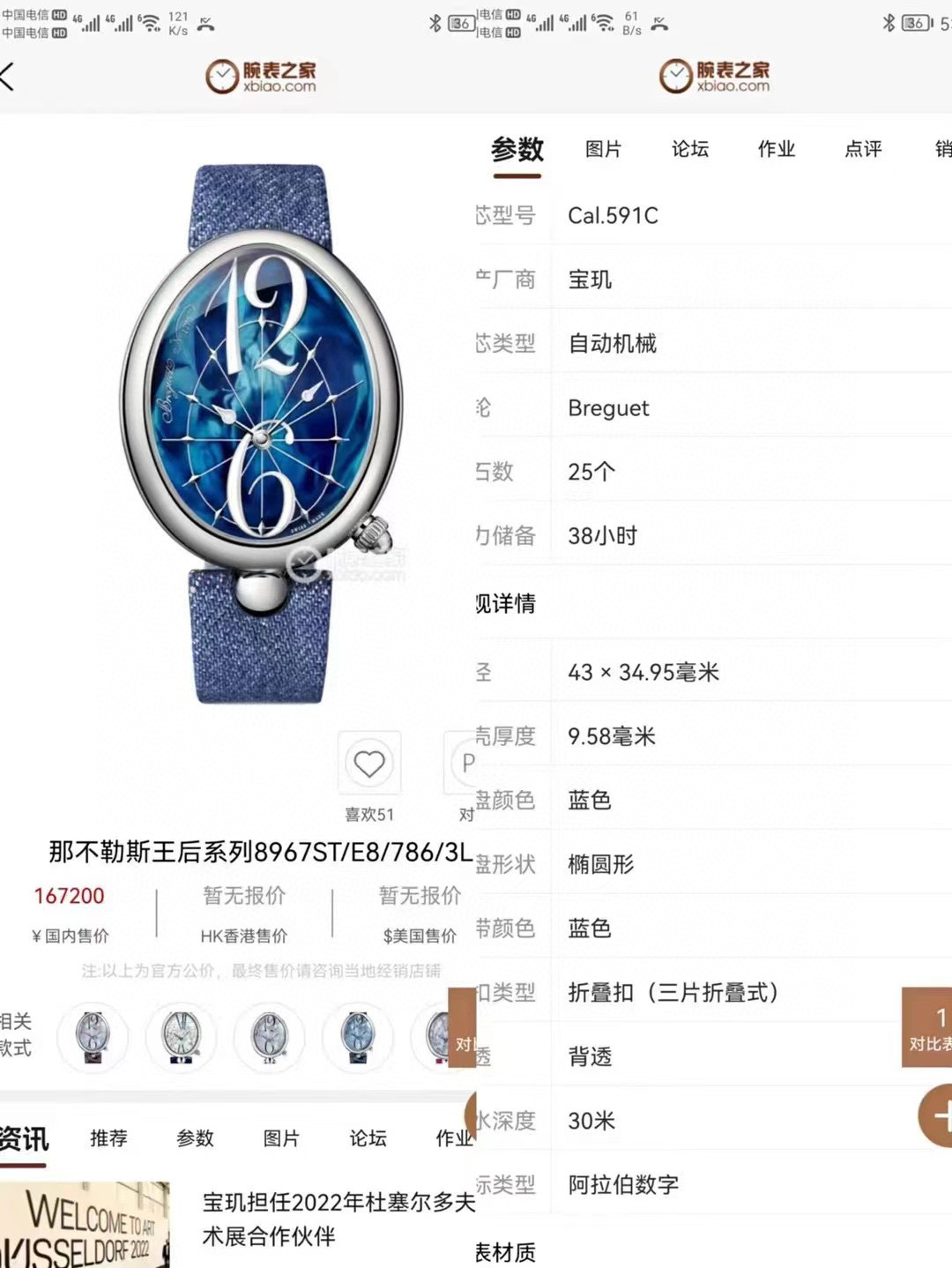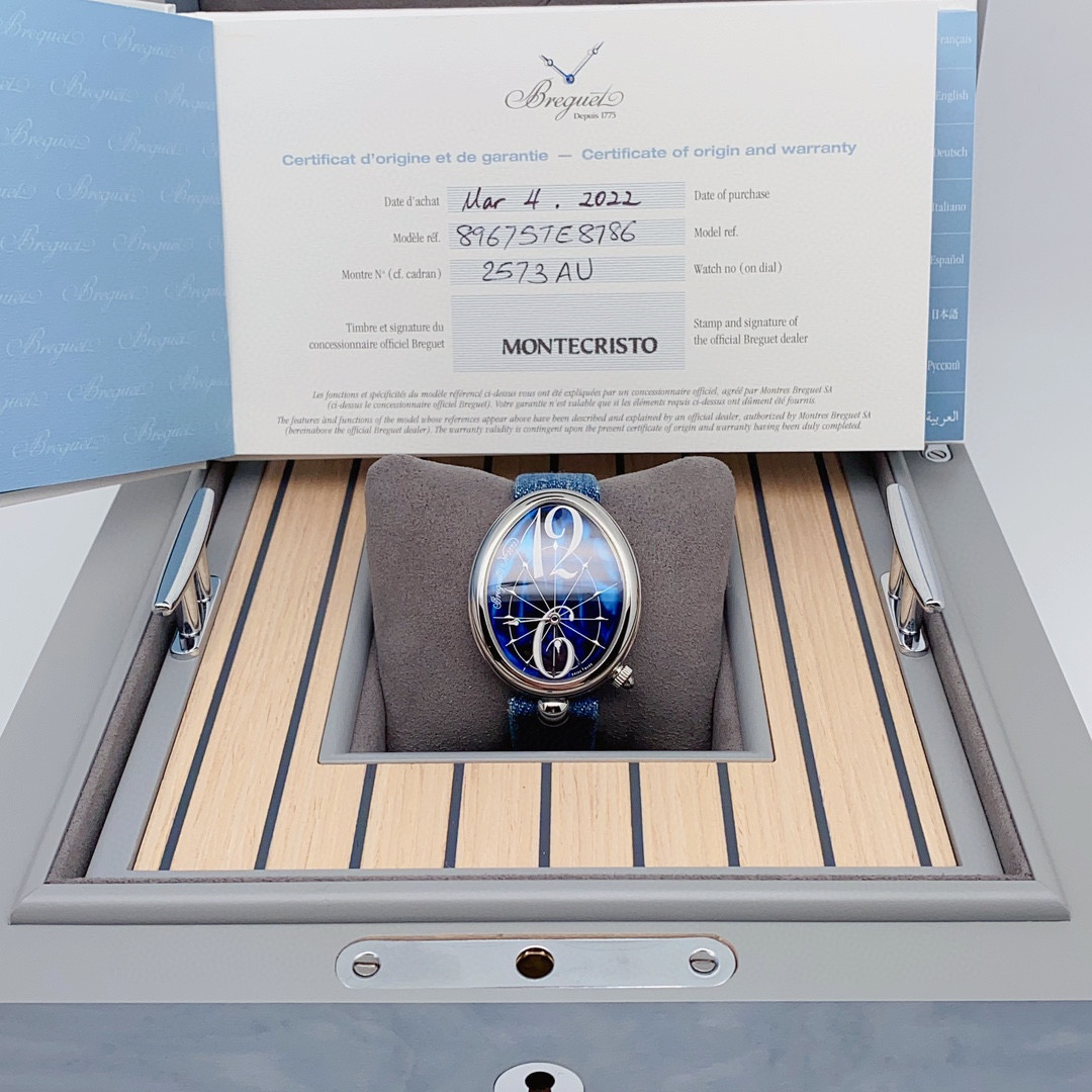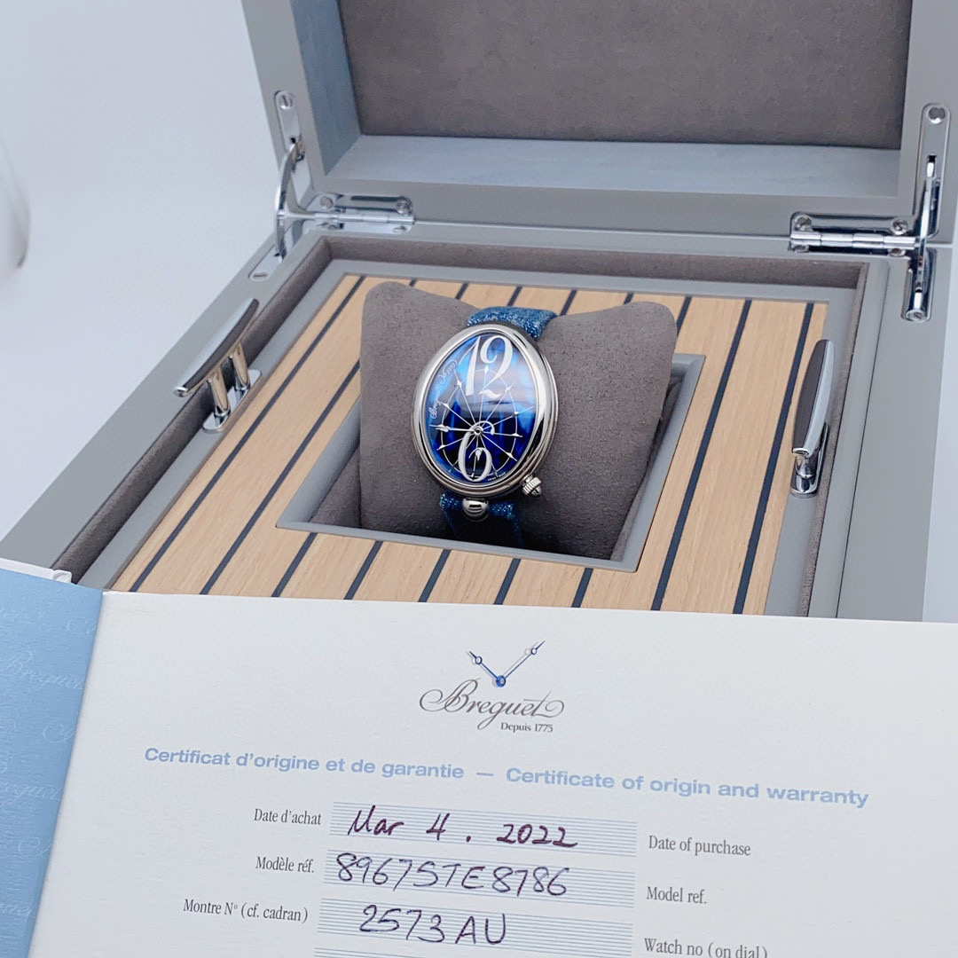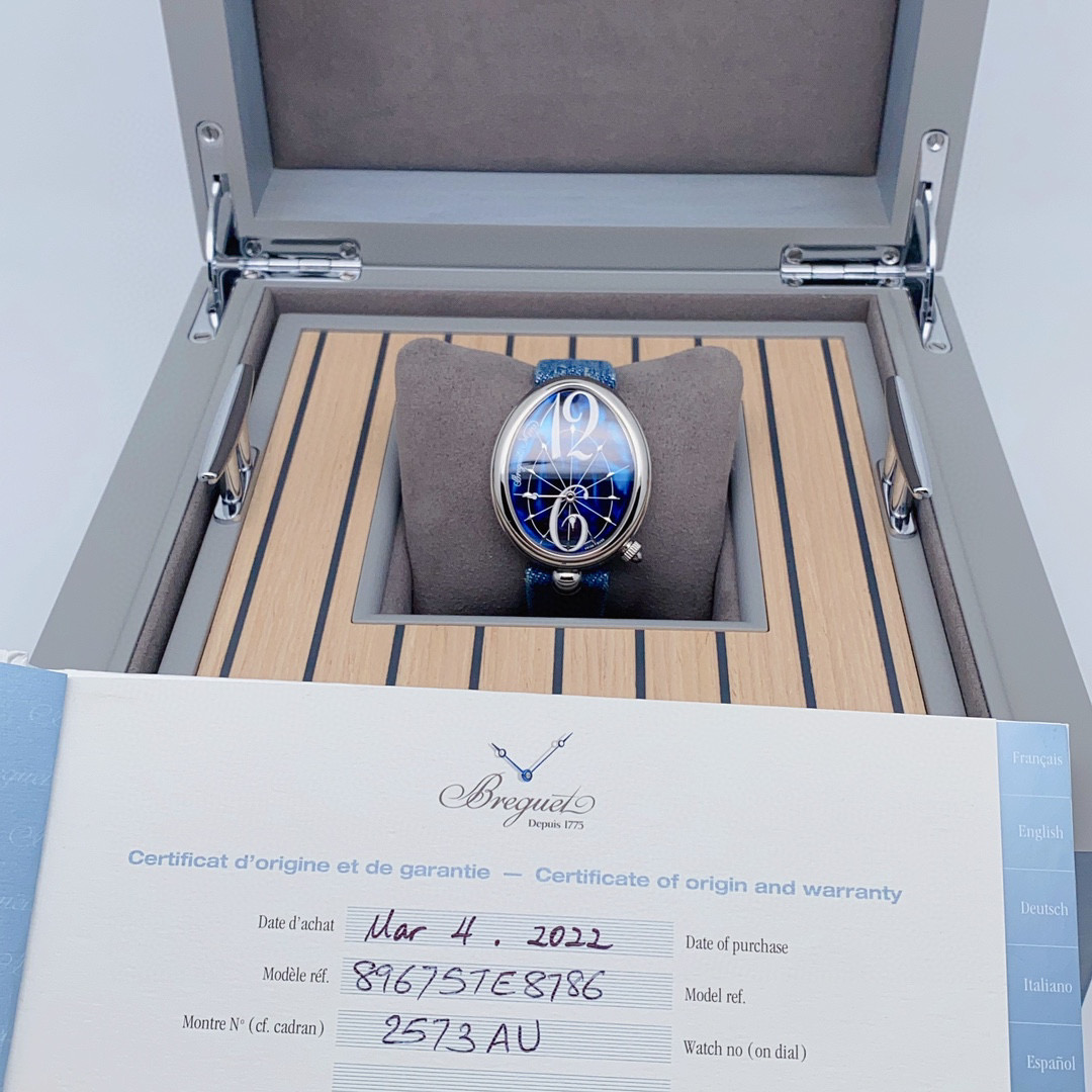 2022年3月全套宝玑那不勒斯皇后8967st自动机械女表,尺寸43x34mm,送礼佳品,蓝色贵族表盘,大气明亮,专柜167200,现货好价