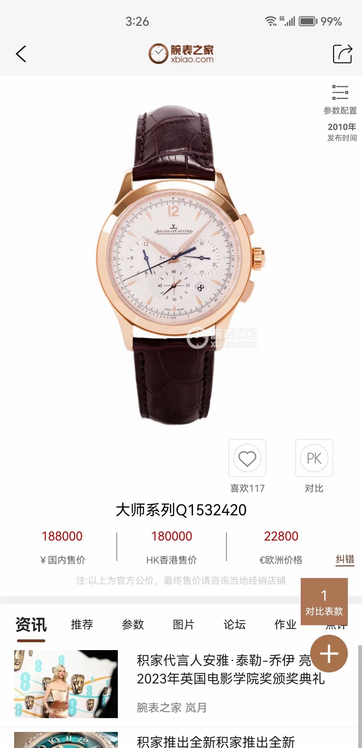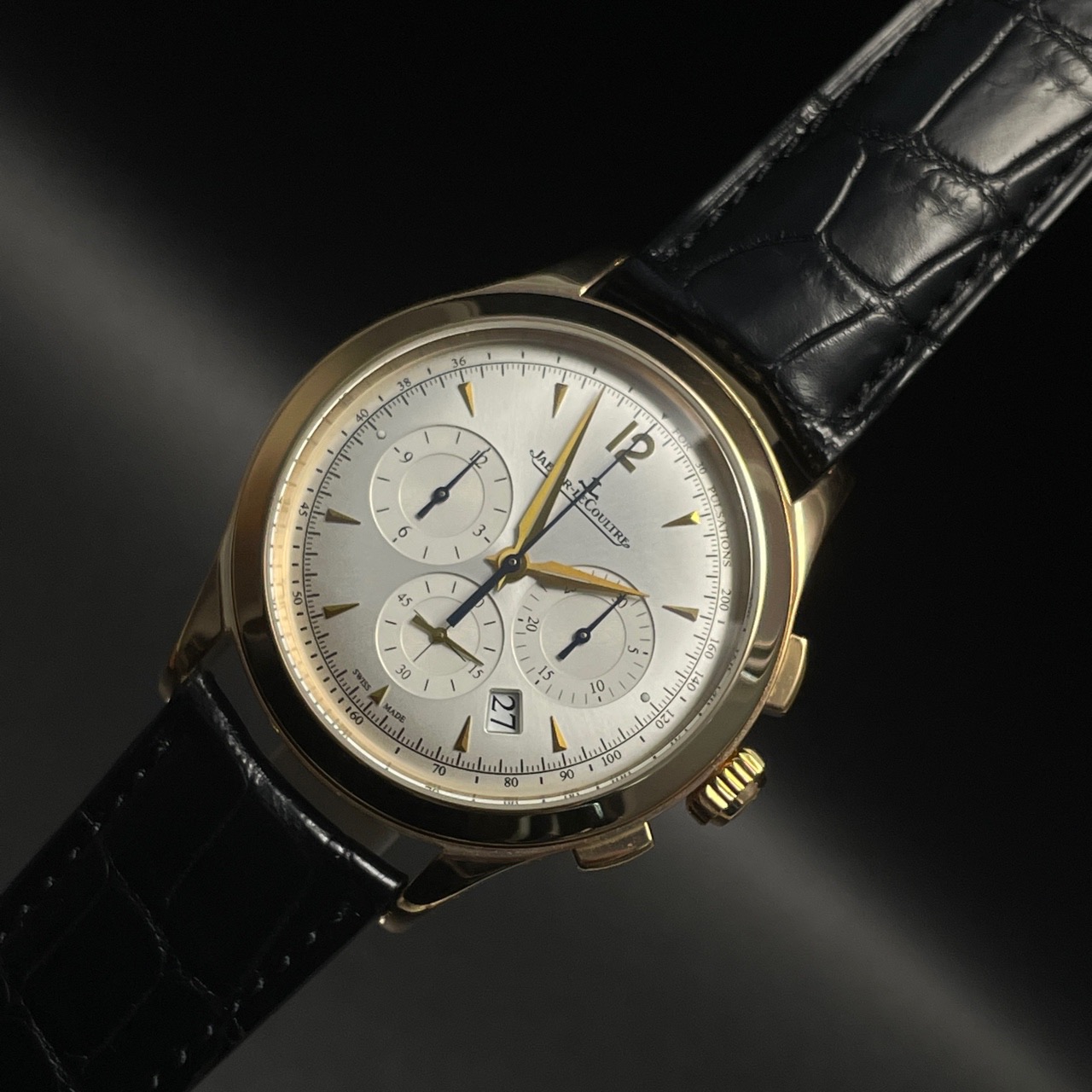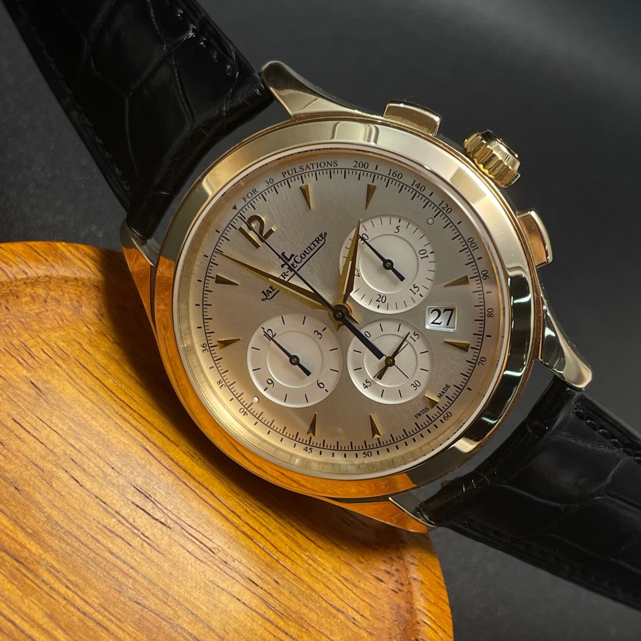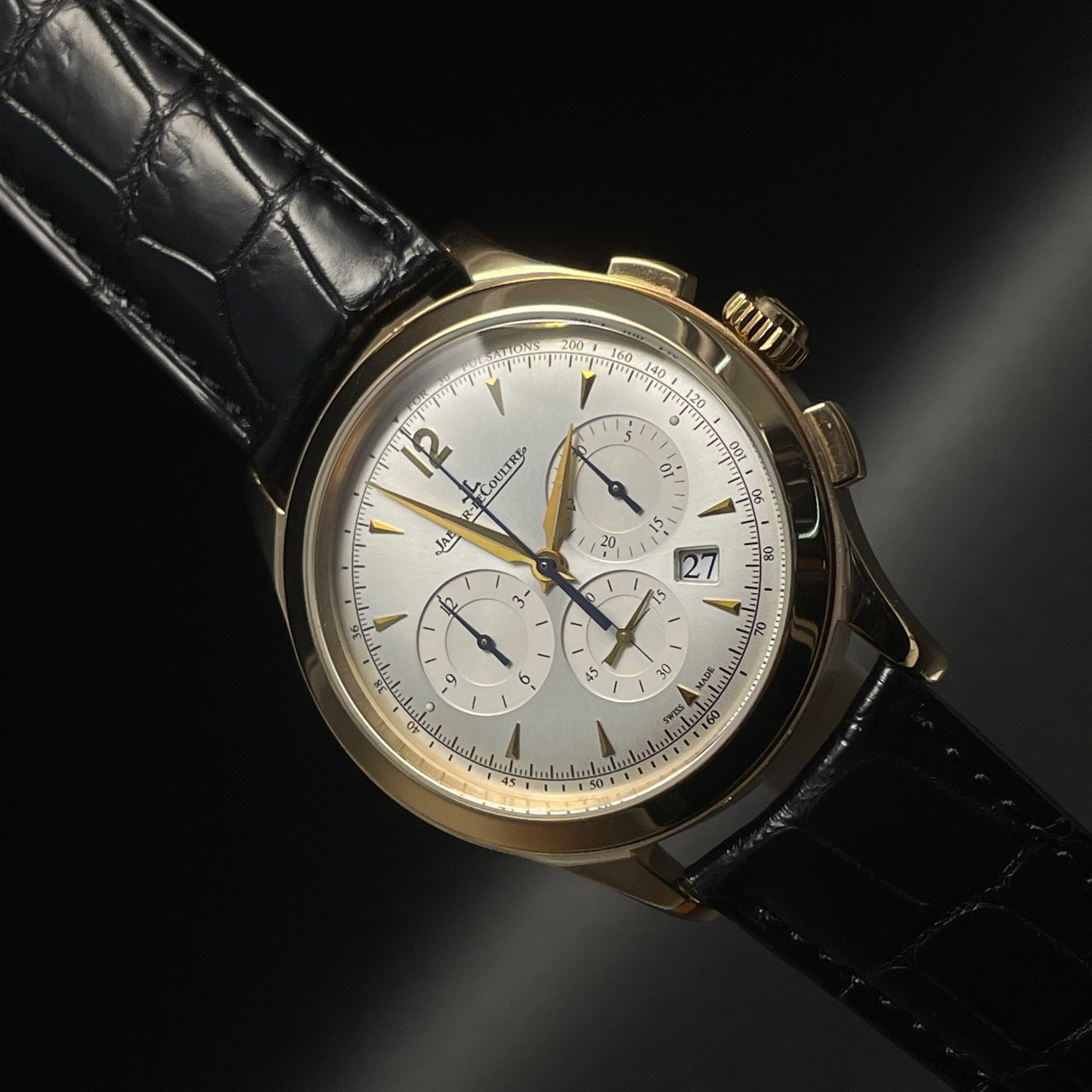 积家 系列:大师系列 型号:Q1532420 材质:18k玫瑰金 22年全套专柜保修8年 镜面:蓝宝石玻璃 表盖:密底 表扣:折叠扣 表径:40mm 机芯类型:自动机械机芯 成色:95公价:188000 现在好价出