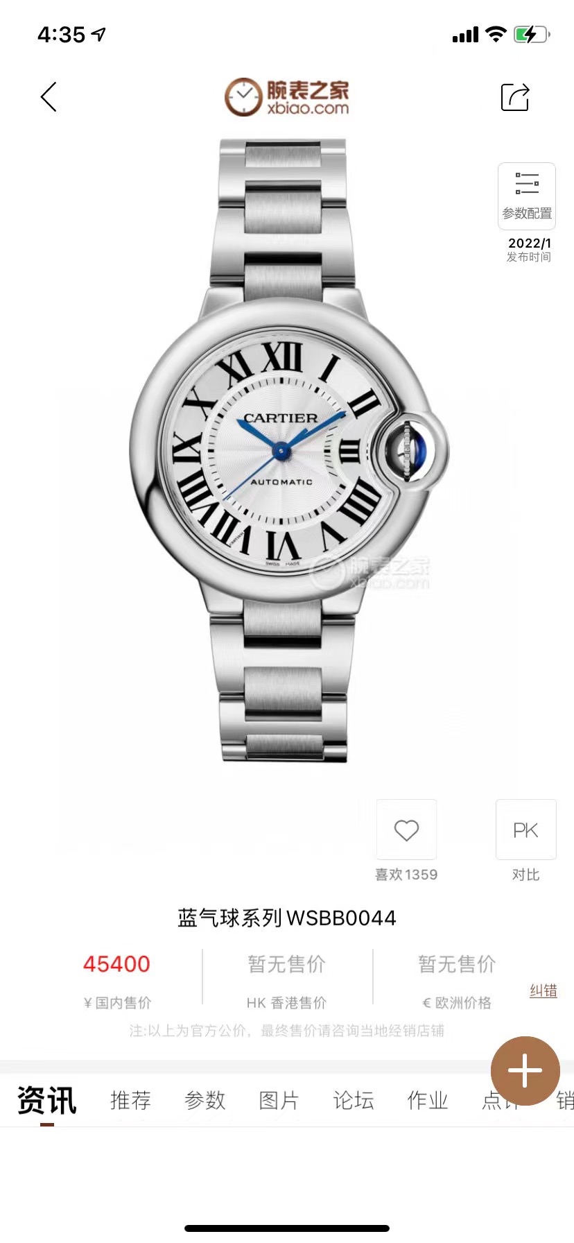 卡地亚蓝气球BALLON BLANC DE CARTIERWSBB0044机械女性
