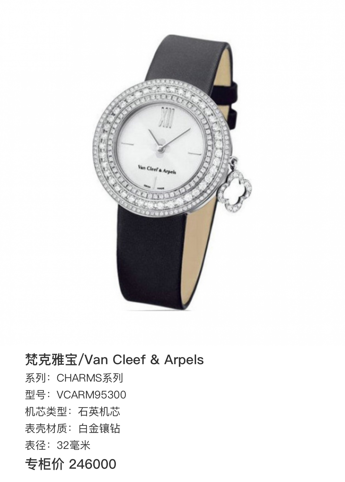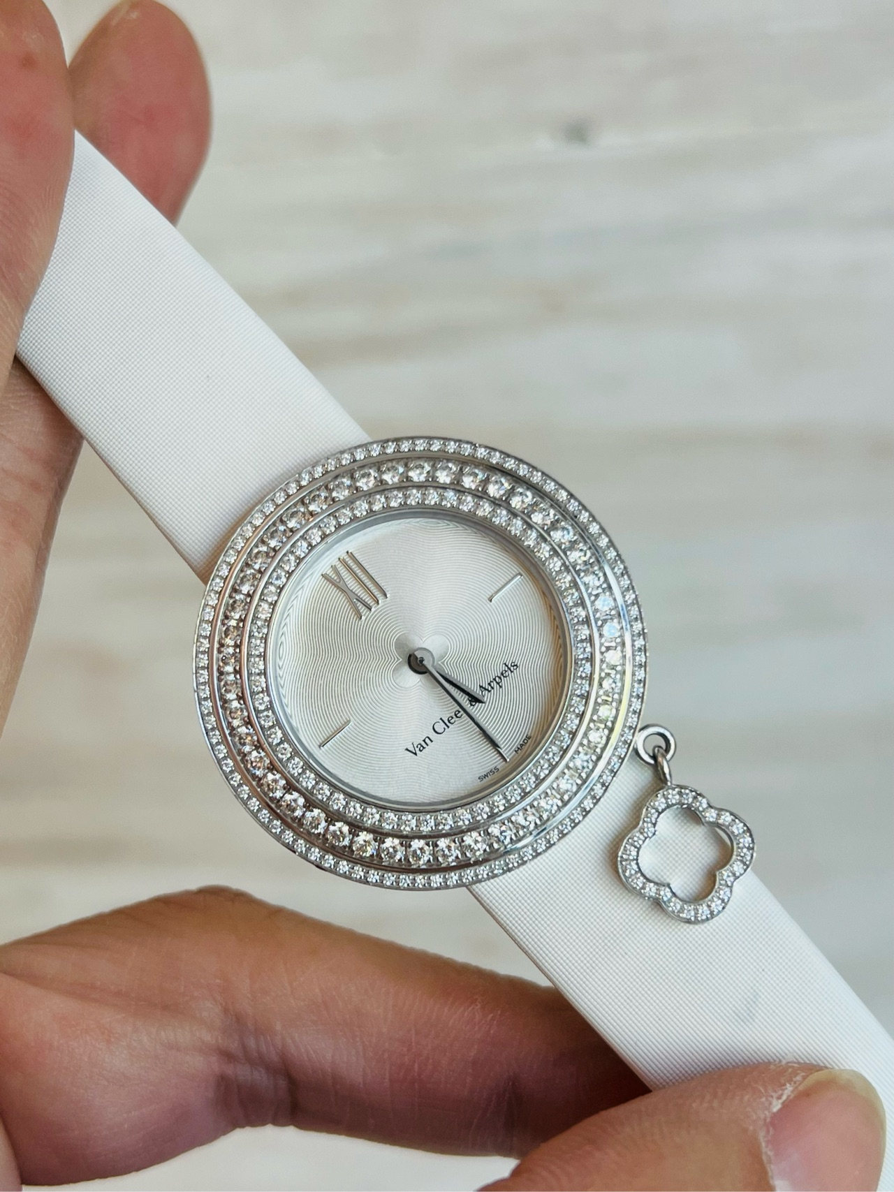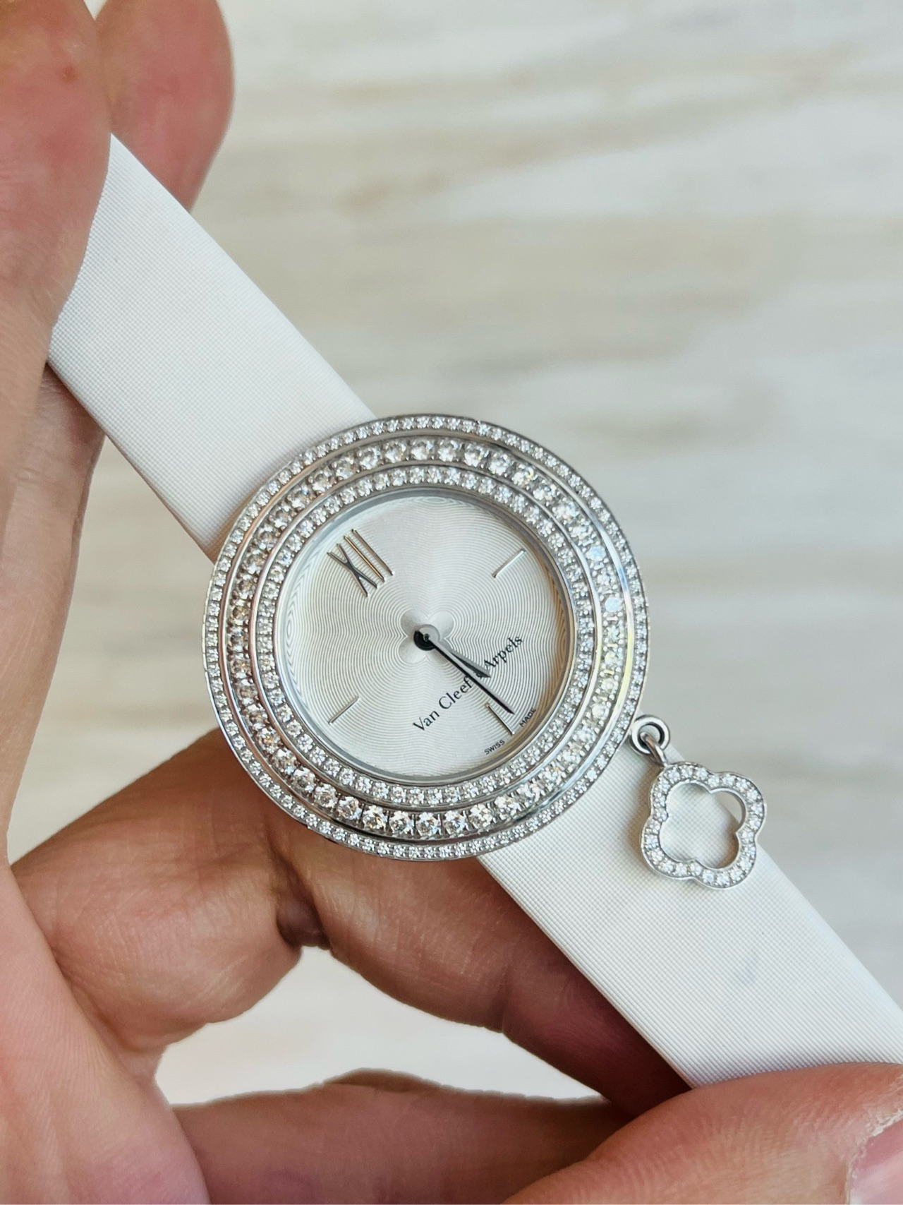 梵克雅宝/Van Cleef & Arpels CHARMS系列 VCARM95300 石英机芯 18K白金材质 原镶钻 32毫米表经 专柜价 246000