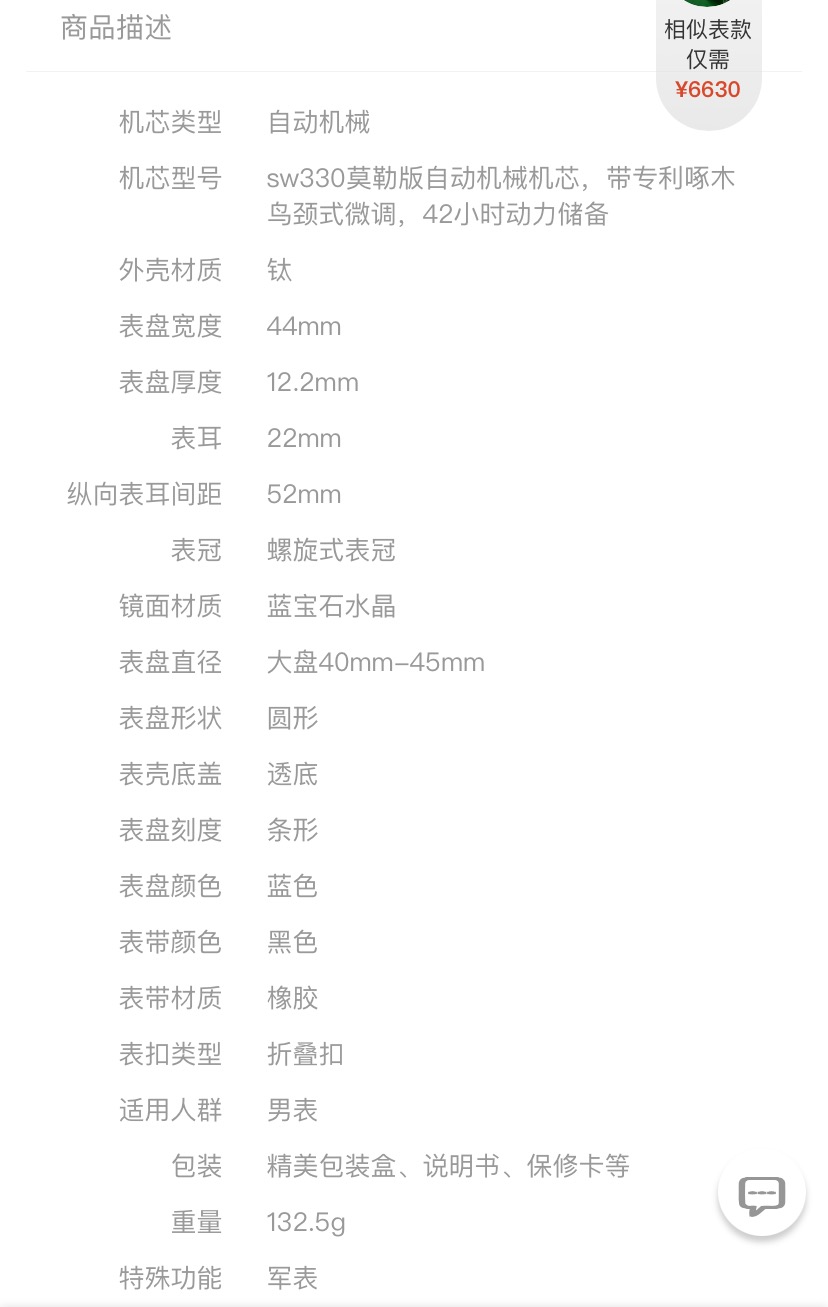 44表径/军用航海表钛金属外壳坚固耐腐蚀300米防水GMT双时区显示42小时动力储备