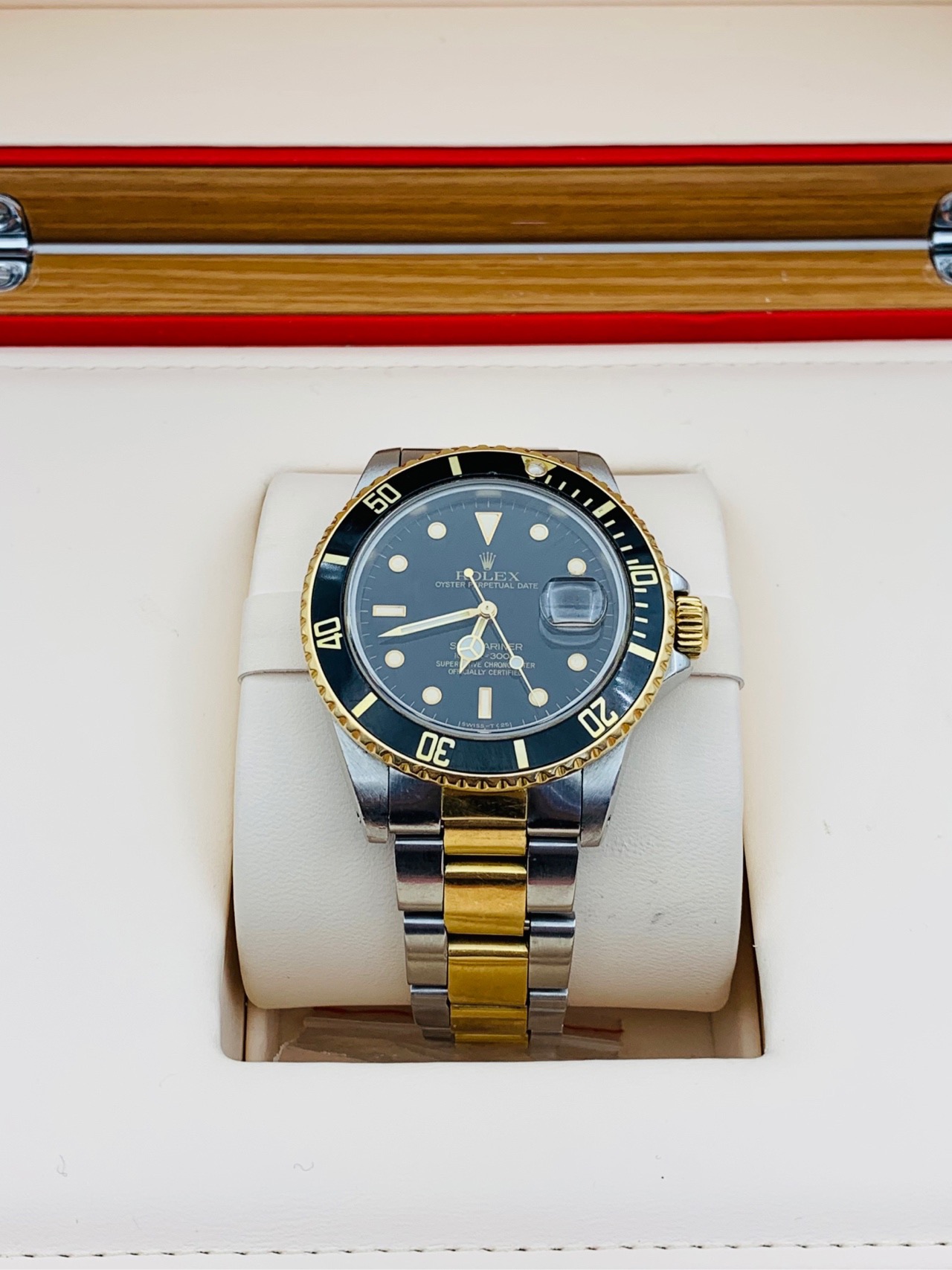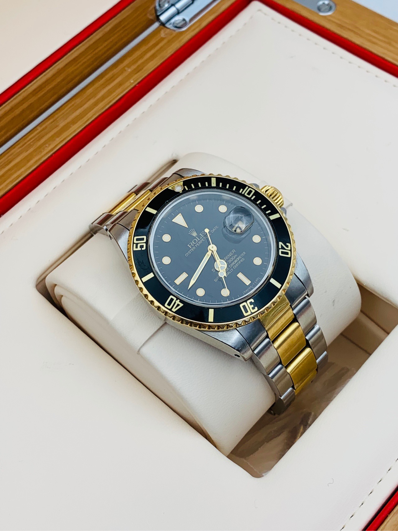 劳力士间金黑潜航者系列 型号16803,表径40,自动机械男表 间金材质 t25 黑盘,值得珍藏 市场少有 现特价
