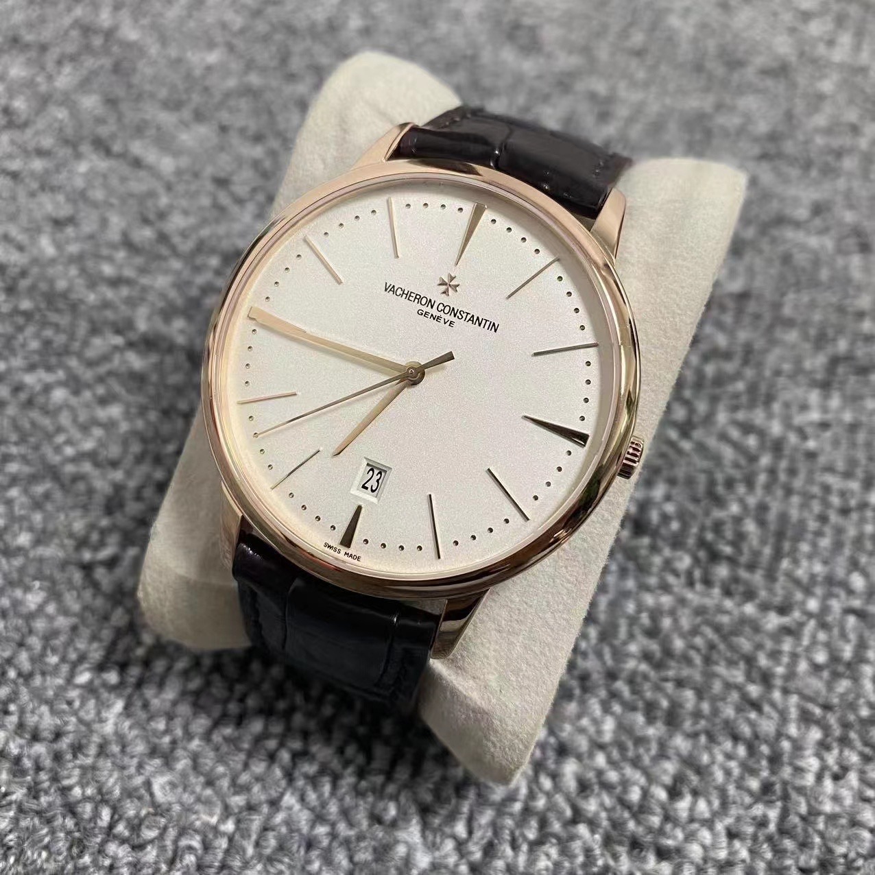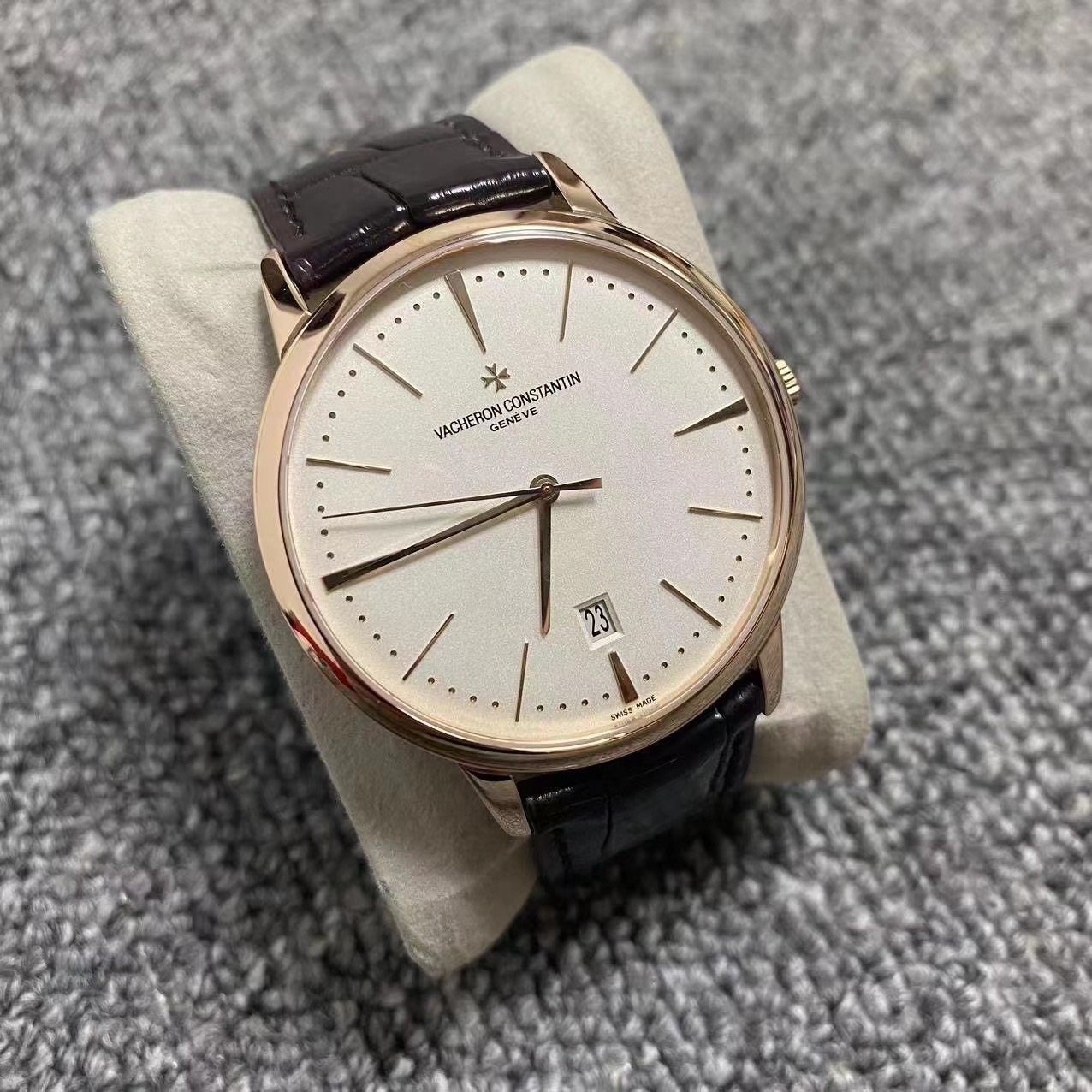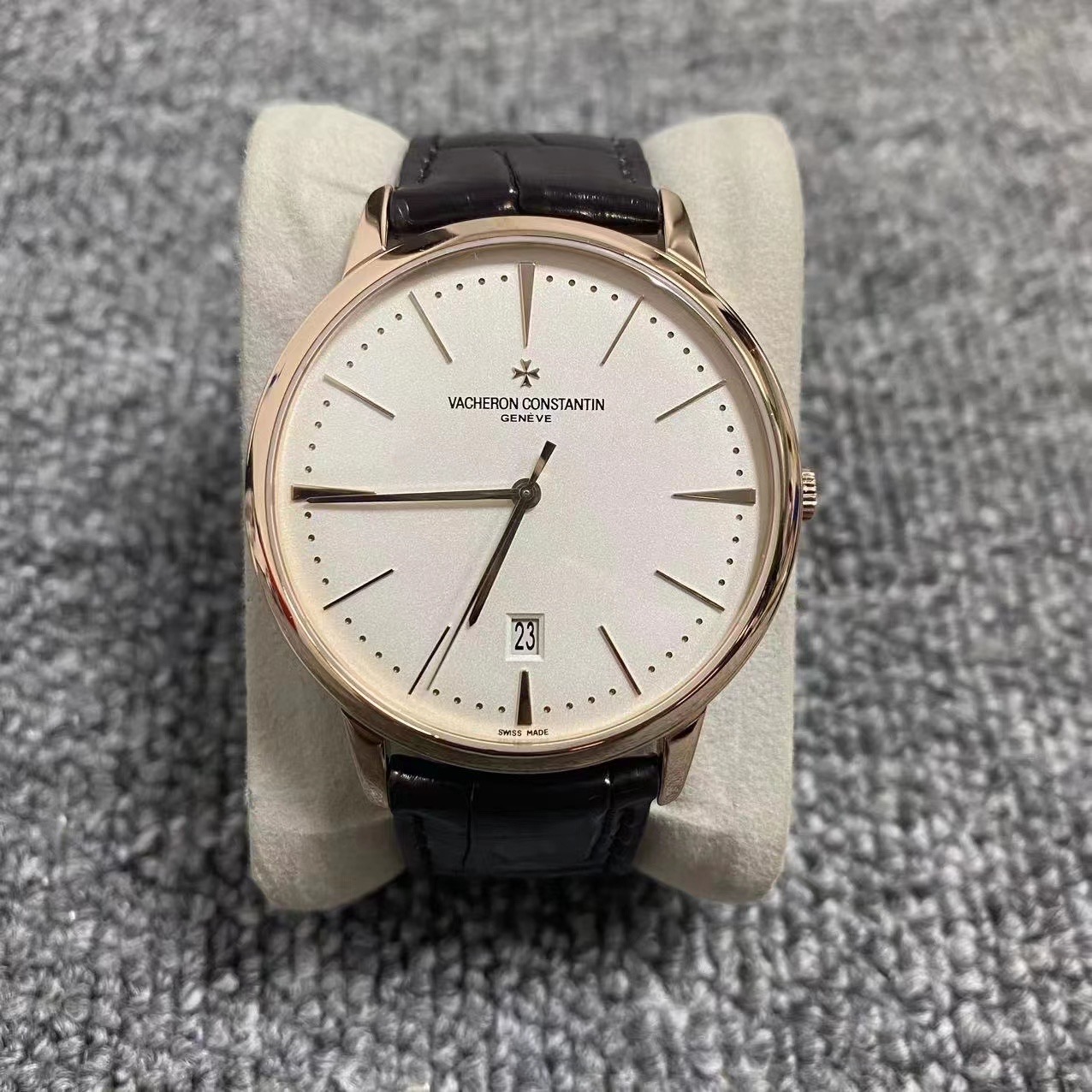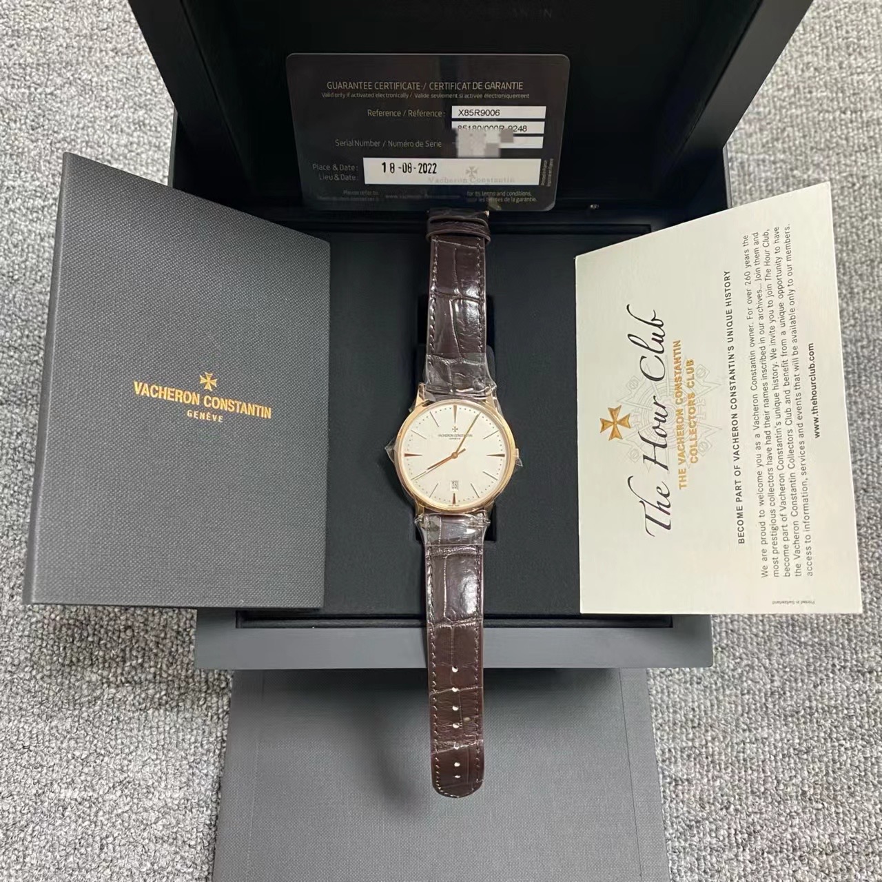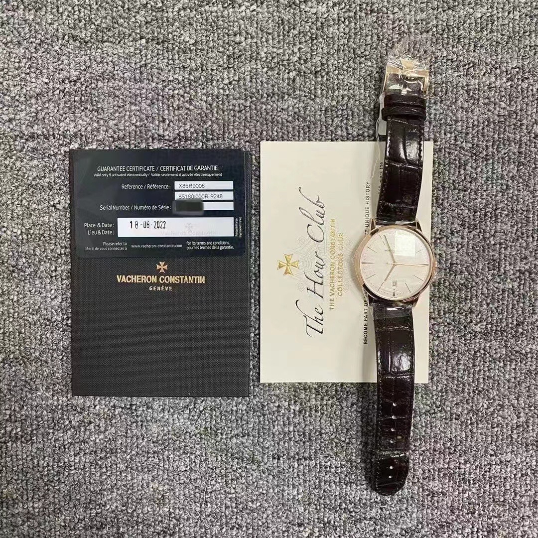 22年全套 江诗丹顿传承系列85180r 2022年极品全套 40毫米表径 通体18k玫瑰金材质 经典白盘金针 大三针带日期窗显示 背透大金陀 延保到2030年 公价221000