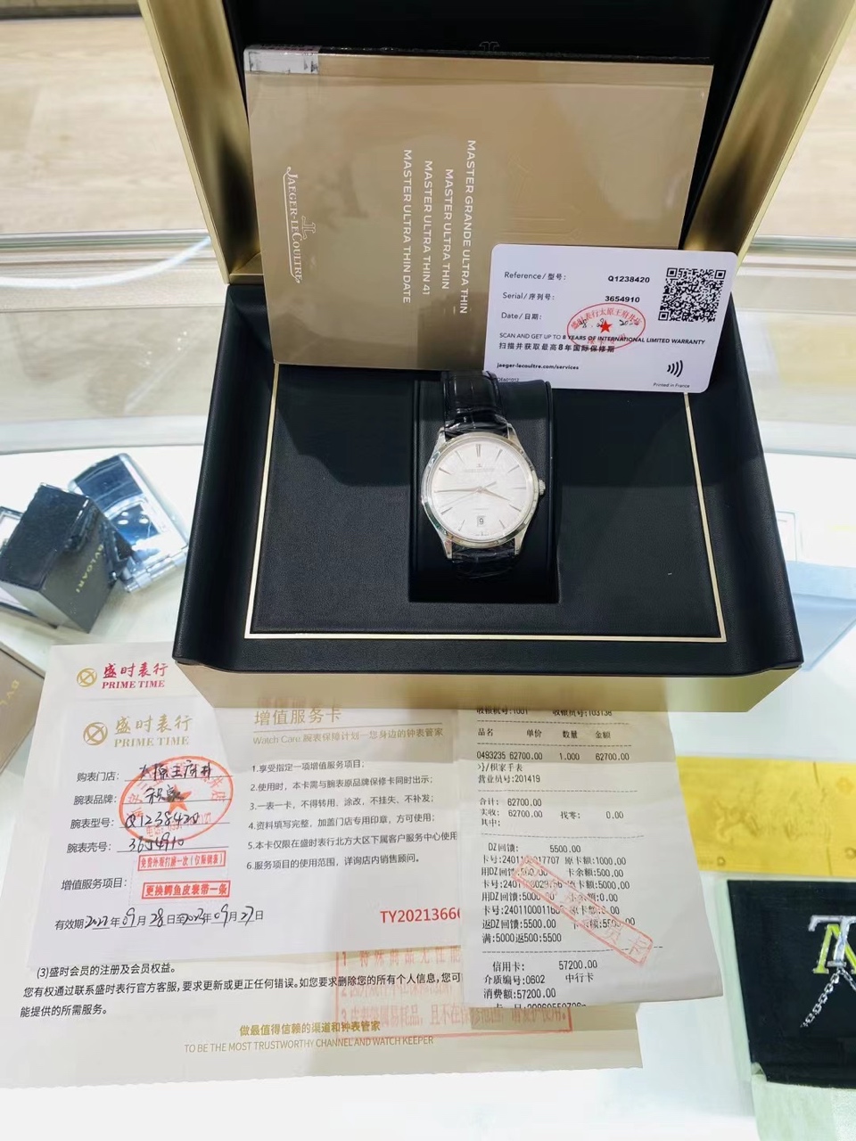 y刚收(积家大师系列)22年全套带票,型号Q1238420,男士机械腕表,口径39表径,精钢材质日期显示,专柜68000