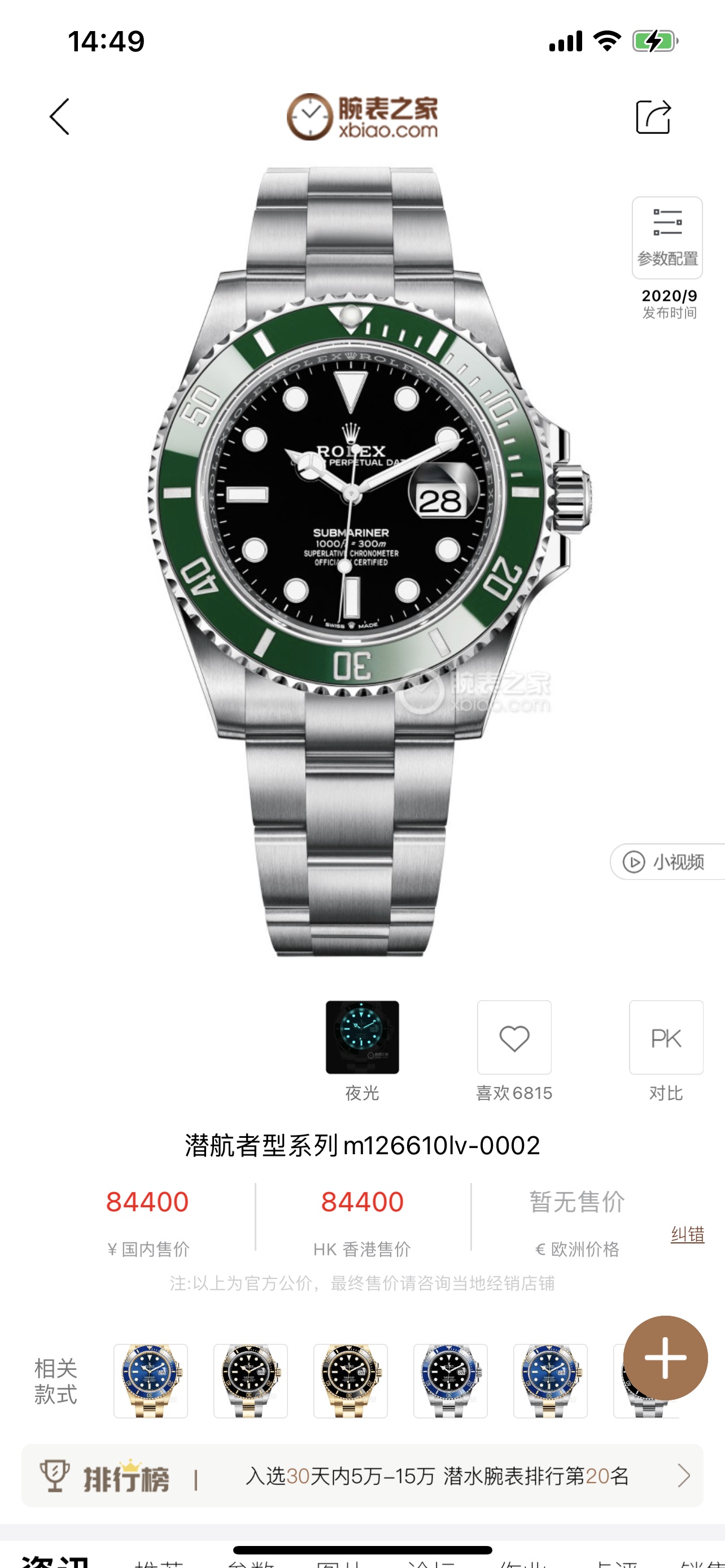 劳力士绿水鬼m126610lv-0002,表径41mm,国行全[爱心]22年9月卡,未使用品,公价84400,好价便宜出