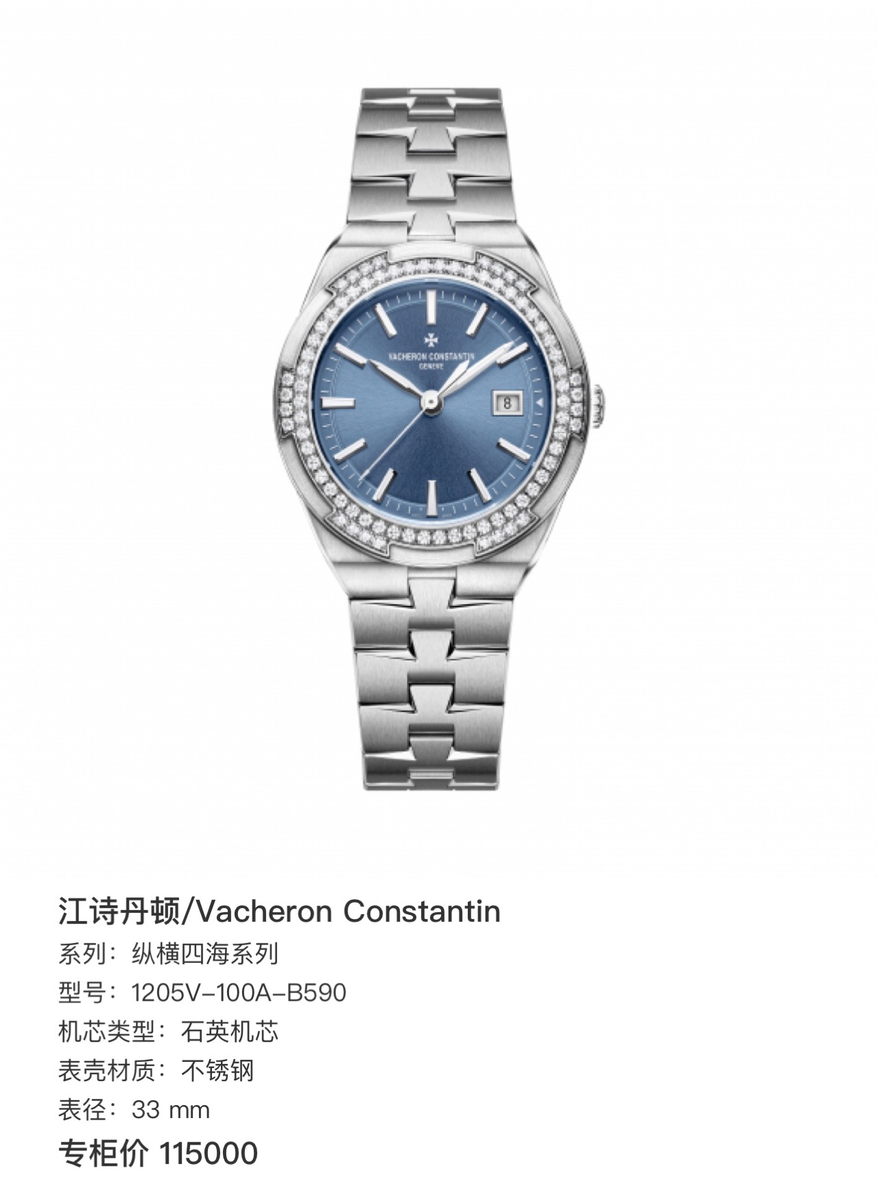 ⌚️江诗丹顿 型号:1205V-100A-B590