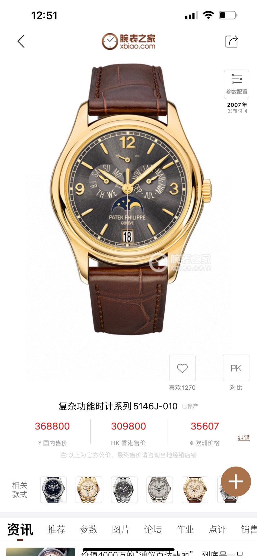 百达翡丽复杂功能计时腕表5146J-010机械男性