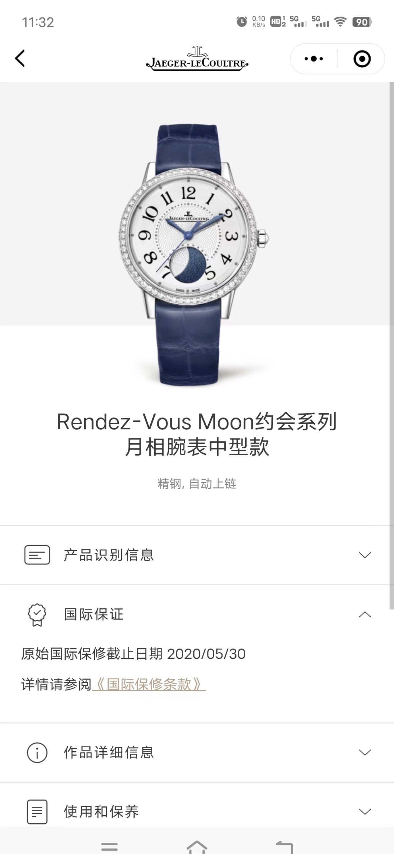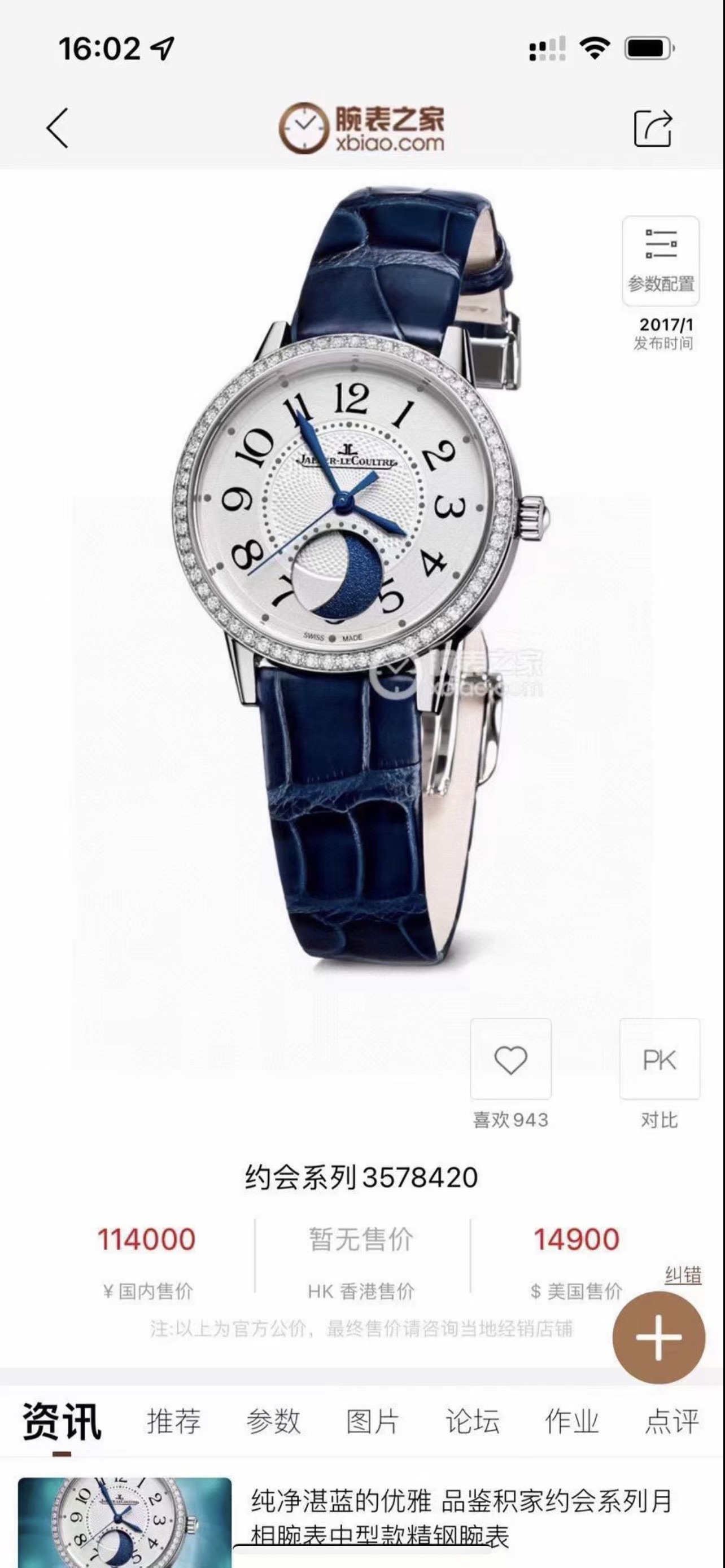 积家约会系列3578420、单表、34盘、精钢材质、自动机械、极品成色(原装皮带)客户一手极少佩戴、专柜售价114000