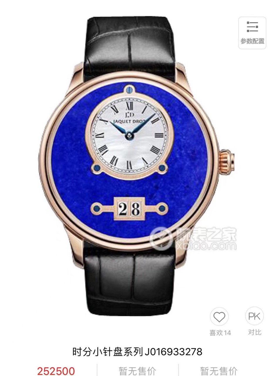 雅克德罗/Jaquet Droz 时分小针盘系列 J016933278 自动机械机芯 18K红金 43毫米 专柜价 252500