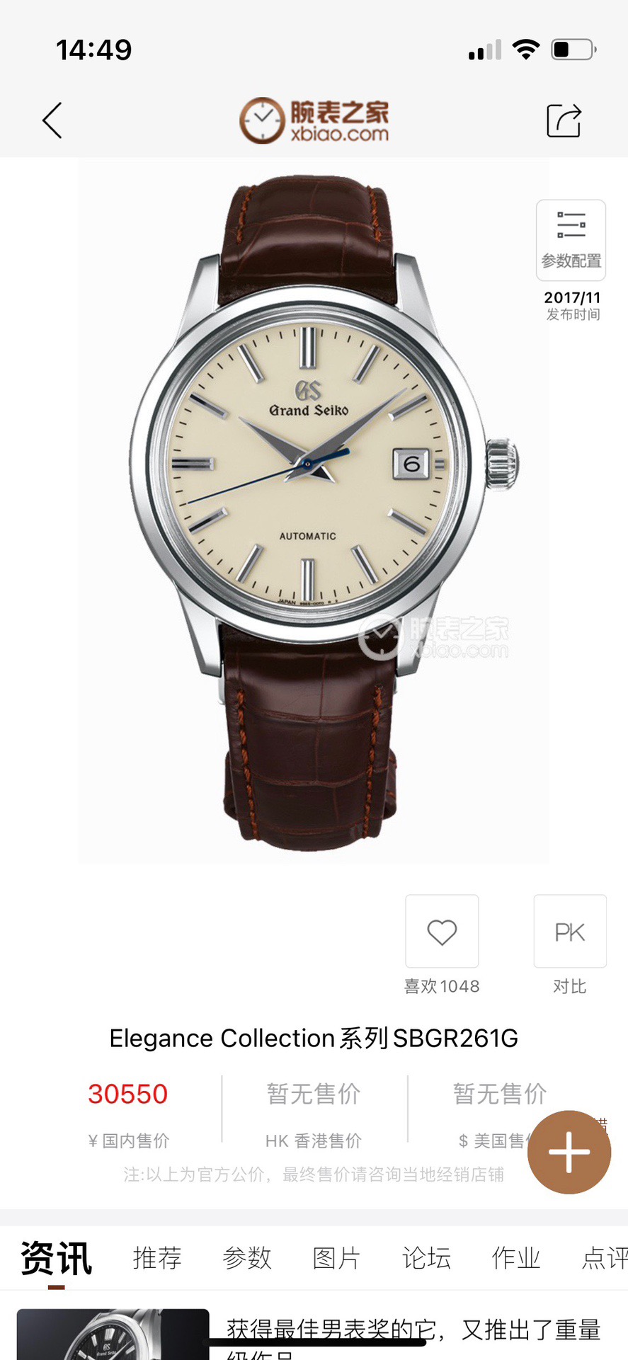 公价30550冠蓝狮 Elegance Collection系列 型号SBGR261G男士手表 表径39.5mm 不锈钢材质 日期GMT防磁 显示功能 单表
