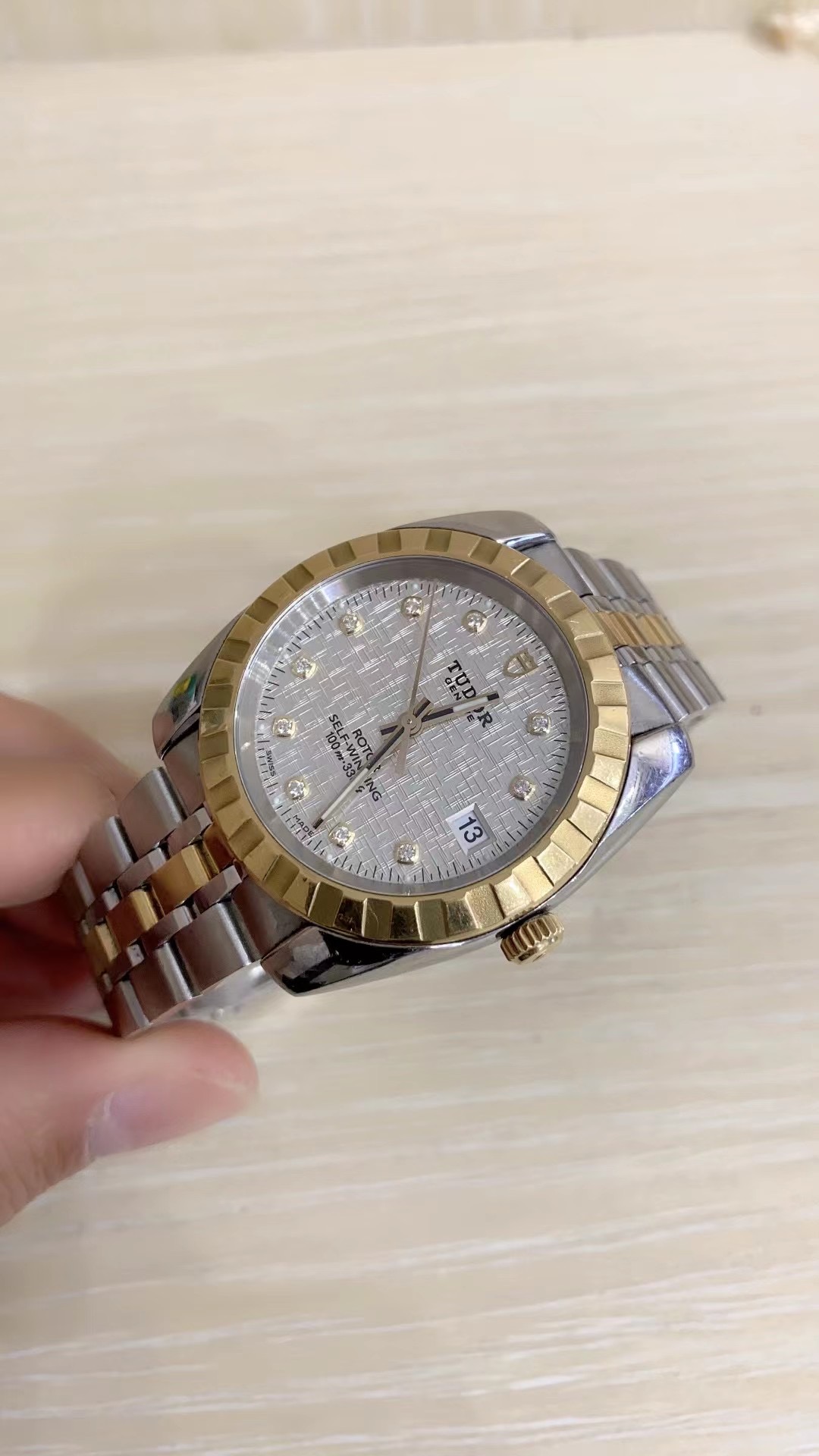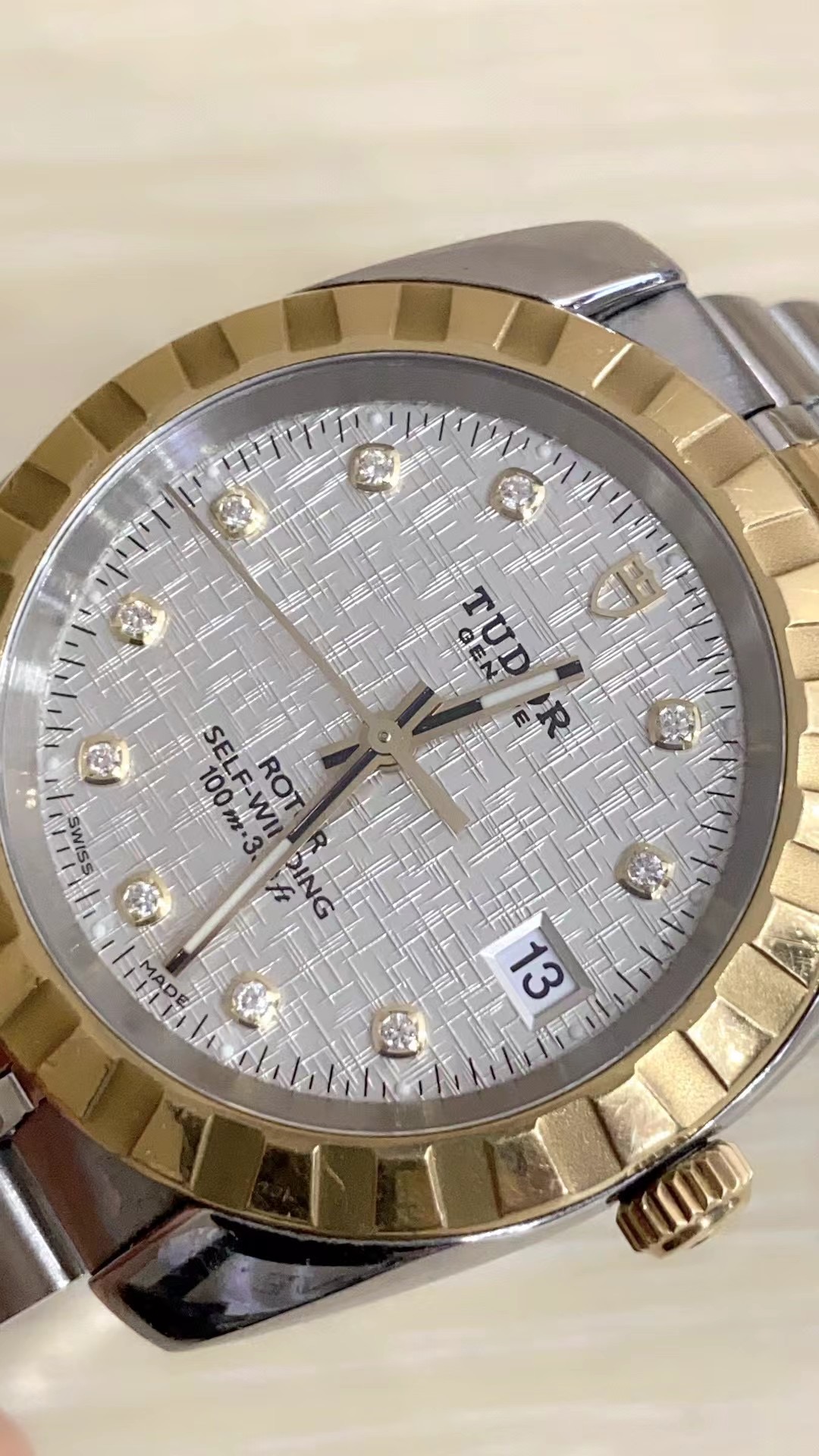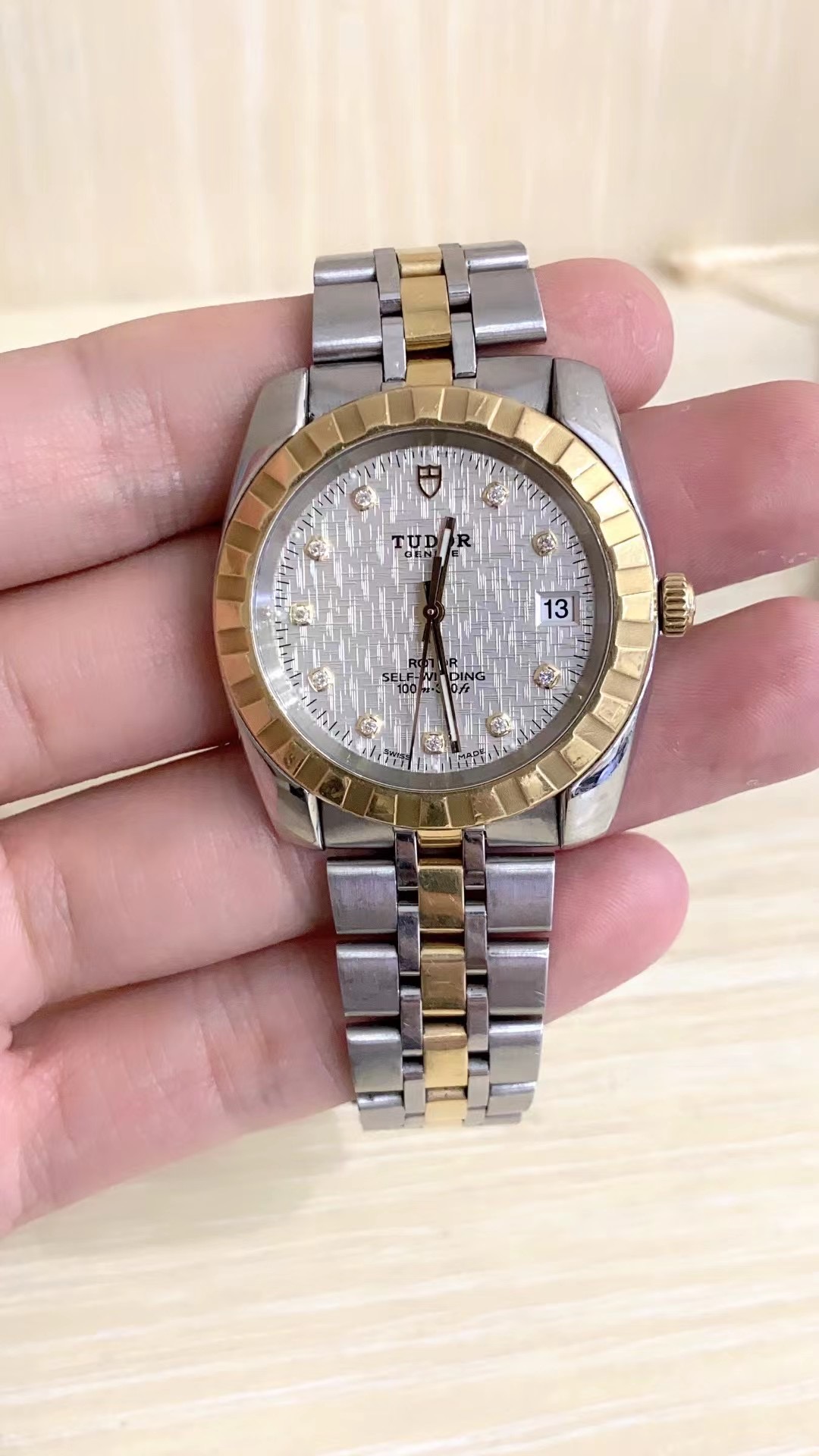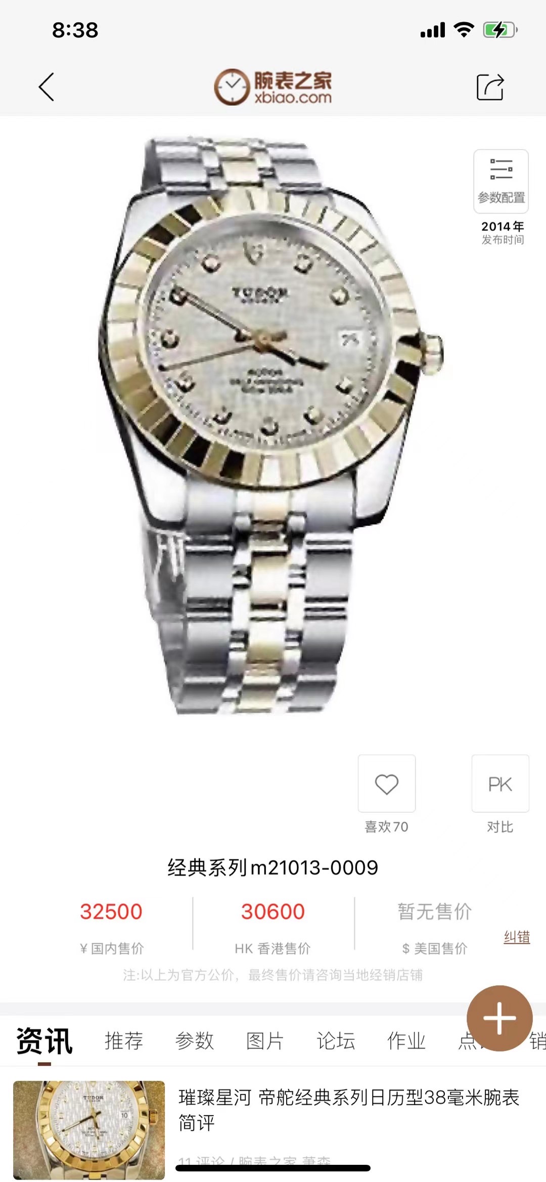 帝舵 经典系列 m21013-0009 男士自动机械腕表 直径38 网纹白盘 外观材质18k金/精钢 单日历 密底 单表无附件 工价32500