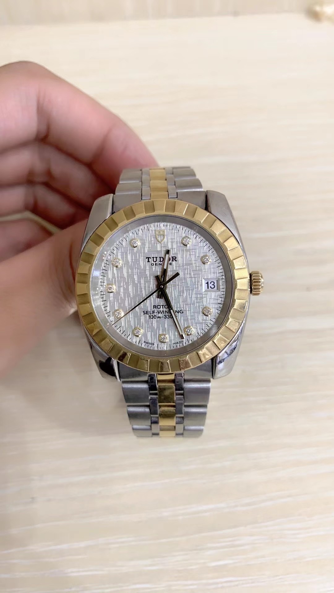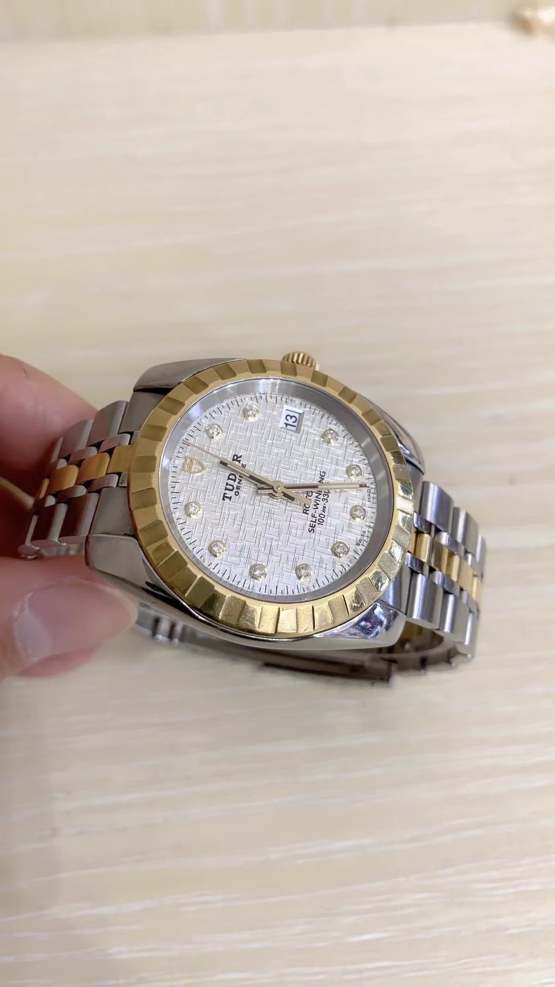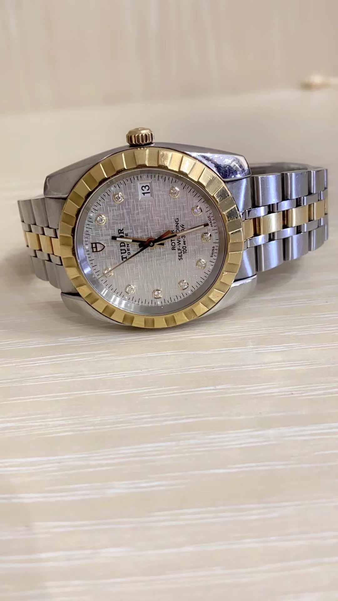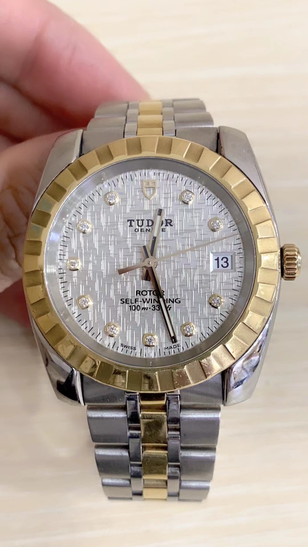 帝舵 经典系列 m21013-0009 男士自动机械腕表 直径38 网纹白盘 外观材质18k金/精钢 单日历 密底 单表无附件 工价32500