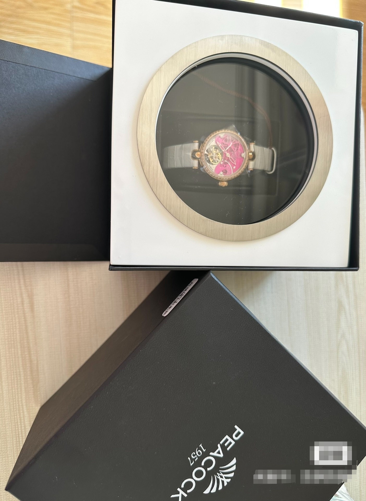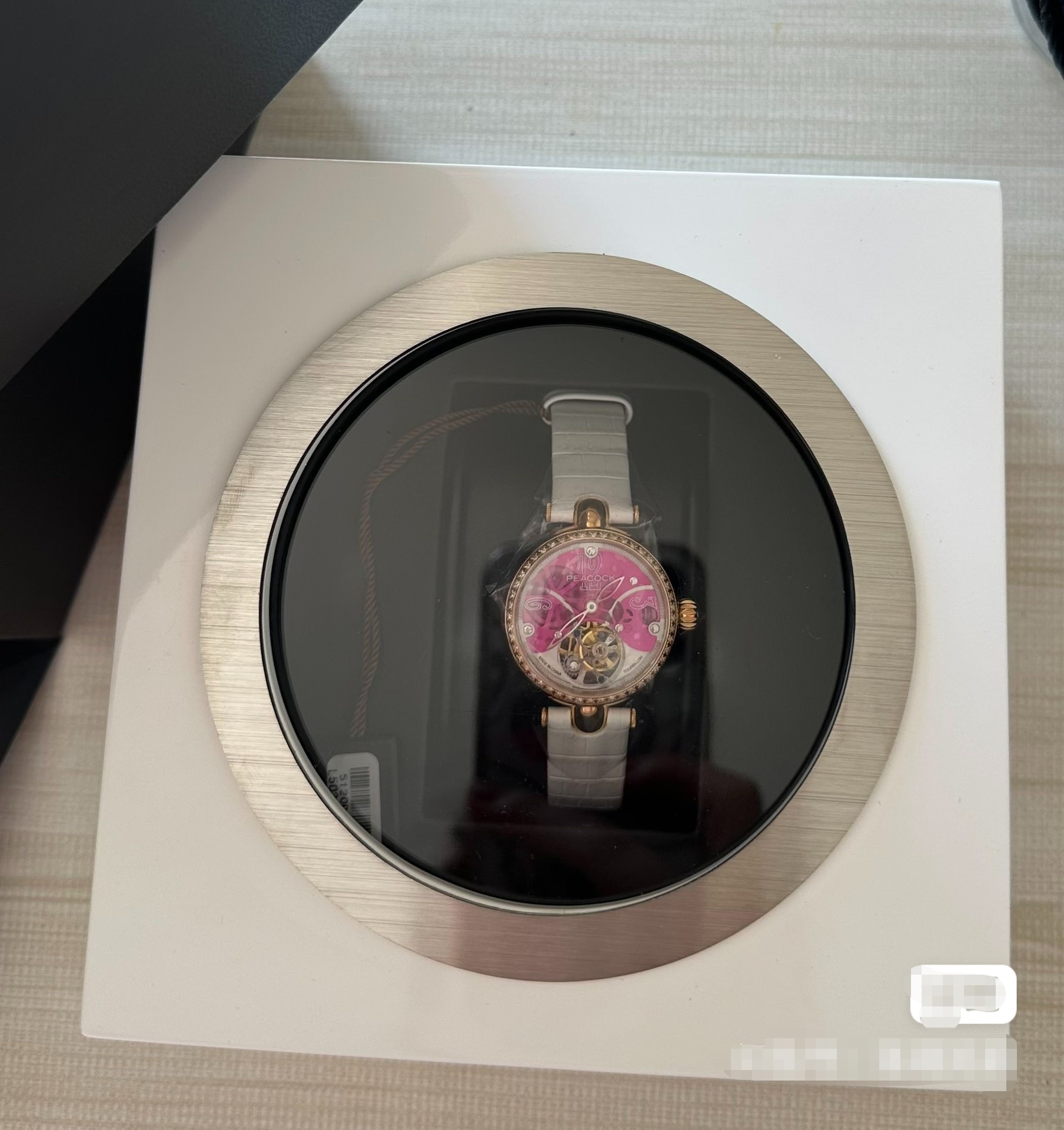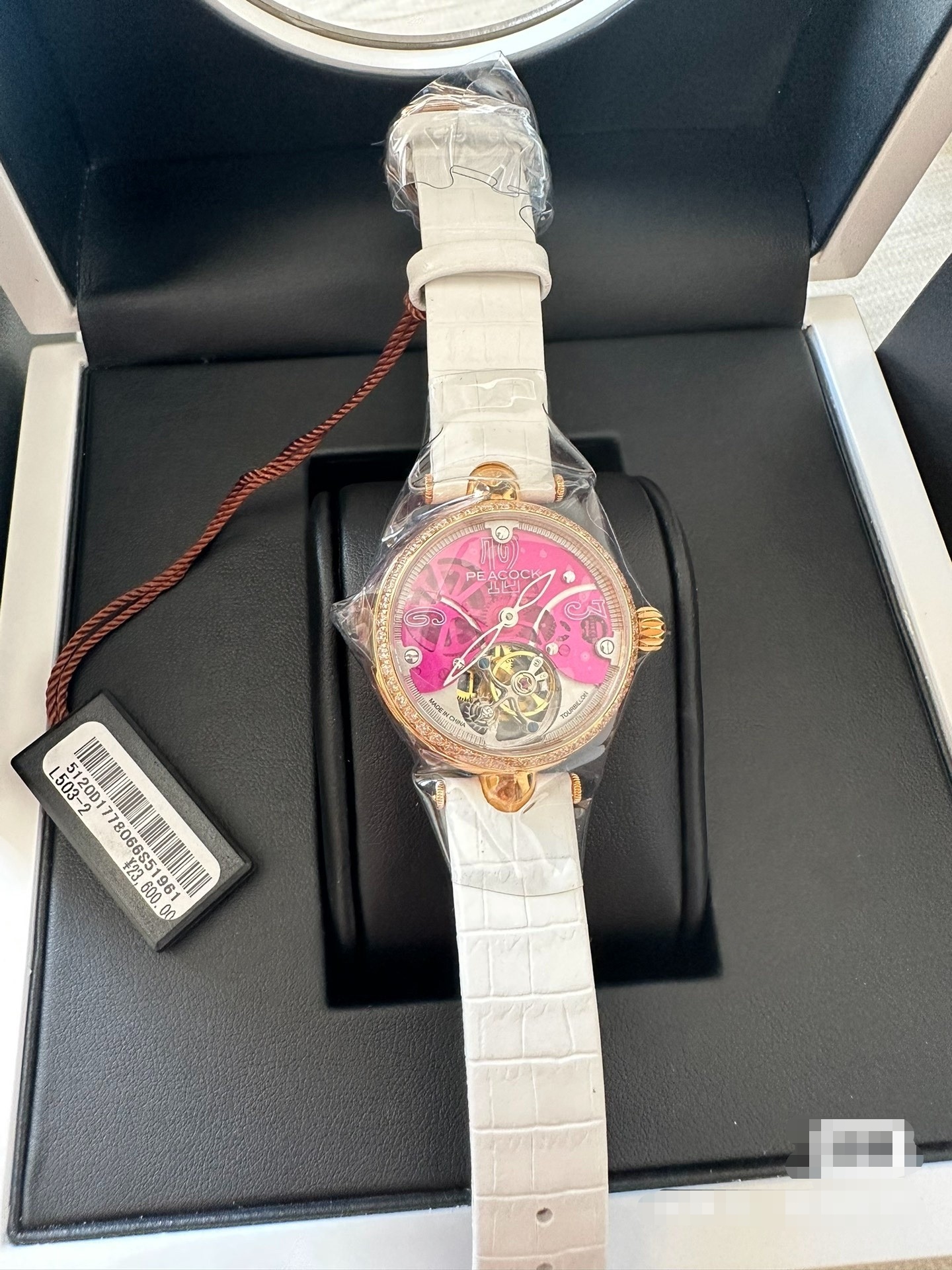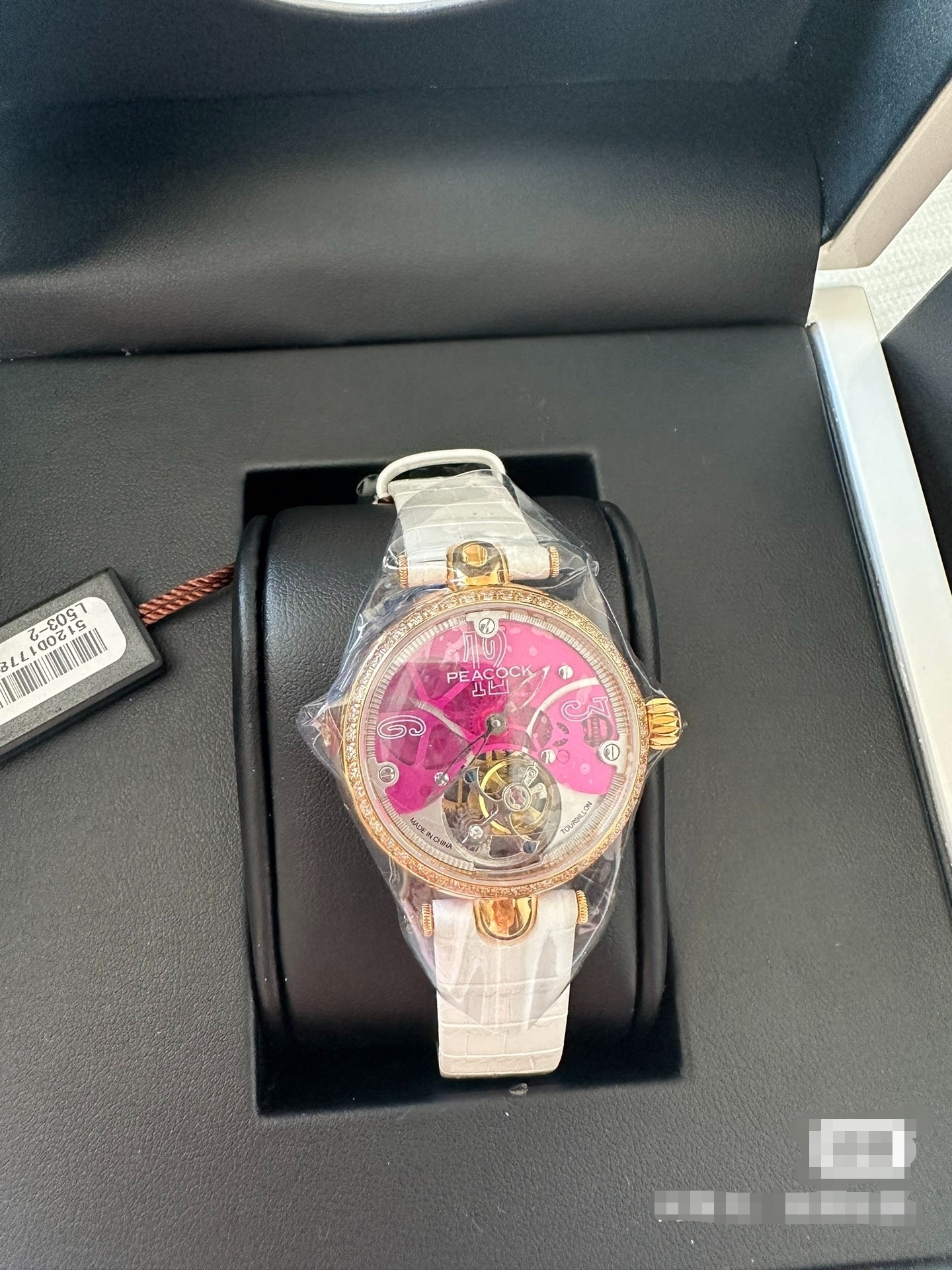 孔雀表,真皮表带,陀飞轮,按钮式折叠式表扣,粉色人生,女士福利。
