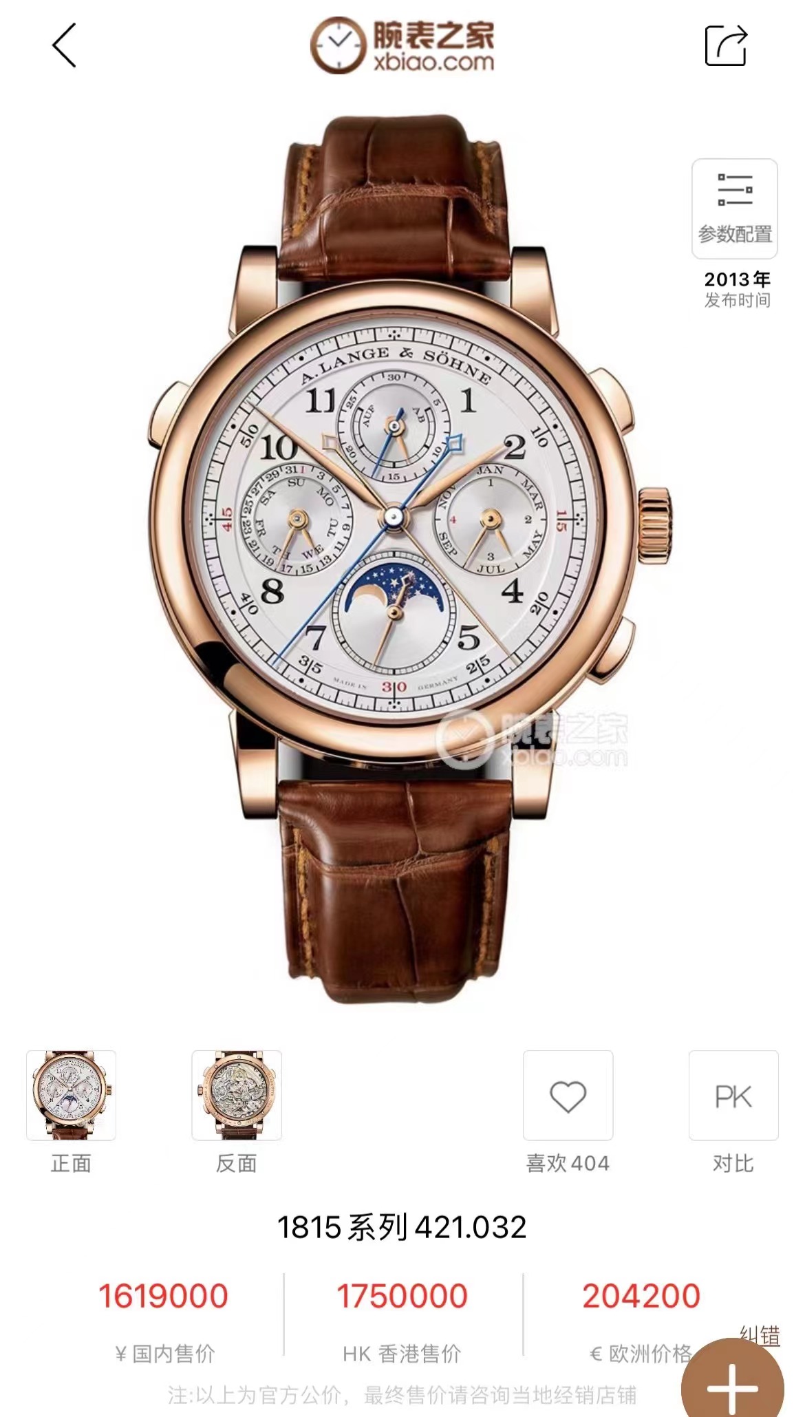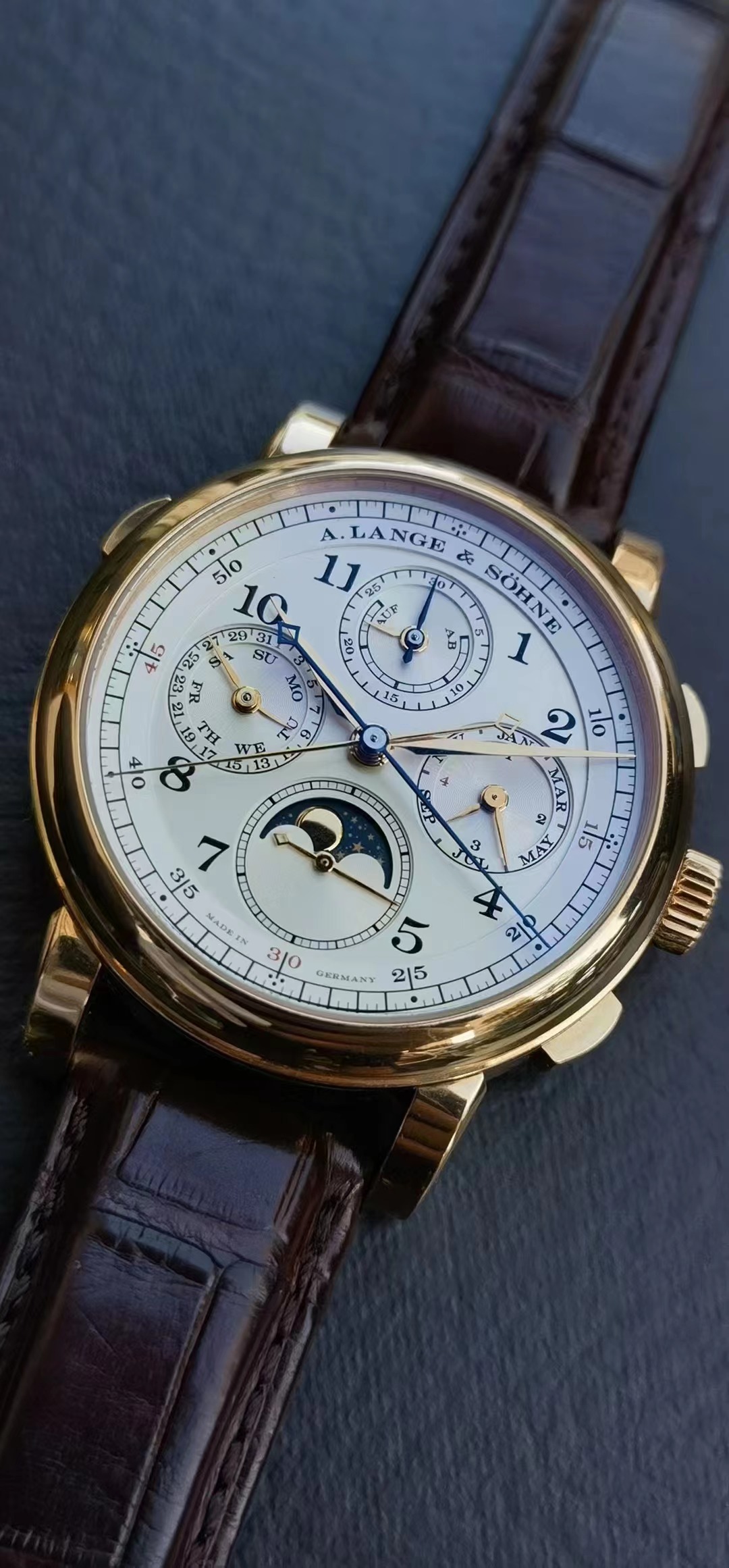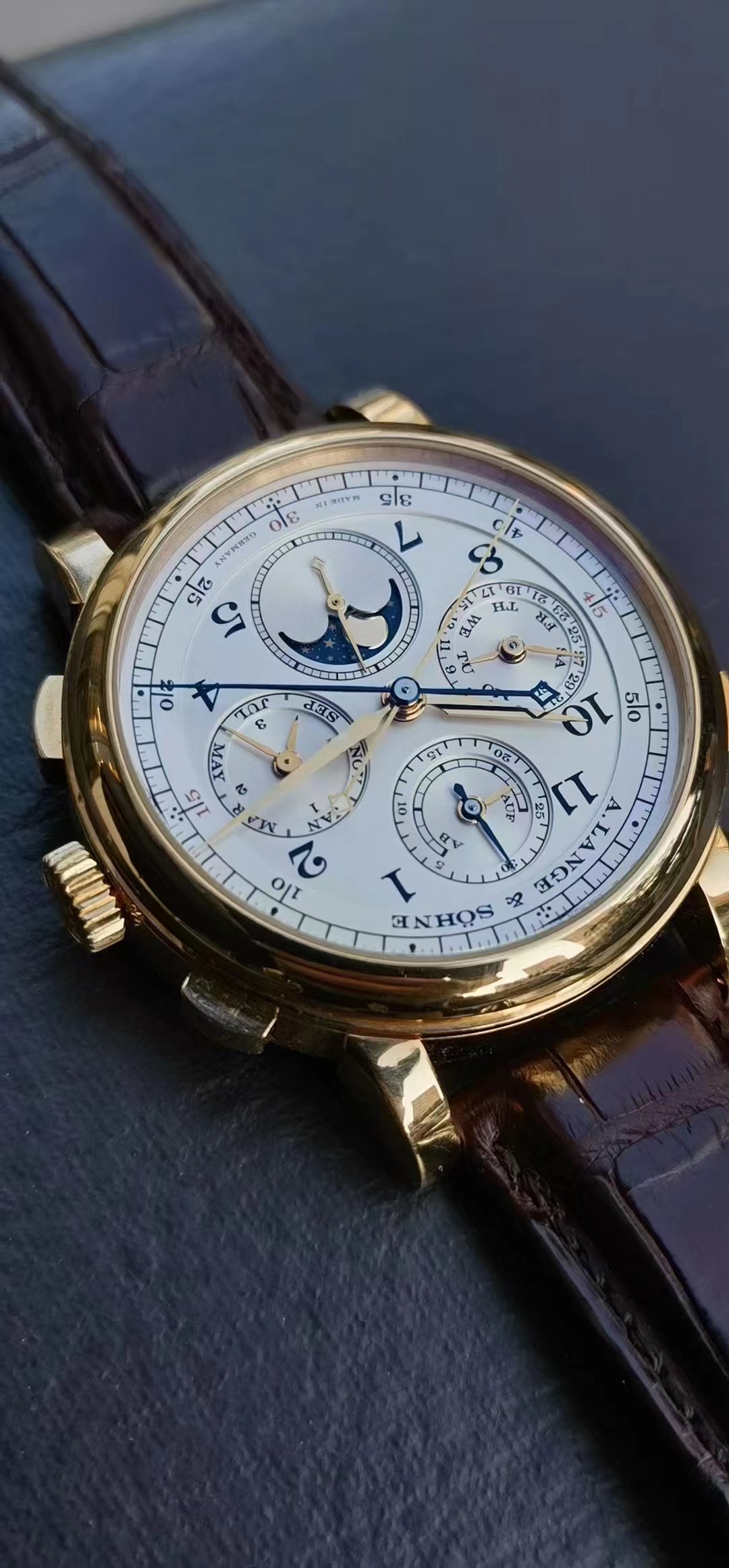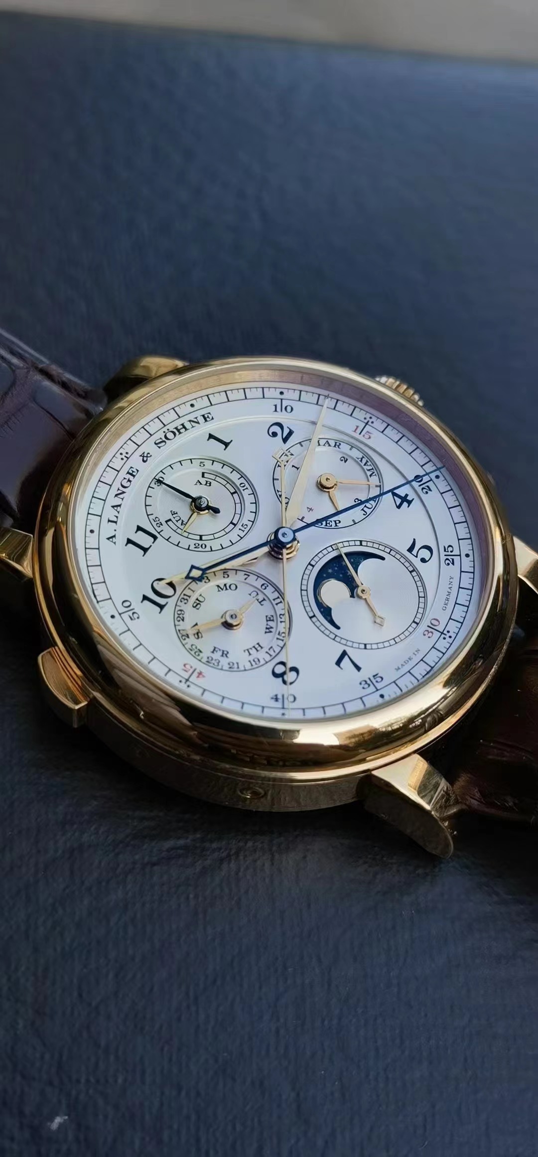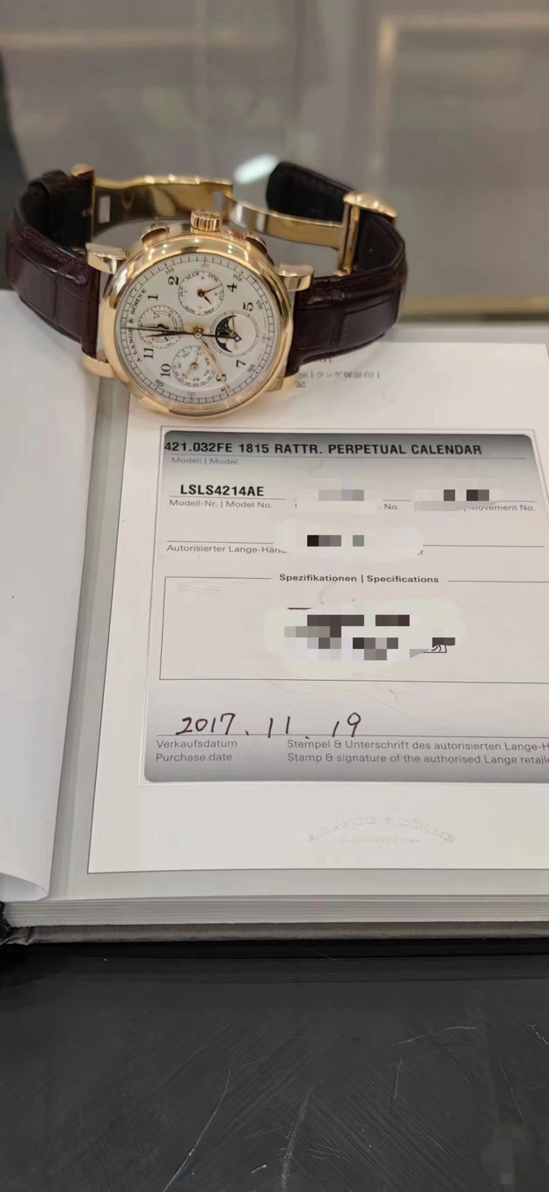 朗格 1815 421.032 41.9mm玫瑰金 动显追针万年历月相 超级大复杂功能腕表 正面就足够惊艳 而机芯之美更是难以形容 公价161.9万 产量极少 罕见17年全套 特价