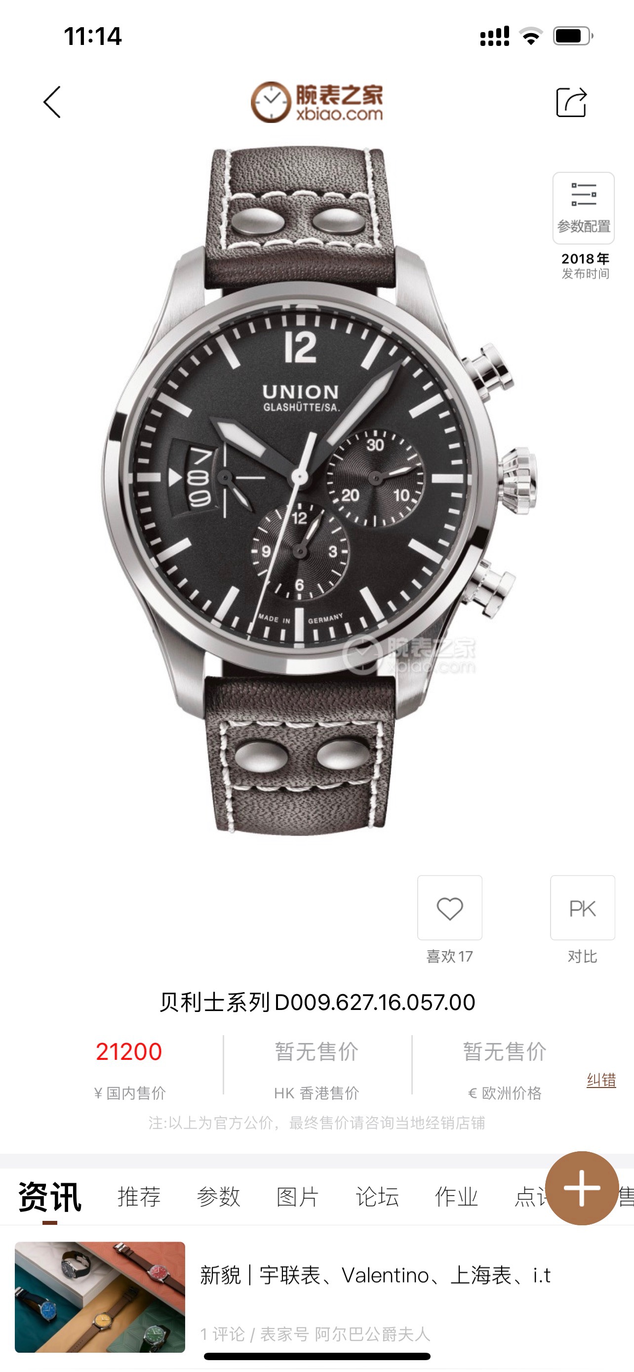UNIONGLASHUTTE/SA宇联德表贝利士系列D009.627.16.057.00男士自动机械腕表 精钢材质 德系表 表径44毫米 黑色字面 折叠扣 2023年05月购入 未使用品 公价21200 得物在售2万多 现好价分享