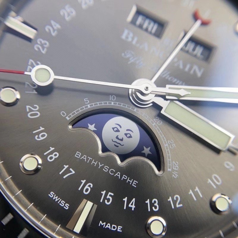宝珀五十噚系列5054-1110-B52A月相年历,复杂功能款完美集合钢寻与6654于一体,五十噚热门钢款