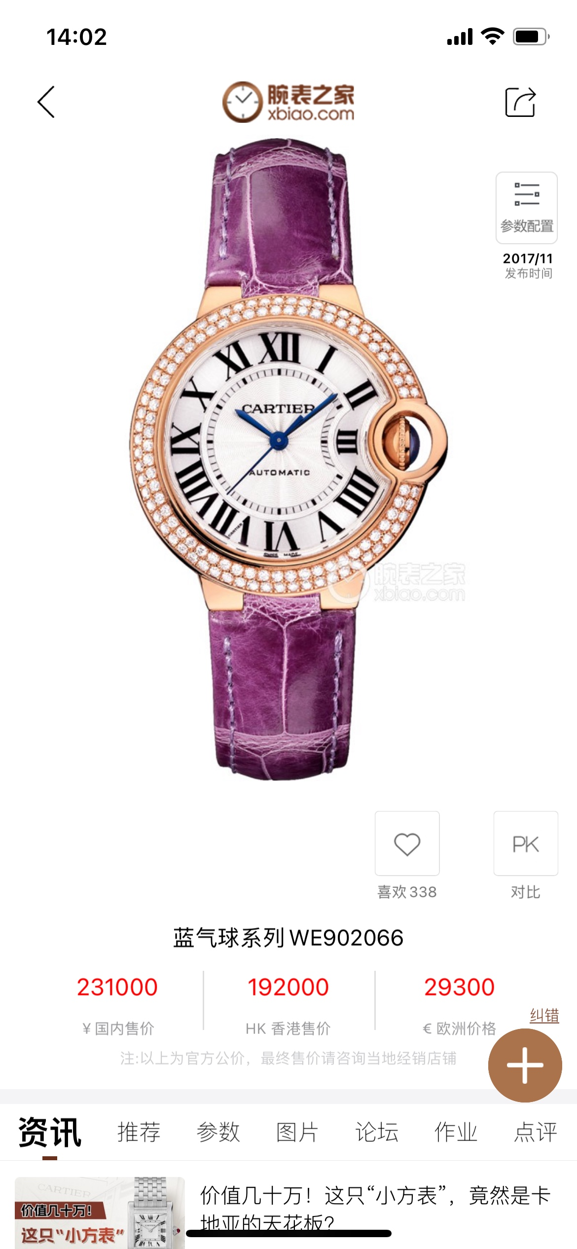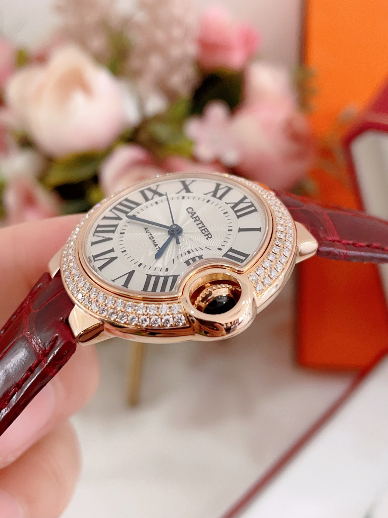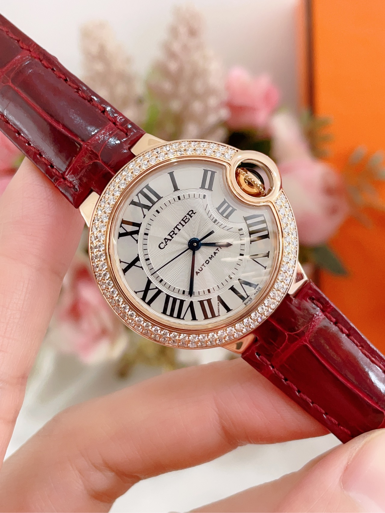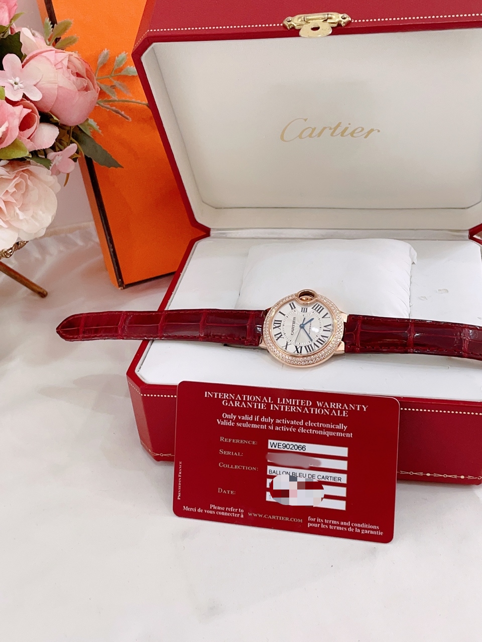 卡地亚蓝气球系列WE902066 自动机械女士腕表 表径33毫米 18k玫瑰金表壳 双排原镶钻 玫瑰金折叠扣 2019年全套 完美品相 工价:231000元 现货好价️