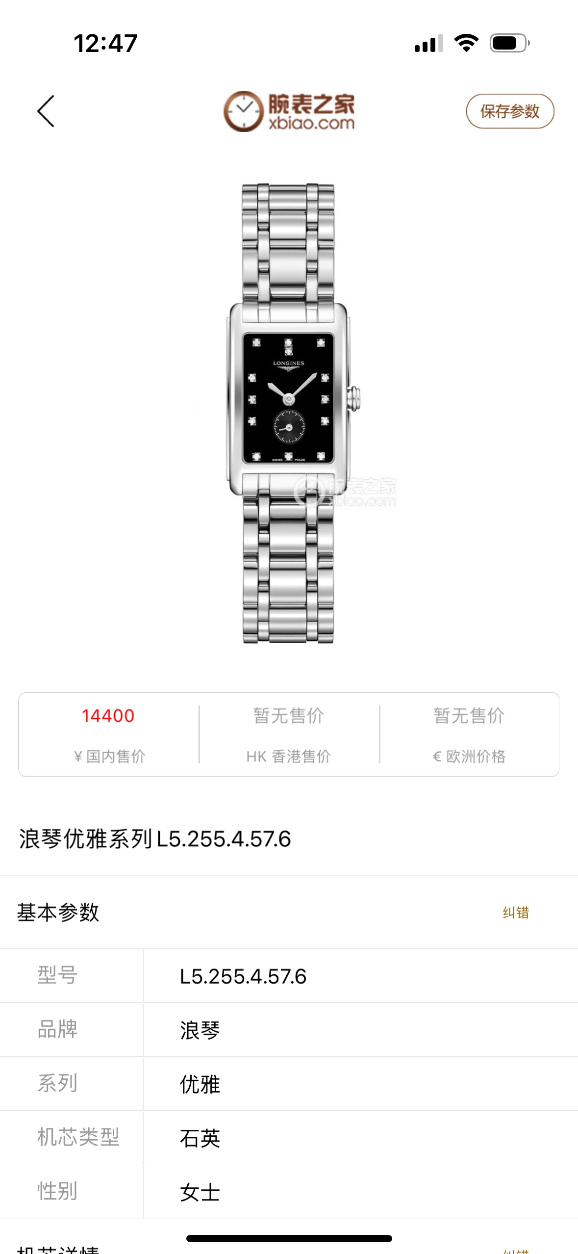 浪琴黛绰维纳L5.255.4.57.6石英女性