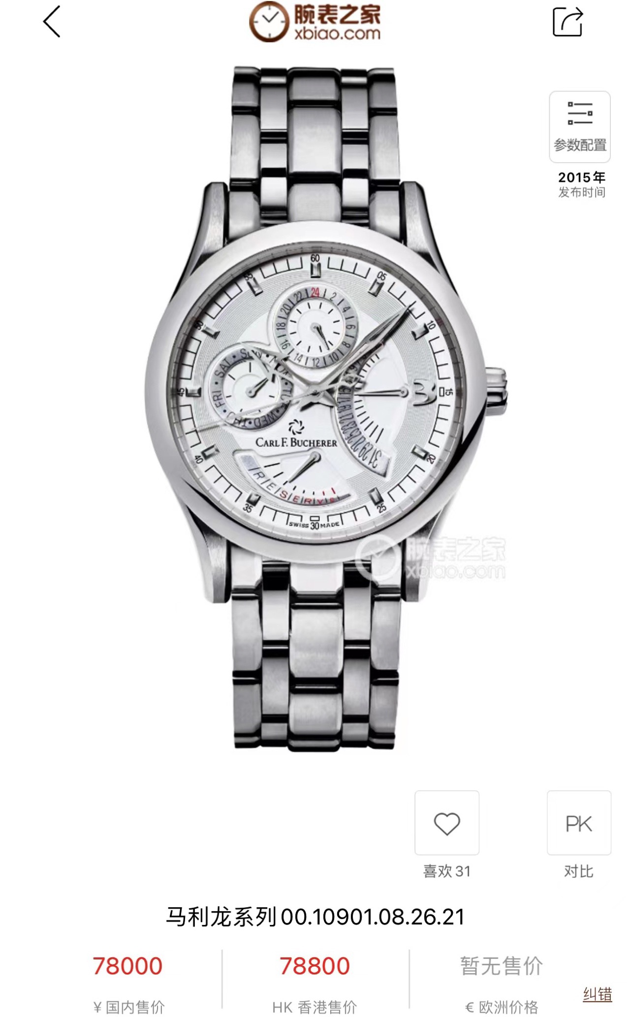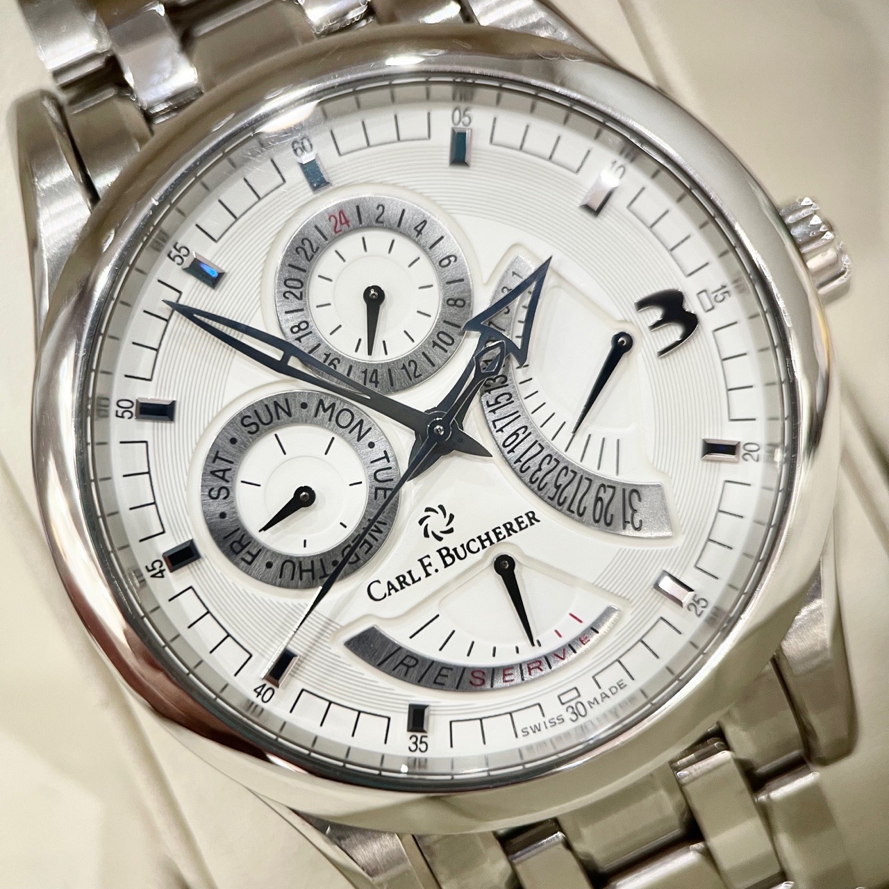 宝齐莱 Carl F. Bucherer 马利龙系列,多功能复杂机械男表,00.10901.08.26.21,表径40mm,腕周190mm,二手单表,公价¥78000