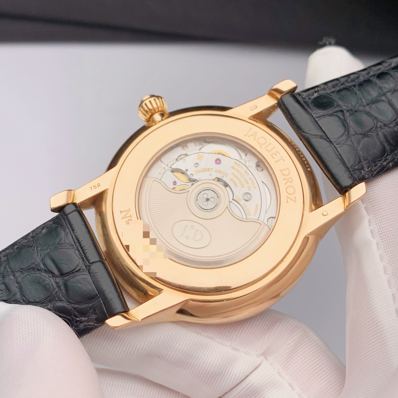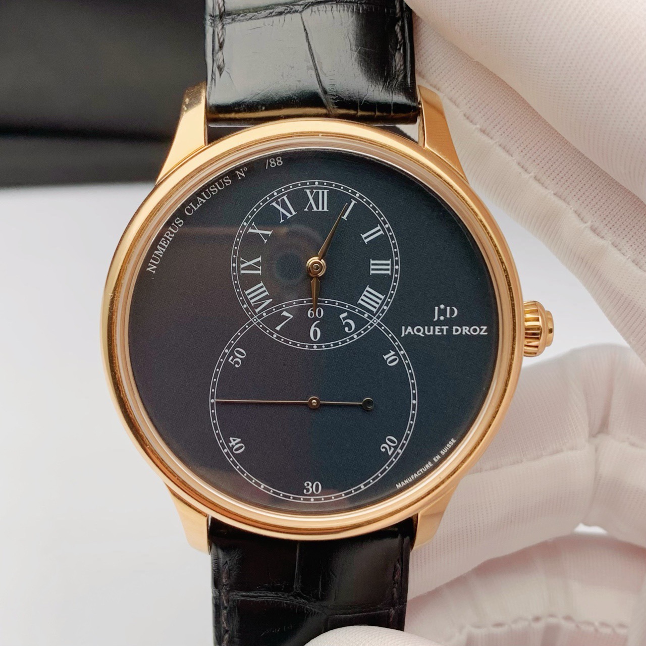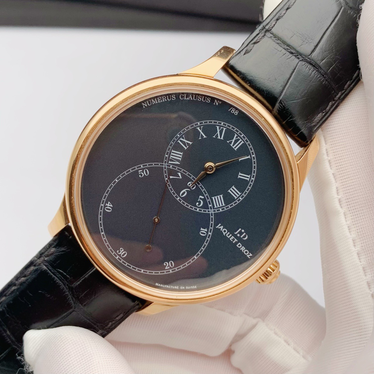 雅克德罗 大秒针系列J003033243 自动机械 男士金表 表径:43mm 黑盘 限量88支 18k玫瑰金材质