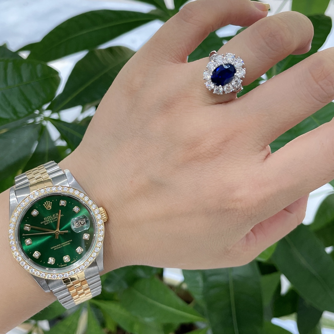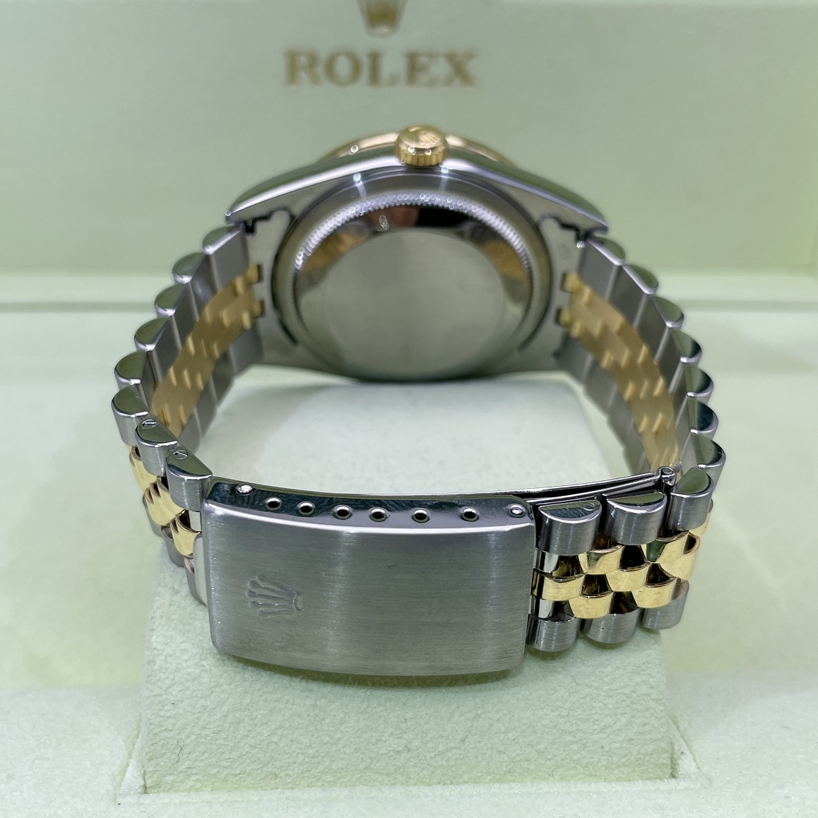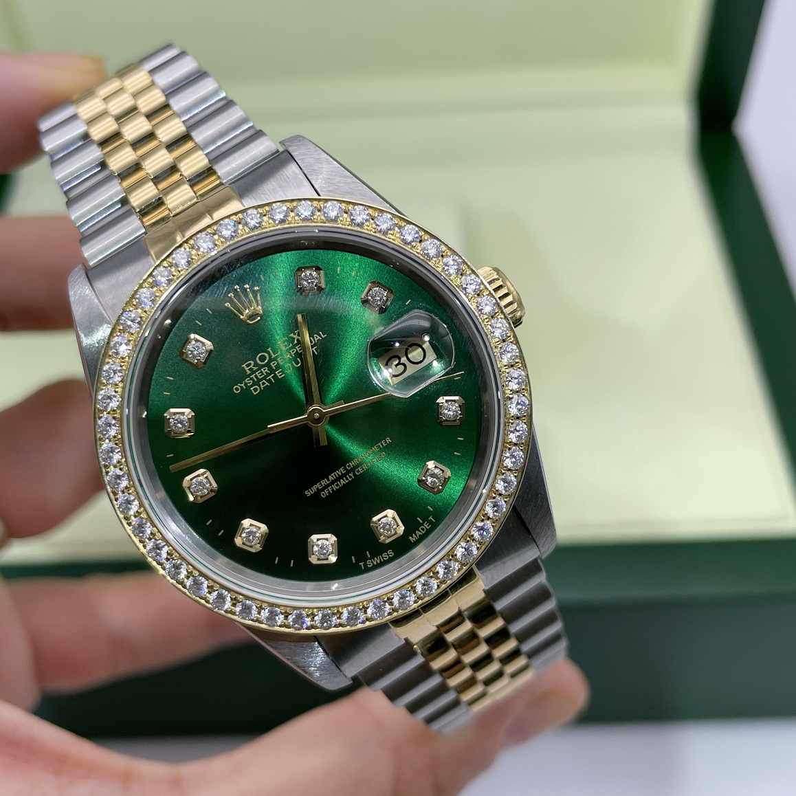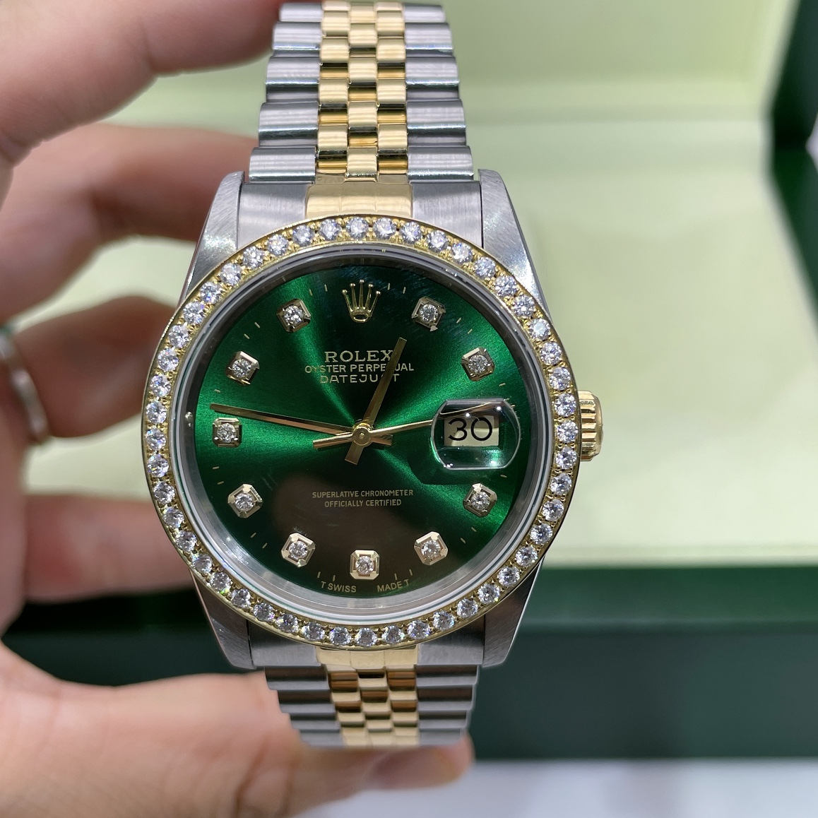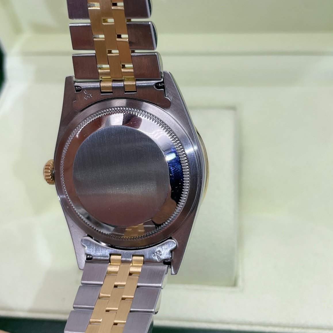 现货 劳力士 日志型系列16233. 36mm表径 大包钻 稀缺绿色盘 里外后钻 18k黄金间金自动机械男表 专柜价¥97800 现在好价得~ 后盘后钻 单表