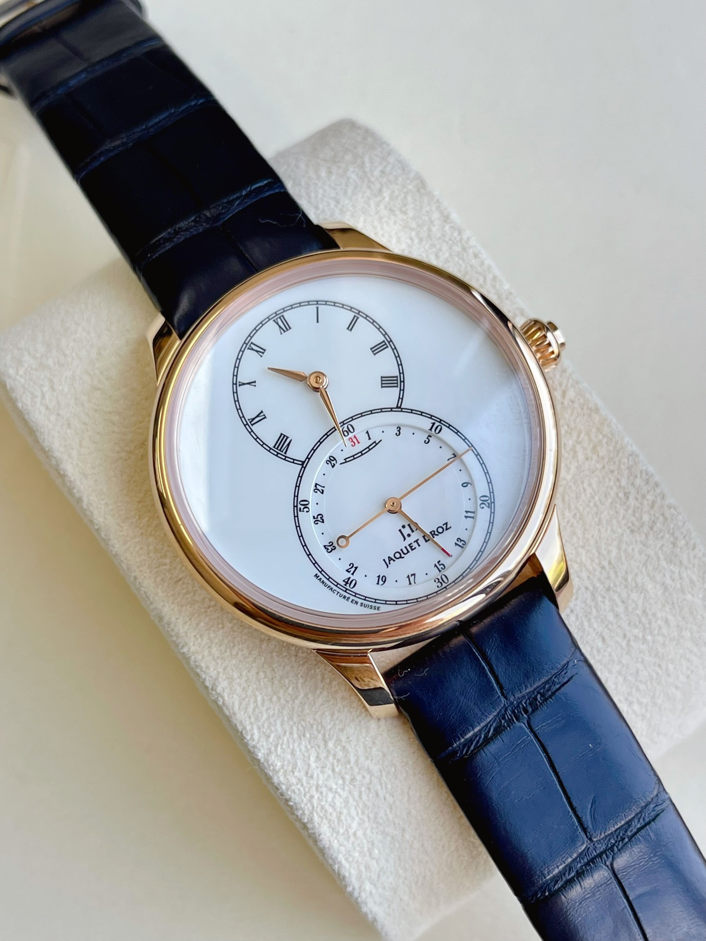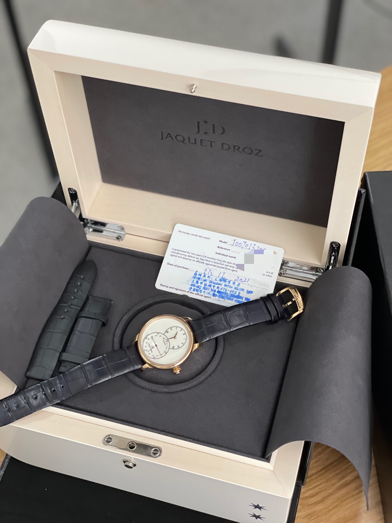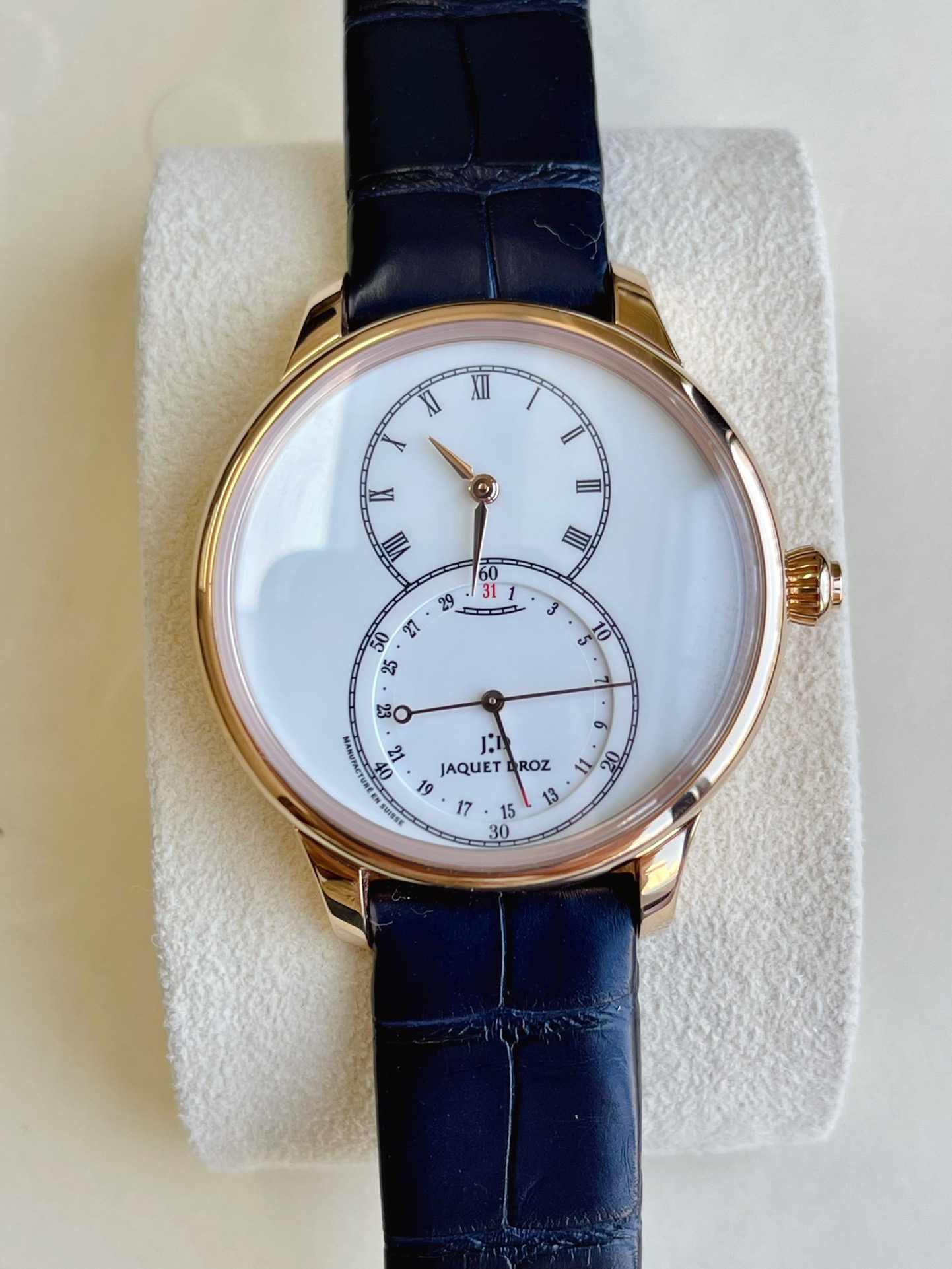 (二手21年全套)雅克德罗/Jaquet Droz 大秒针系列 J007013200 自动机械机芯 红金 39 mm 专柜价161500 18k红金材质 大明火珐琅盘面 二手21年保卡 好价