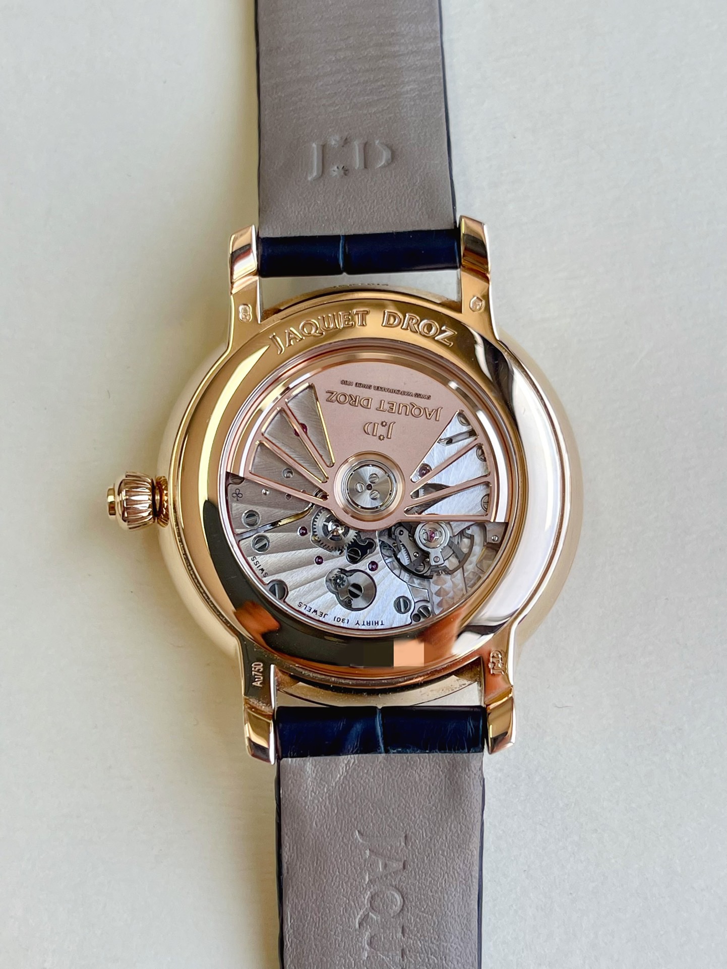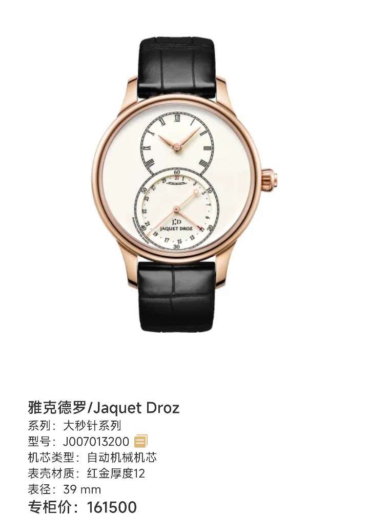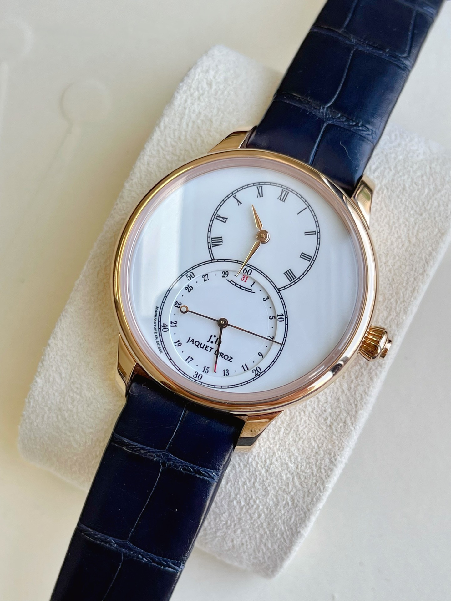 (二手21年全套)雅克德罗/Jaquet Droz 大秒针系列 J007013200 自动机械机芯 红金 39 mm 专柜价161500 18k红金材质 大明火珐琅盘面 二手21年保卡 好价