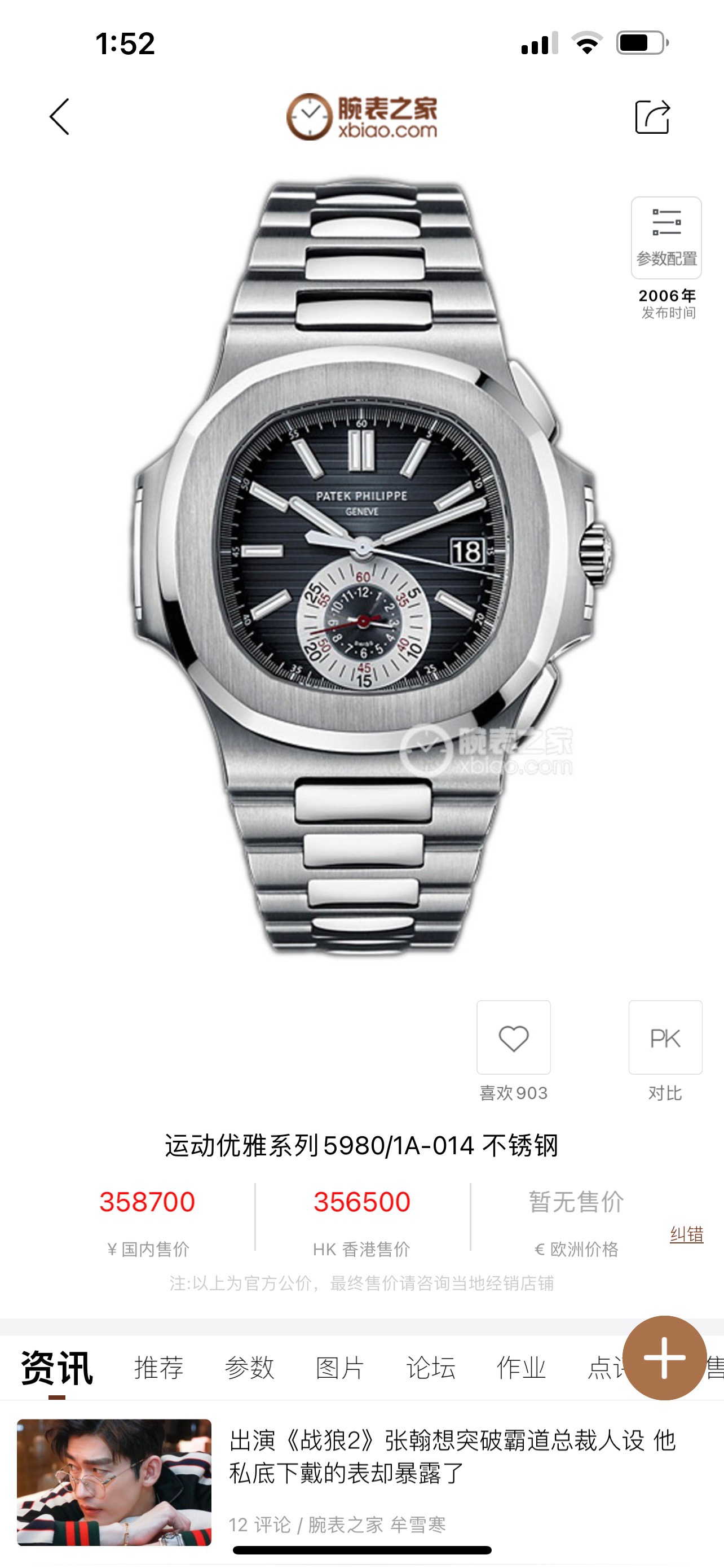百达翡丽运动优雅系列5980/1A-014顶级鹦鹉螺 自动机械 男士腕表 背透机芯 表径40.5mm 带日历显示、计时码表