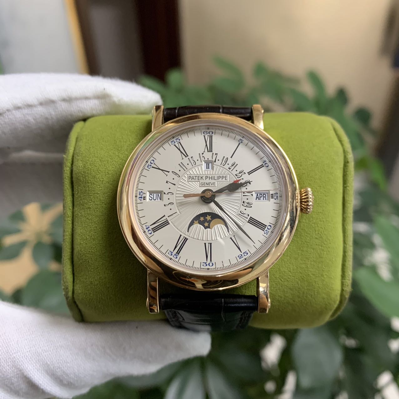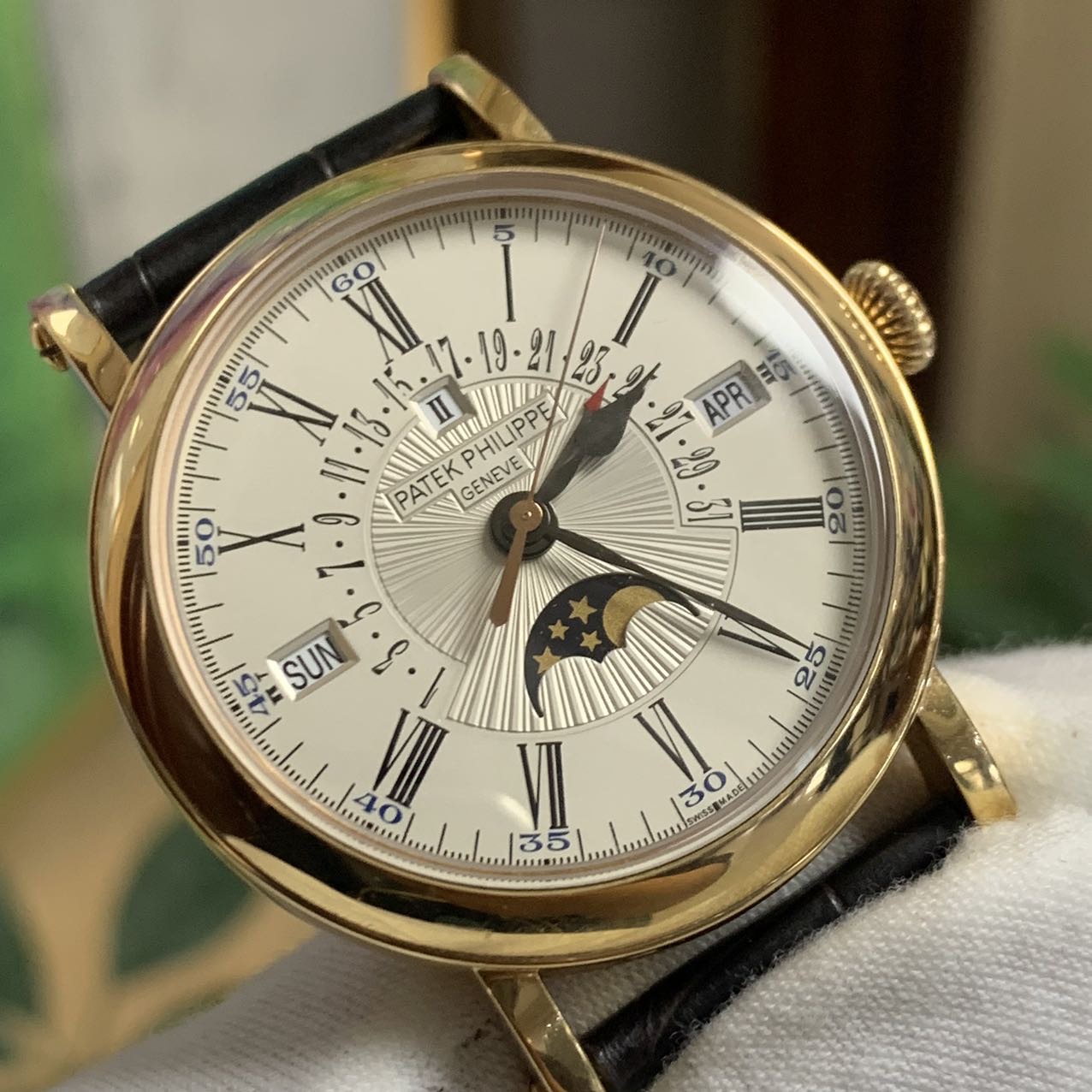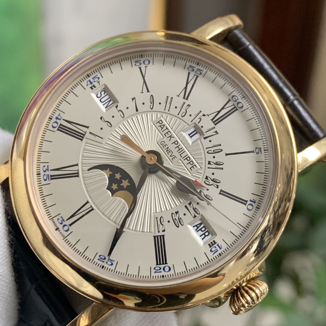 百达翡丽超级复杂功能时计系列-5159R,公价121万,表径38mm,附件如图 (保卡丢失),双P 印记,极品成色95新,18K玫瑰金材质锻造,将官底设计,星期 日期 月份 年历 万年历 月相功能,正装天花板。
