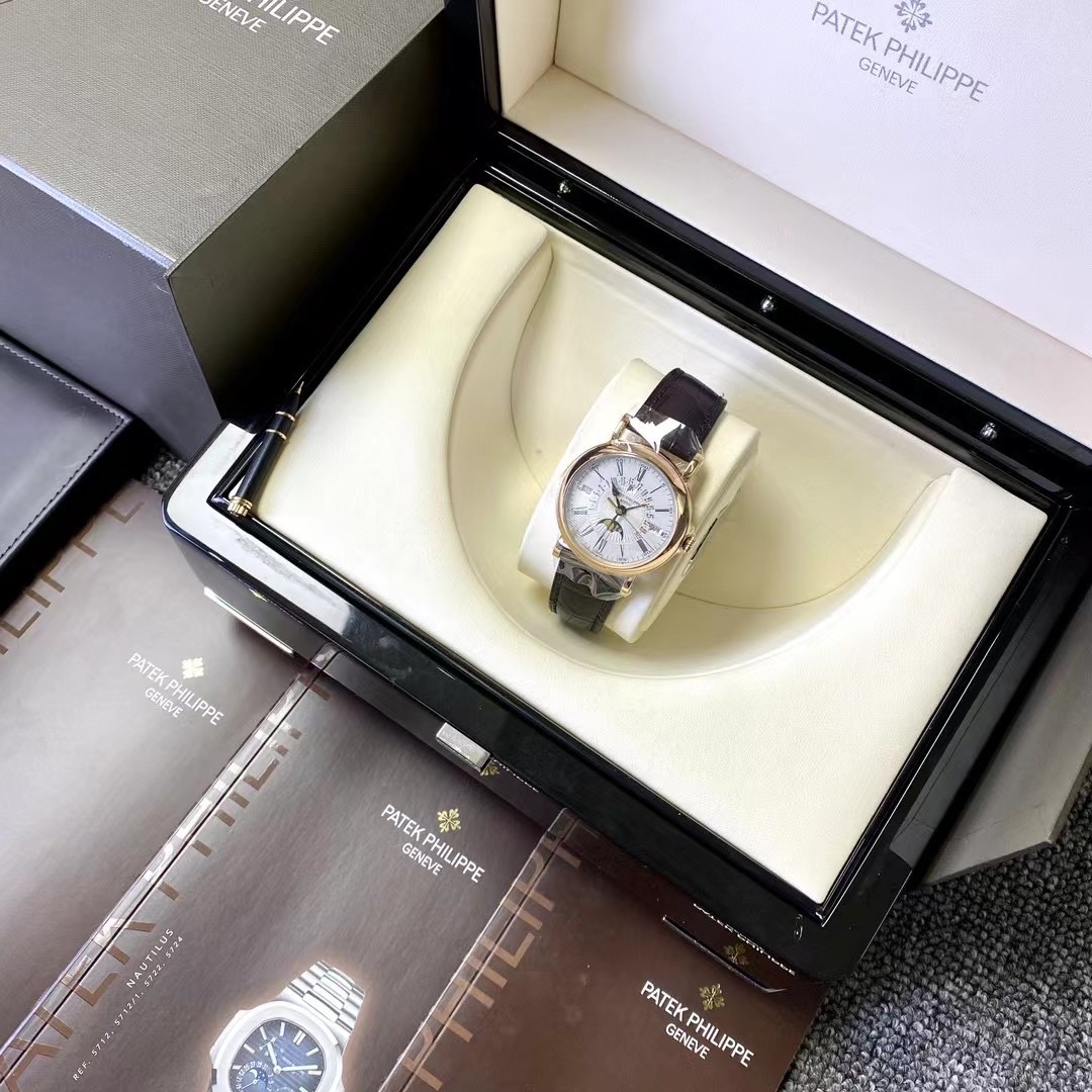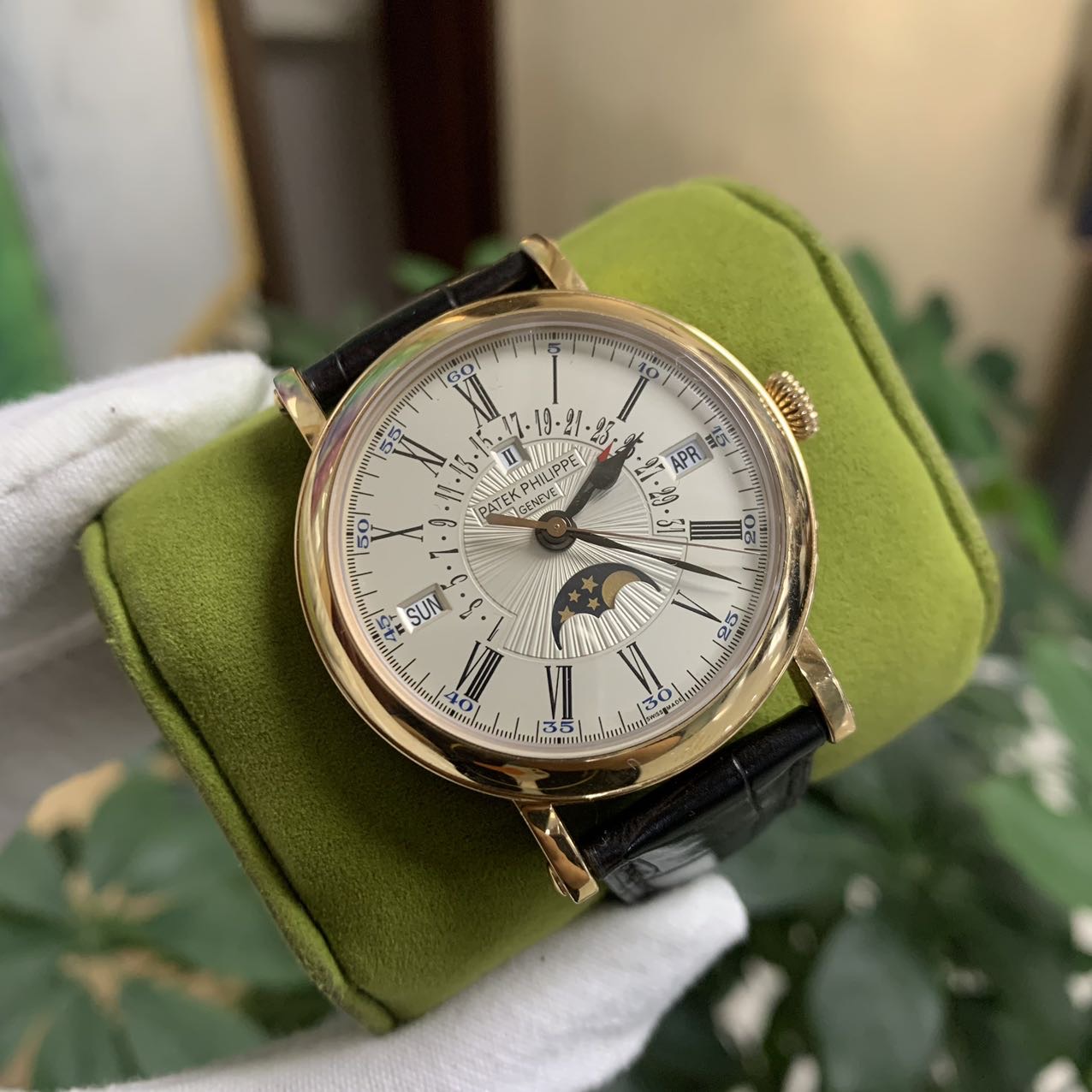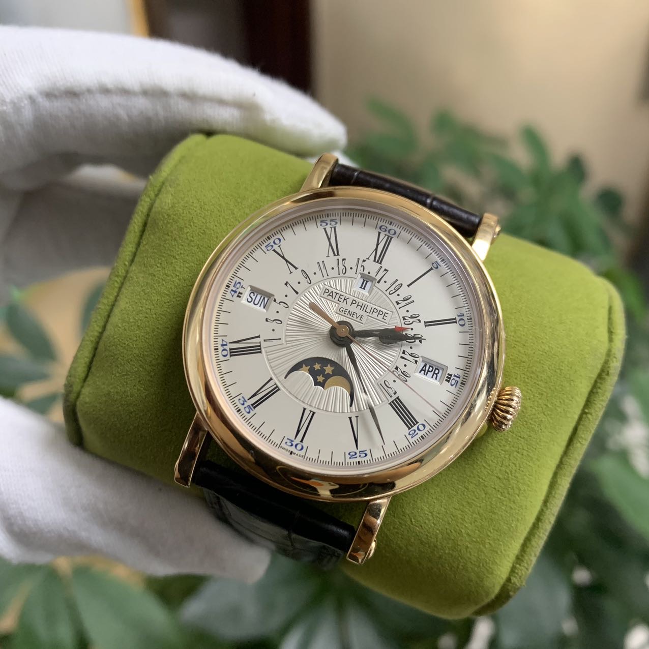 百达翡丽超级复杂功能时计系列-5159R,公价121万,表径38mm,附件如图 (保卡丢失),双P 印记,极品成色95新,18K玫瑰金材质锻造,将官底设计,星期 日期 月份 年历 万年历 月相功能,正装天花板。