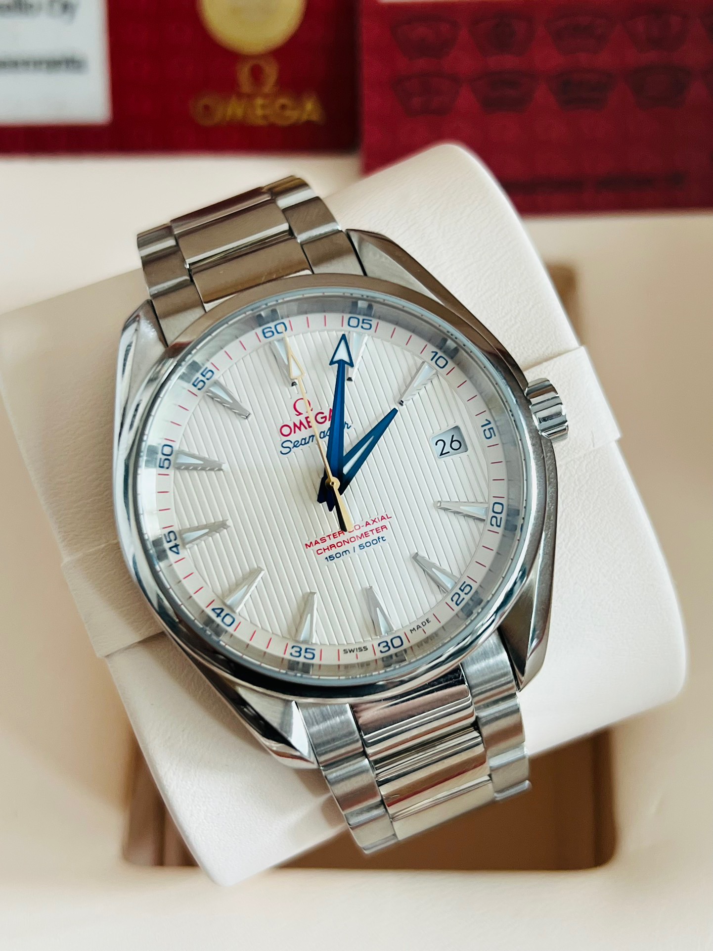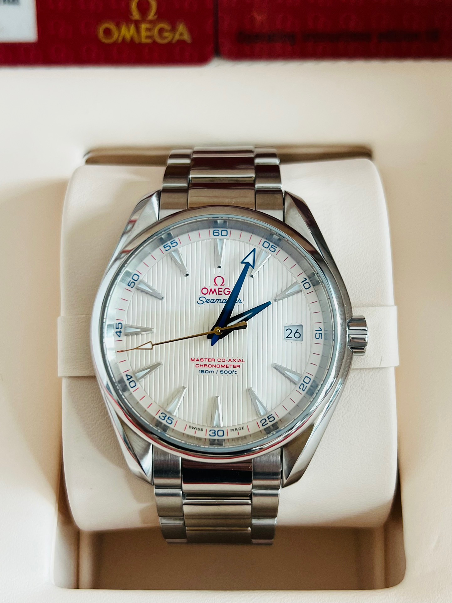 欧米茄海马231.10.42.21.02.004“金针队长” AT8500同轴机芯 蓝钢指针 空白卡全套 表径41.5mm 品相完美 成色极品 功能:日期显示 工价44800