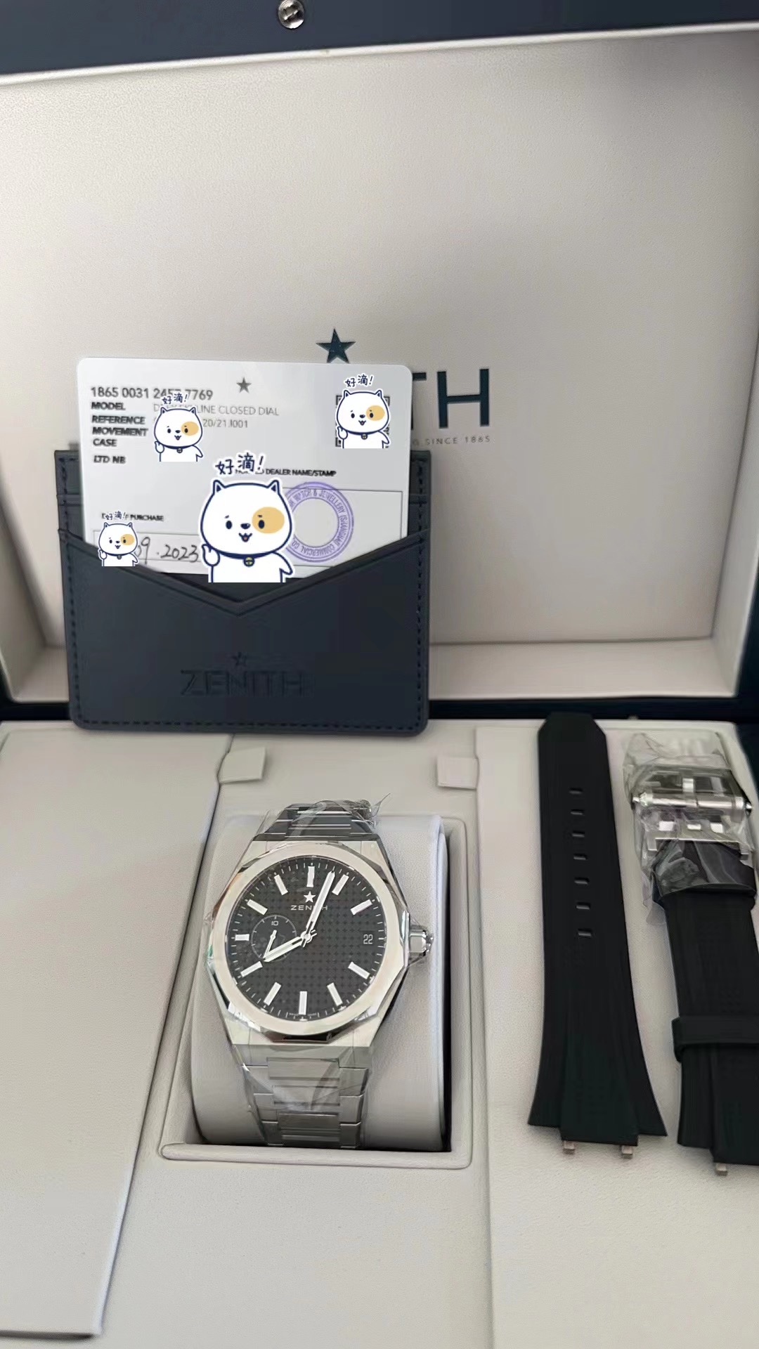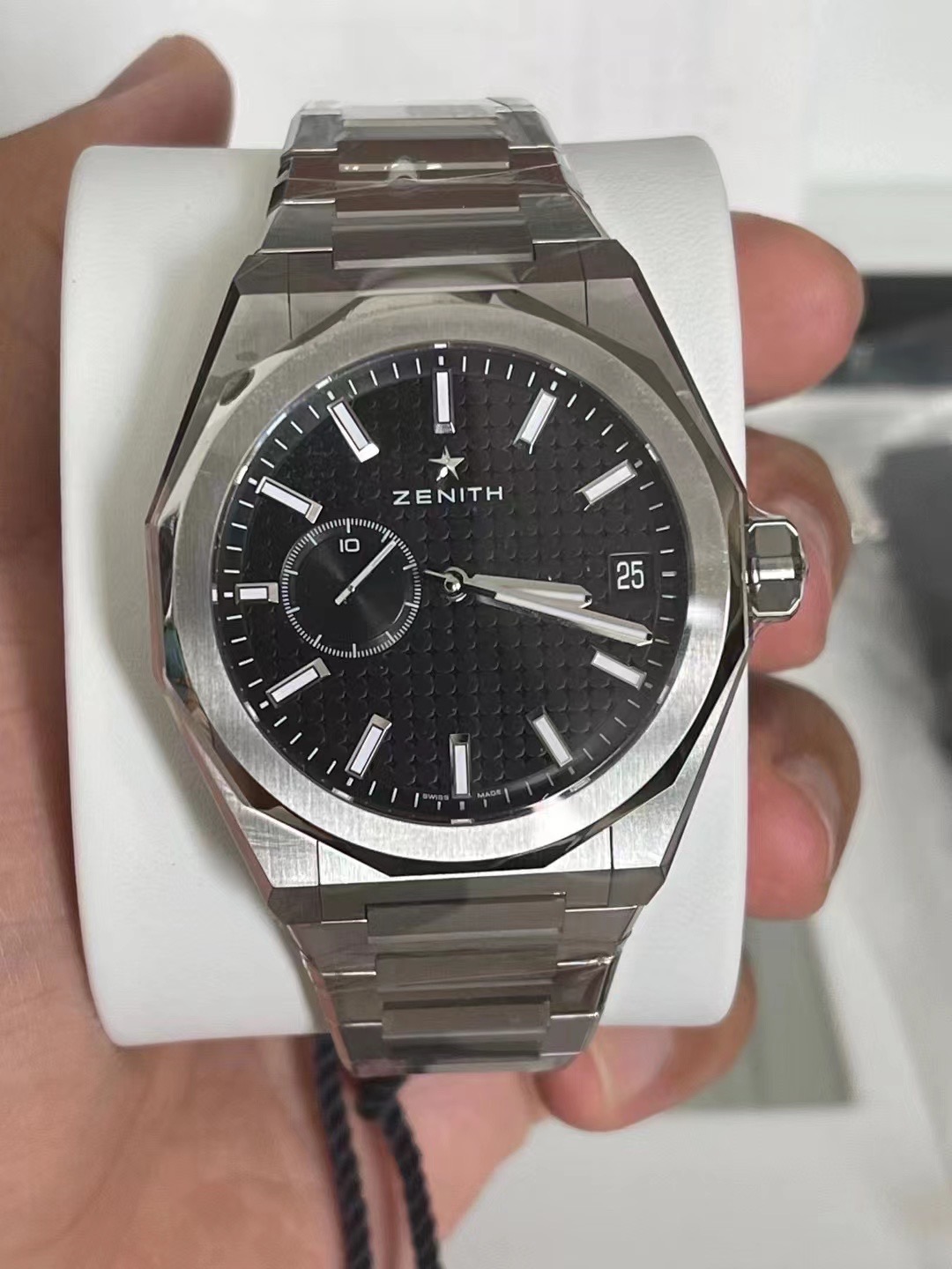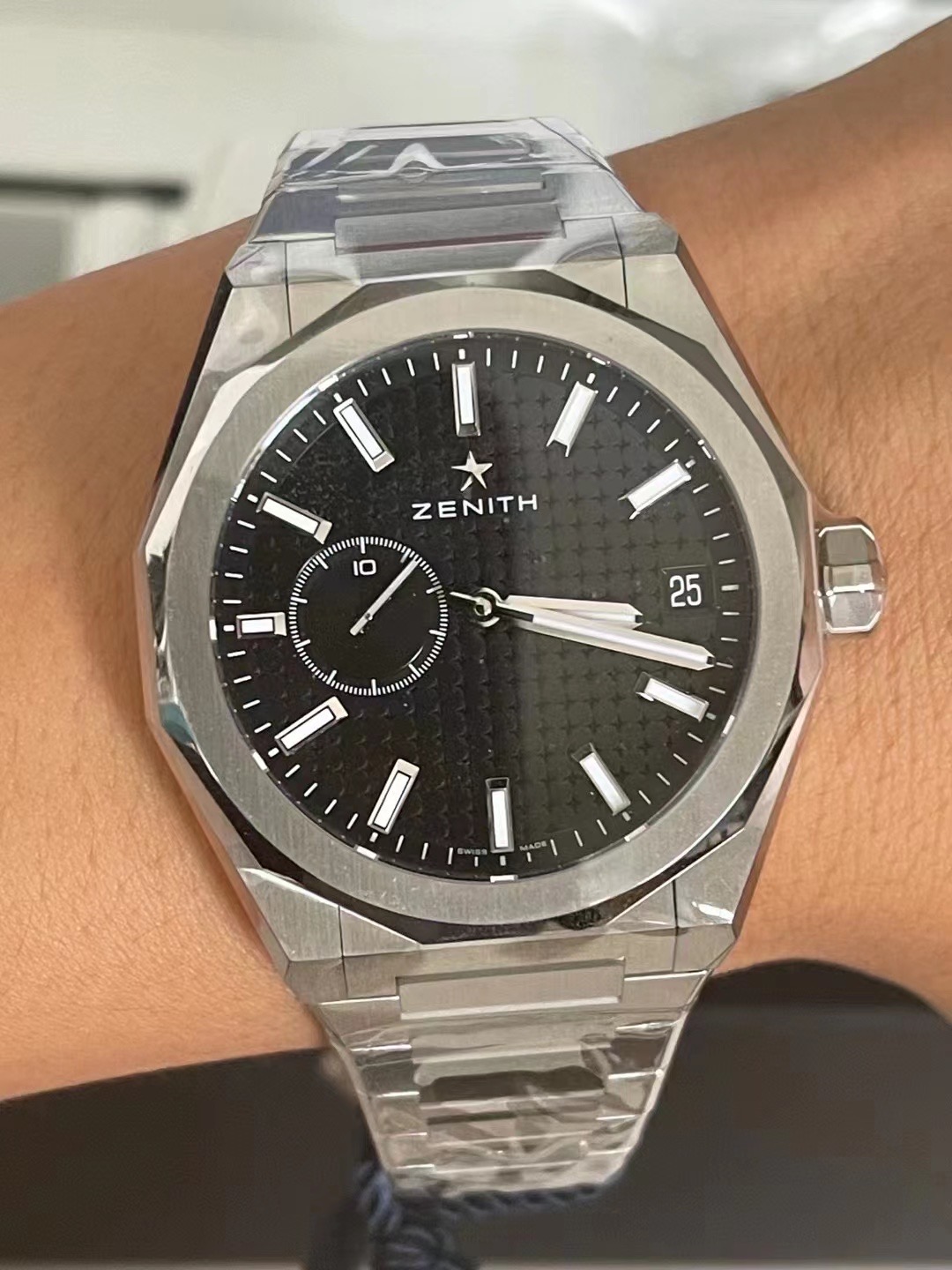 国行全新真力时DEFY系列男表 03.9300.3620 国内工价68600 41毫米直径 黑色太阳纹盘面 采用真力时自产高振频3620机芯 夜光刻度 两幅表带(一条折叠扣橡胶带 一条钢带) 9月卡 联保五年