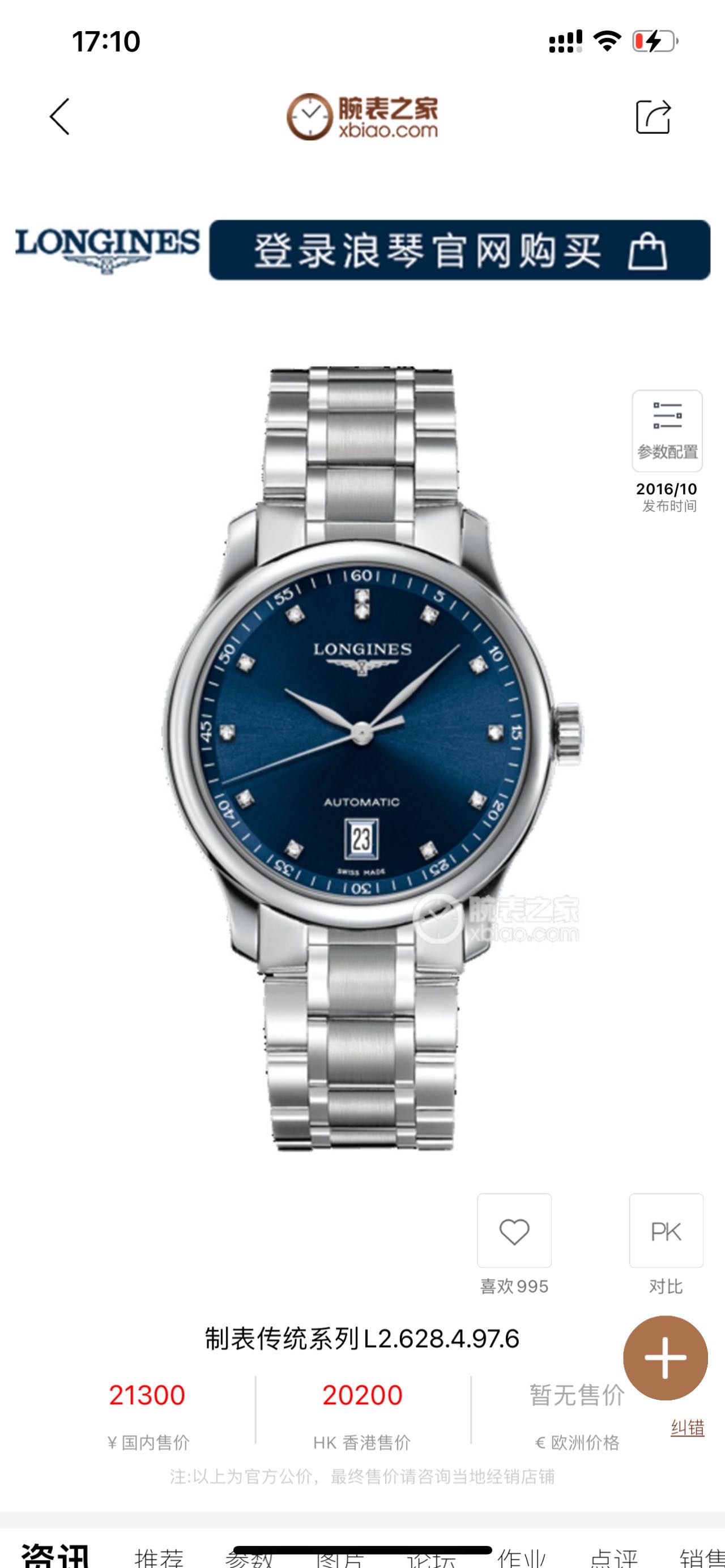 浪琴名匠系列L2.628.4.97.6腕表,自动机械,38.5毫米,男士,公价21300元,95新,单表